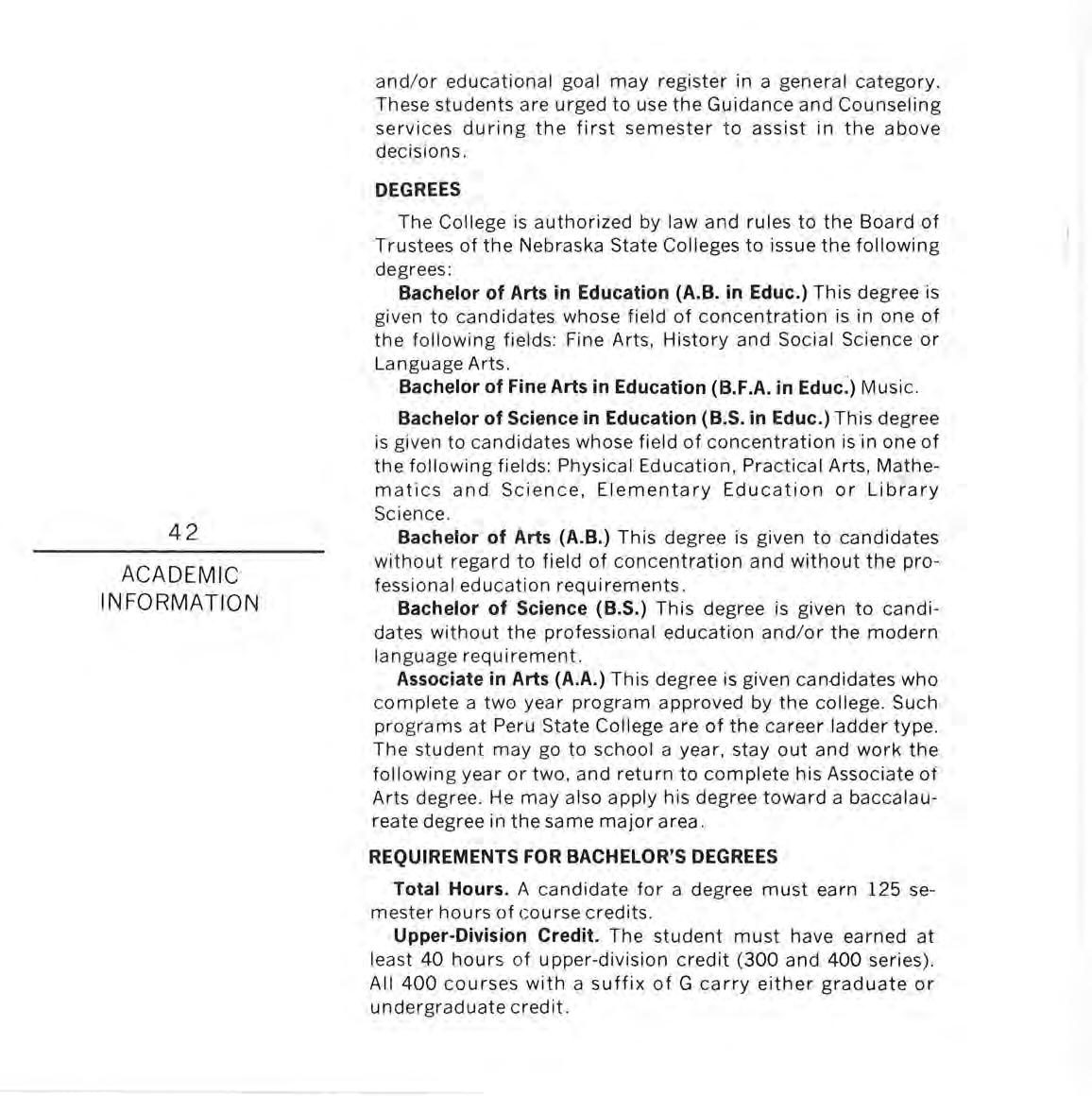 In 1949, the legislature authorized the Nebraska State Colleges to confer the Bachelor of Arts degree The Bachelor of Science degree was author ized in 1965. Emerging from the role of a sjng le -purpose teacher's college , the College is now serving as a regional state college w i th many and diverse two and four-year programs in a wide variety of fields, serving to meet the changing higher education needs of people in southeast Nebraska .