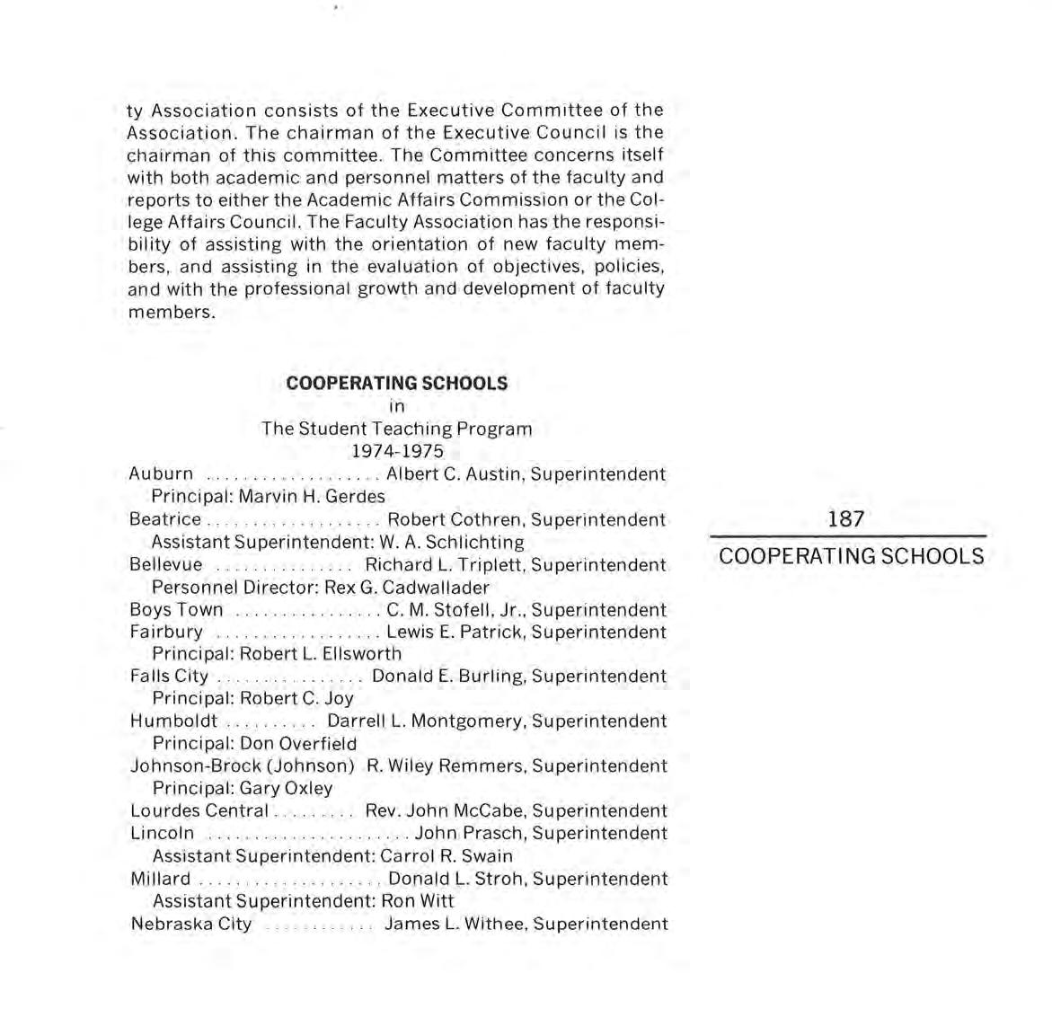 ty Association consists of the Executive Committee of the Association. The chairman of the Executive Council is the chairman of this committee The Committee concerns itself with both academic and personnel matters of the faculty and reports to either the Academic Affairs Commission or the College Affairs Council. The Faculty Association has the responsibility of assisting with the orientation of new faculty members , and assisting in the evaluation of objectives , policies, and with the professional growth and development of faculty members.