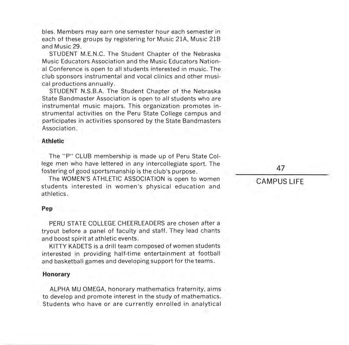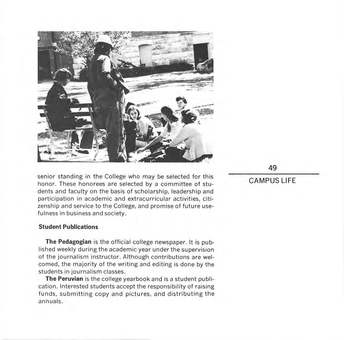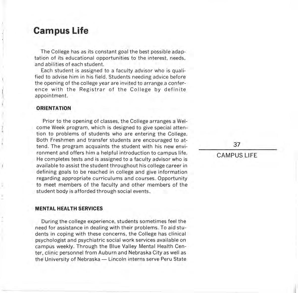 Peru State students have an opportunity to know their teachers well and to become working partners with the staff and other students. To live with other young people in college residences offers many opportunities for friendship, and growth, and personal development.