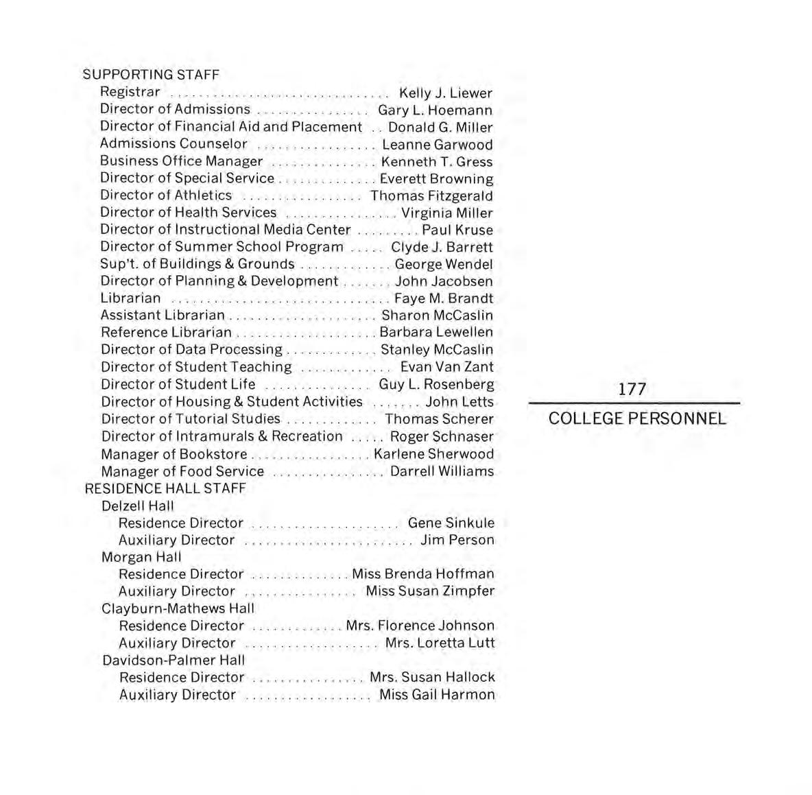Personnel Director : Rex G. Cadwallader