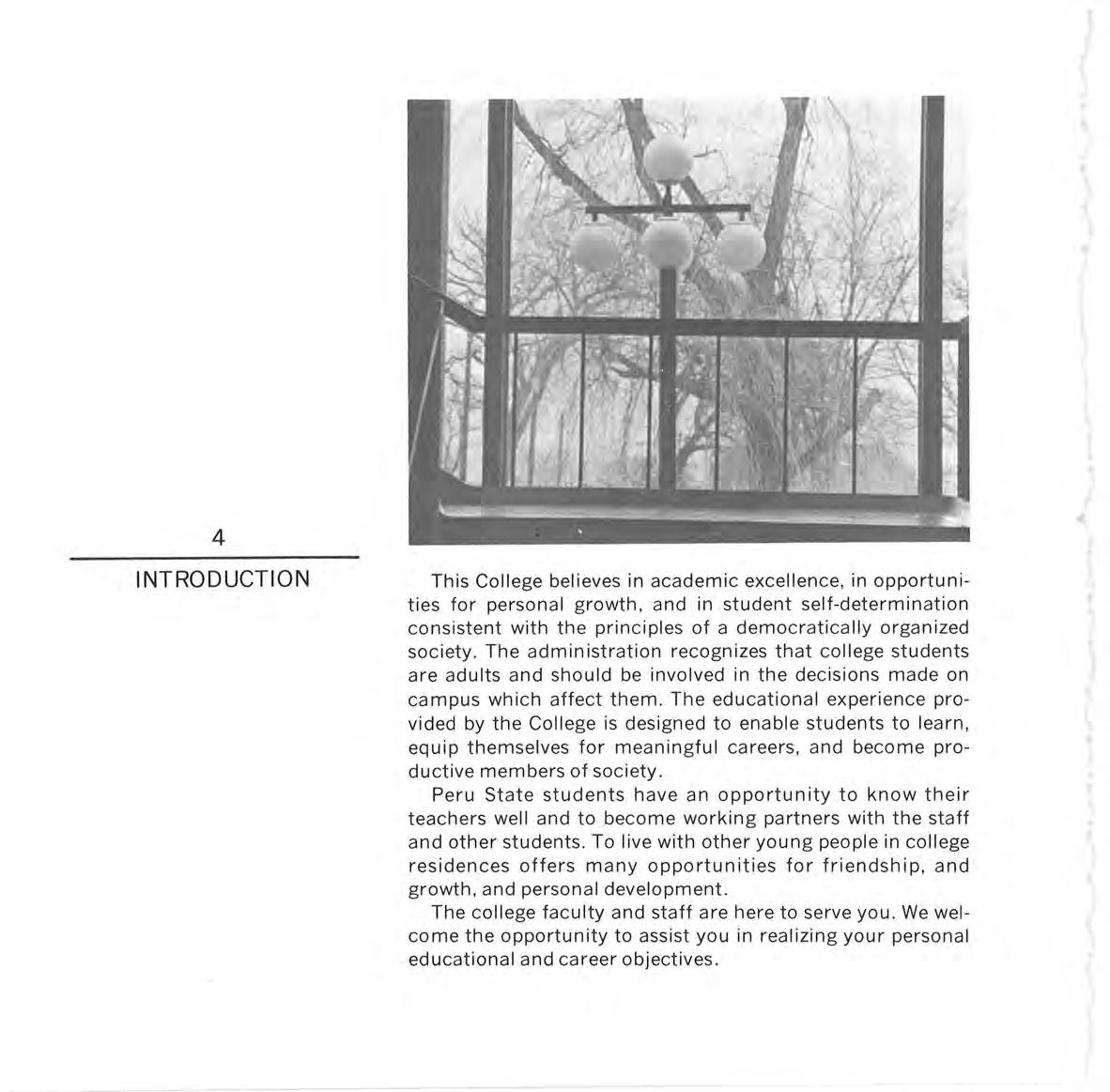 This College believes in academic excellence, in opportunities for personal growth, and in student self-determination consistent with the principles of a democratically organized society The administration recognizes that college students are adults and should be involved in the decisions made on campus which affect them. The educational experience provided by the College is designed to enable students to learn, equip themselves for meaningful careers, and become productive members of society.