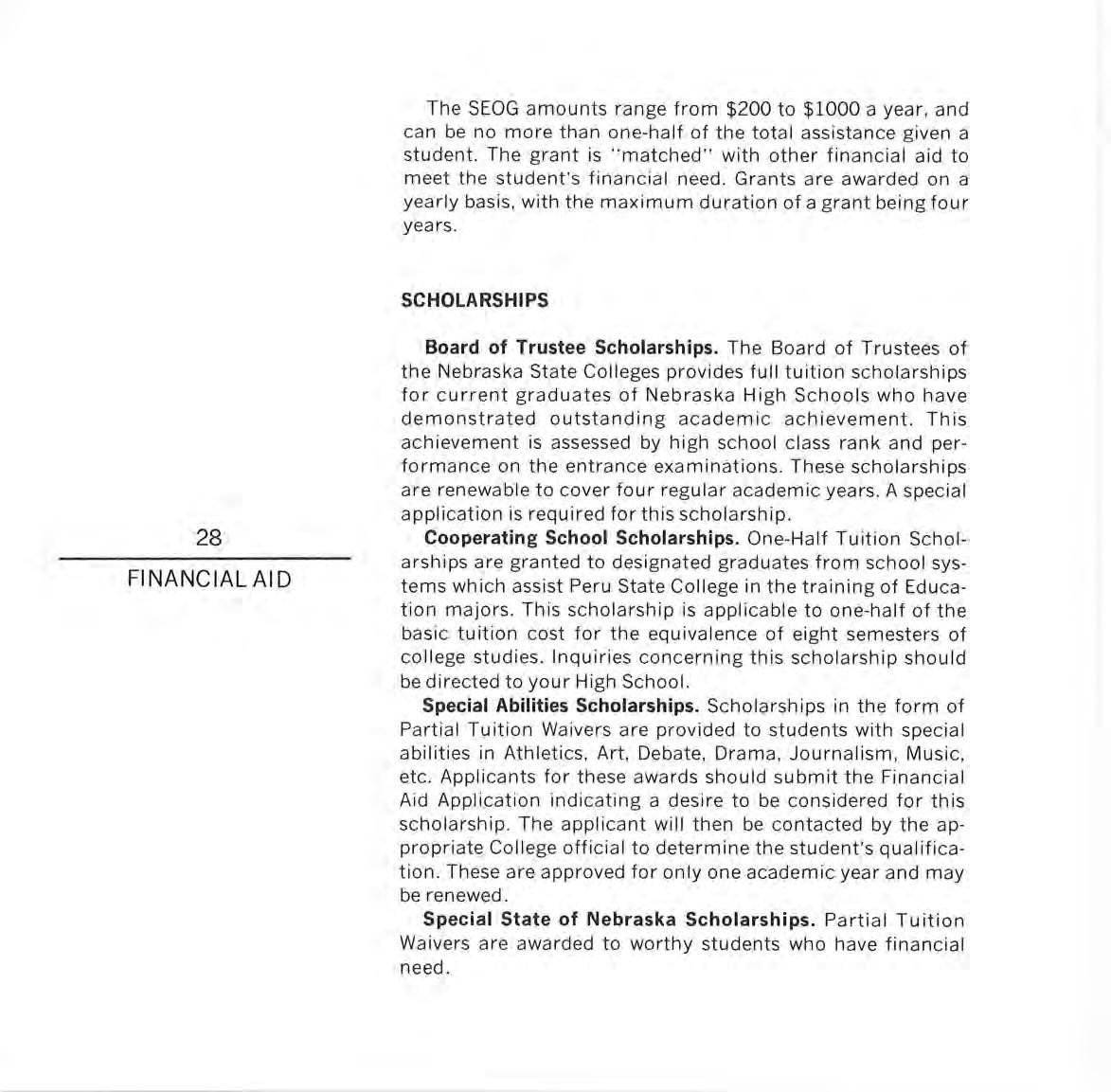 Organized for the promotion and support of Peru State College, the Foundation has as its primary purpose : "to aid, assist, and promote the educational program, faculty, employees, students, and to encourage the attendance .. . of worthy and deserving students, and to grant scholarships and student loans to deserving students."
