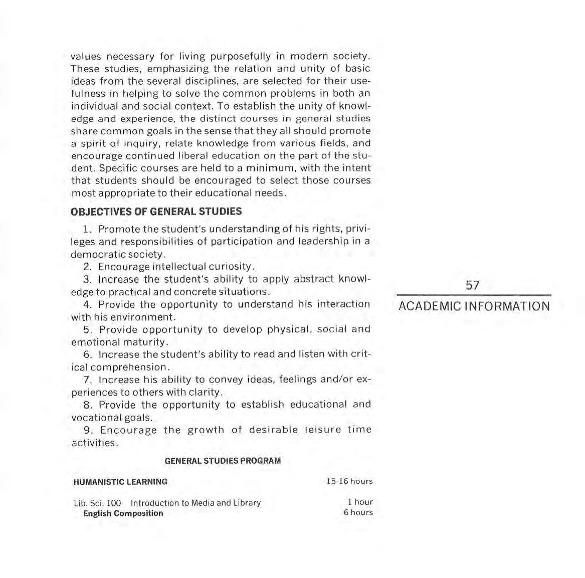 Such individual development can be accomplished through formal studies and exposure to a variety of experiences both on and off campus. Appropriate and acceptable behavioral patterns are the result of reasonable mastery of knowledge; acquisition of certain skills and techniques , appreciation and understanding of areas beyond narrow personal interests, and from meaningful religious and social experiences.