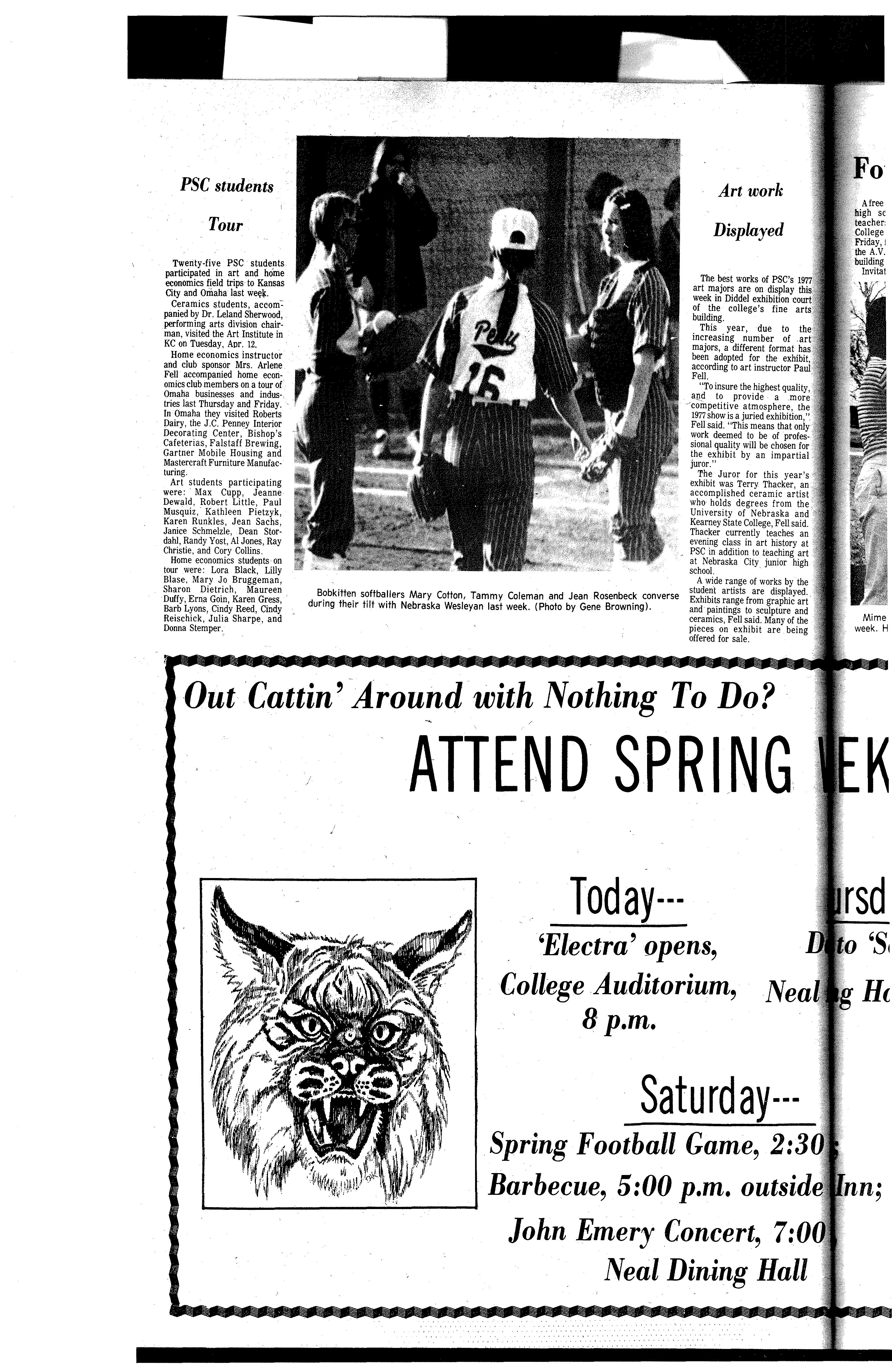 The Bobkittens placed third in the Nebraska Association of Intercollegiate Athletics softball , tournament held in Omaha over the weekencl. They defeated College of St. Mary, 21-11, in the first game and then dropped the next two, 13-3 to. Midland and 10-3 to Creighton University.