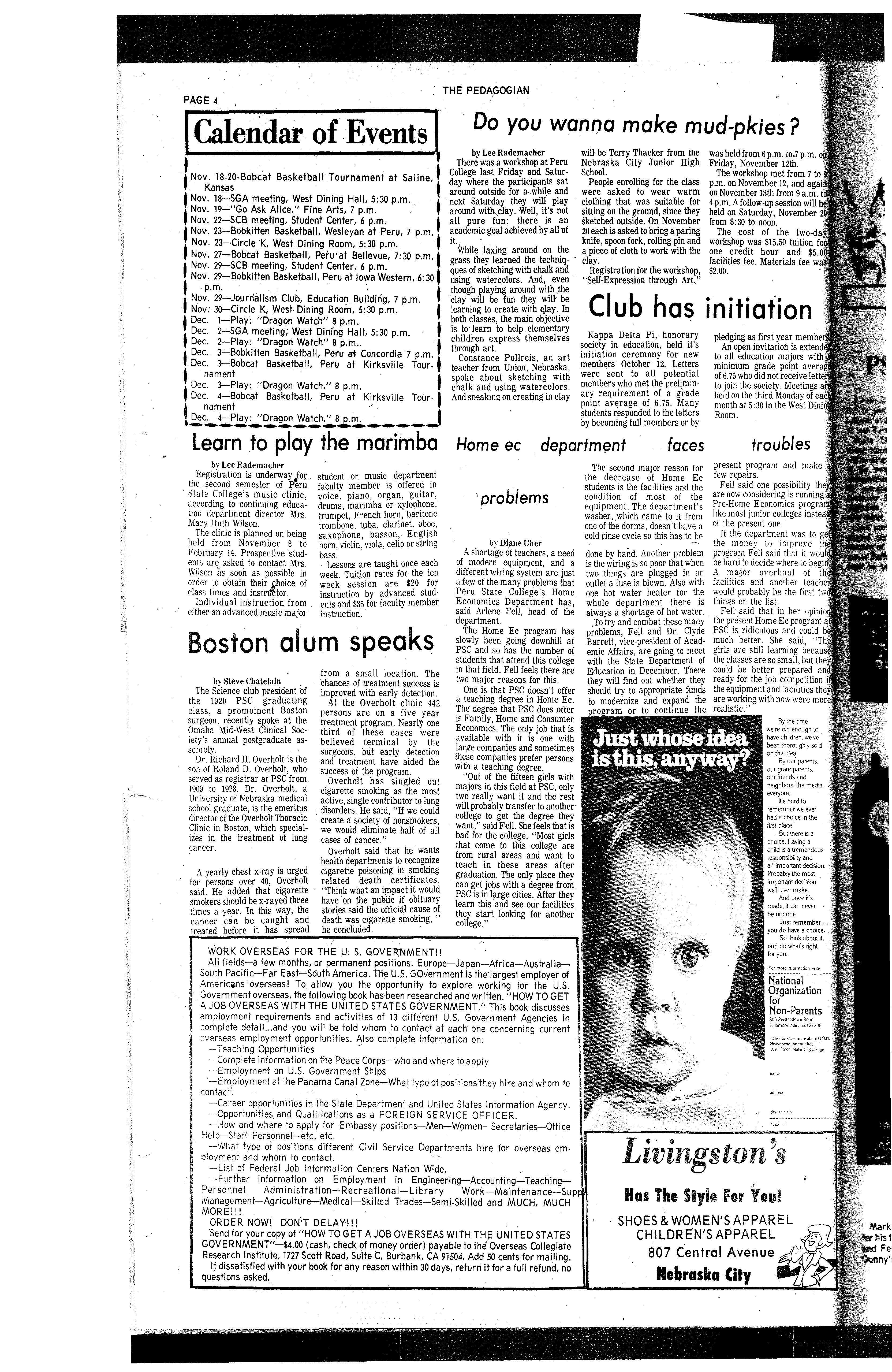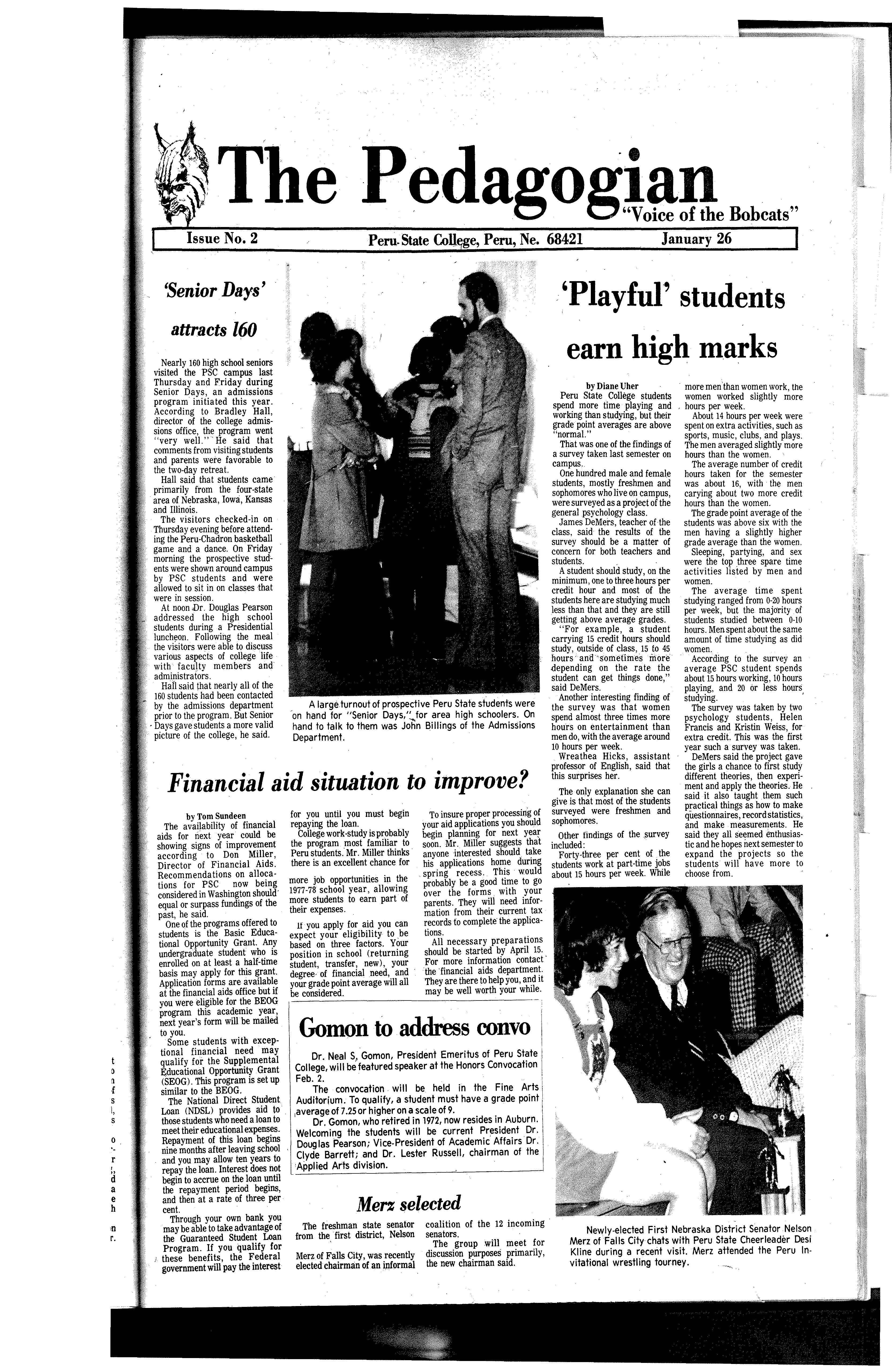 Three Peru State Home Economics students and their advisor, Mrs. Arlene Fell, a majority of 74 per cent in 1976c· attended the· Nebraska Home Senator Lewis is serving his Economics Association annual second two-year term as meeting recently at the Villa Inn Chairman of the Education in Norfolk. Committee. During this period, .Students attending were the Committee has pursued an Donna Stemper, Peru; Lora active role in educational Black, Johnson; Sharon Dietprograms designed to stren- rich, Plattsmouth, and club gthen special education for the advisor Mrs. Fell handicapped, establish the tech- · "Home Economists Working nical community. college system, Together In a Changing World" and enact legislation affecting was the theme for this meeting. due process for teacher dismis- A preconvention workshop on sal and disciplinary action aging was held on Friday involving students. afternoon. Fullowing this on