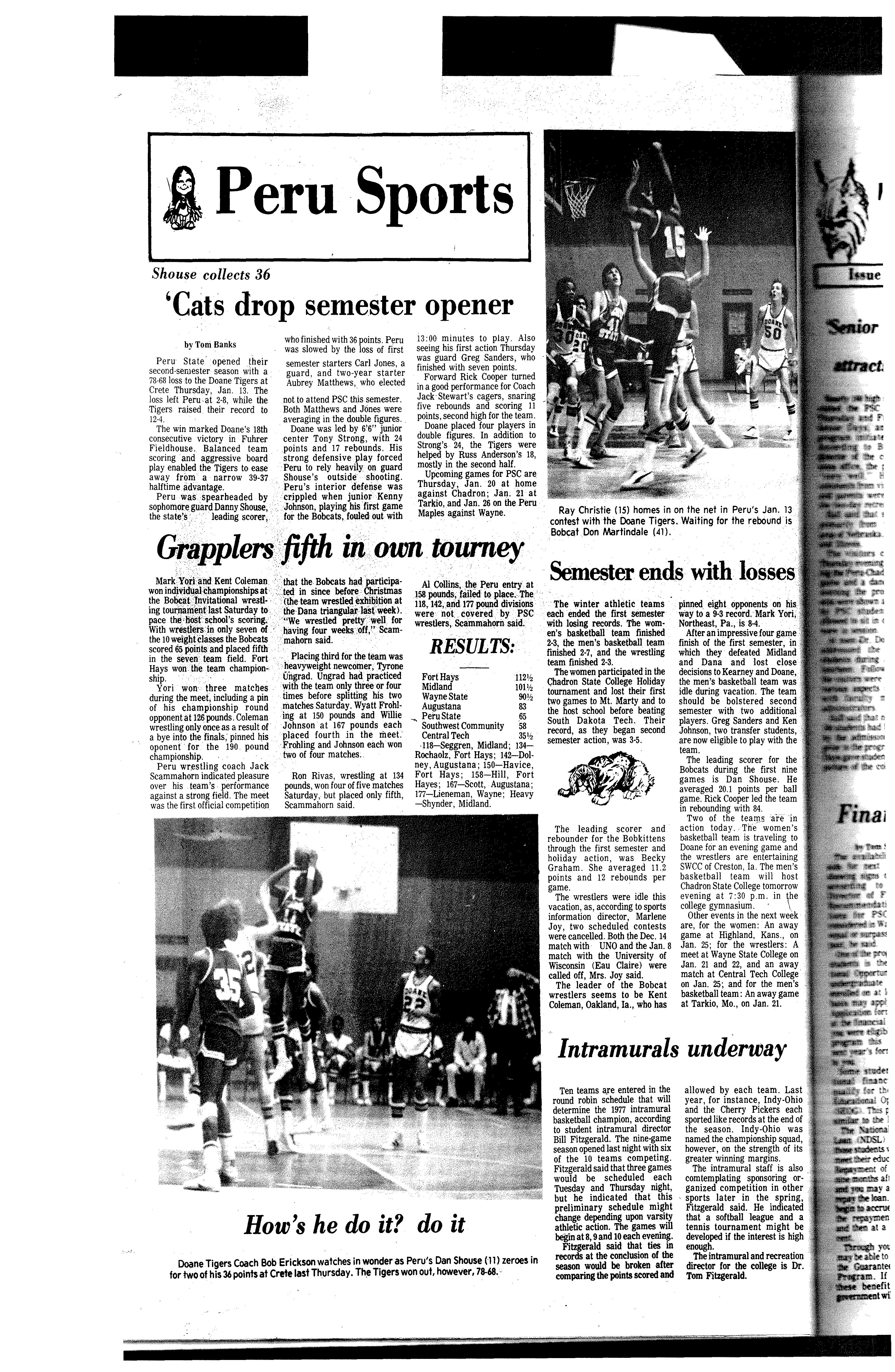 As some of you may remember, last year's Applejack game was close as Peru and Tarkio battled for a win which would put PSC one step nearer to its second permanent Applejack trophy. (Peru acquired the first trophy by compiling three consecutive victories in the last three bowls.) With two more concurrent wins at Applejack, Peru could reJain yet another monument.