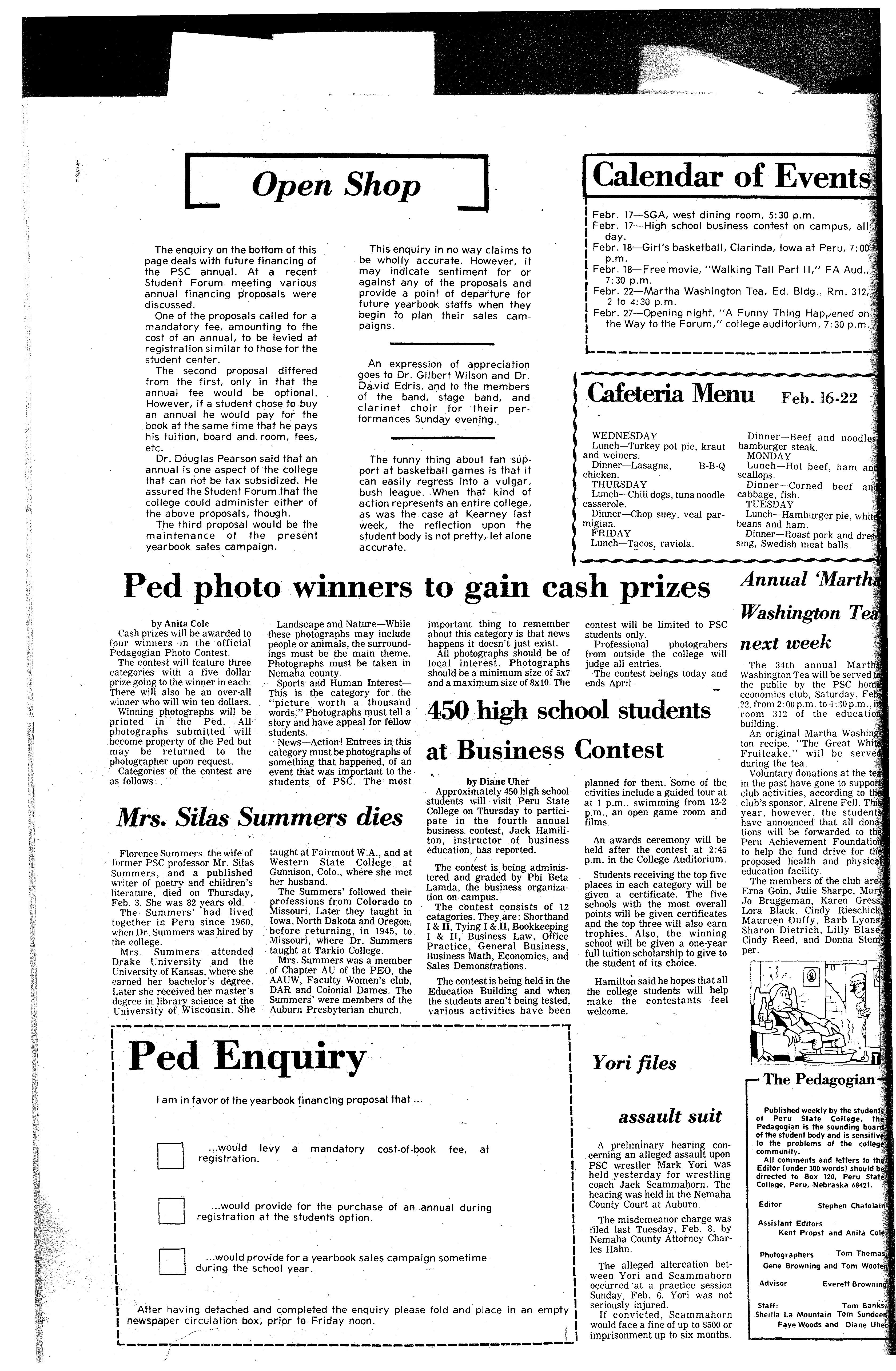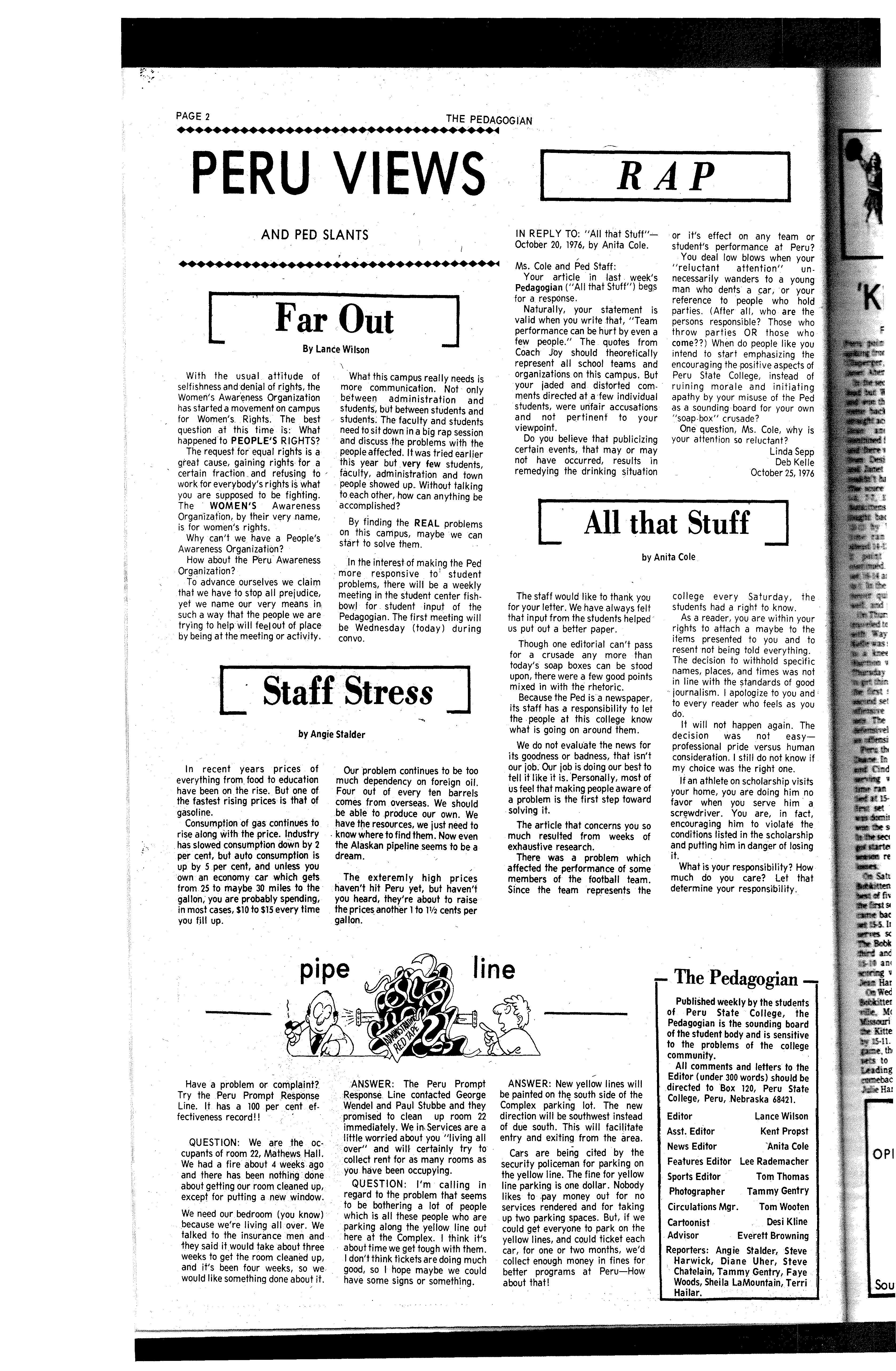 ISSUE NO. 1 Peru State College, Peru, Ne. 68421 WEDNESDAY, SEPTEMBER 15, 1976