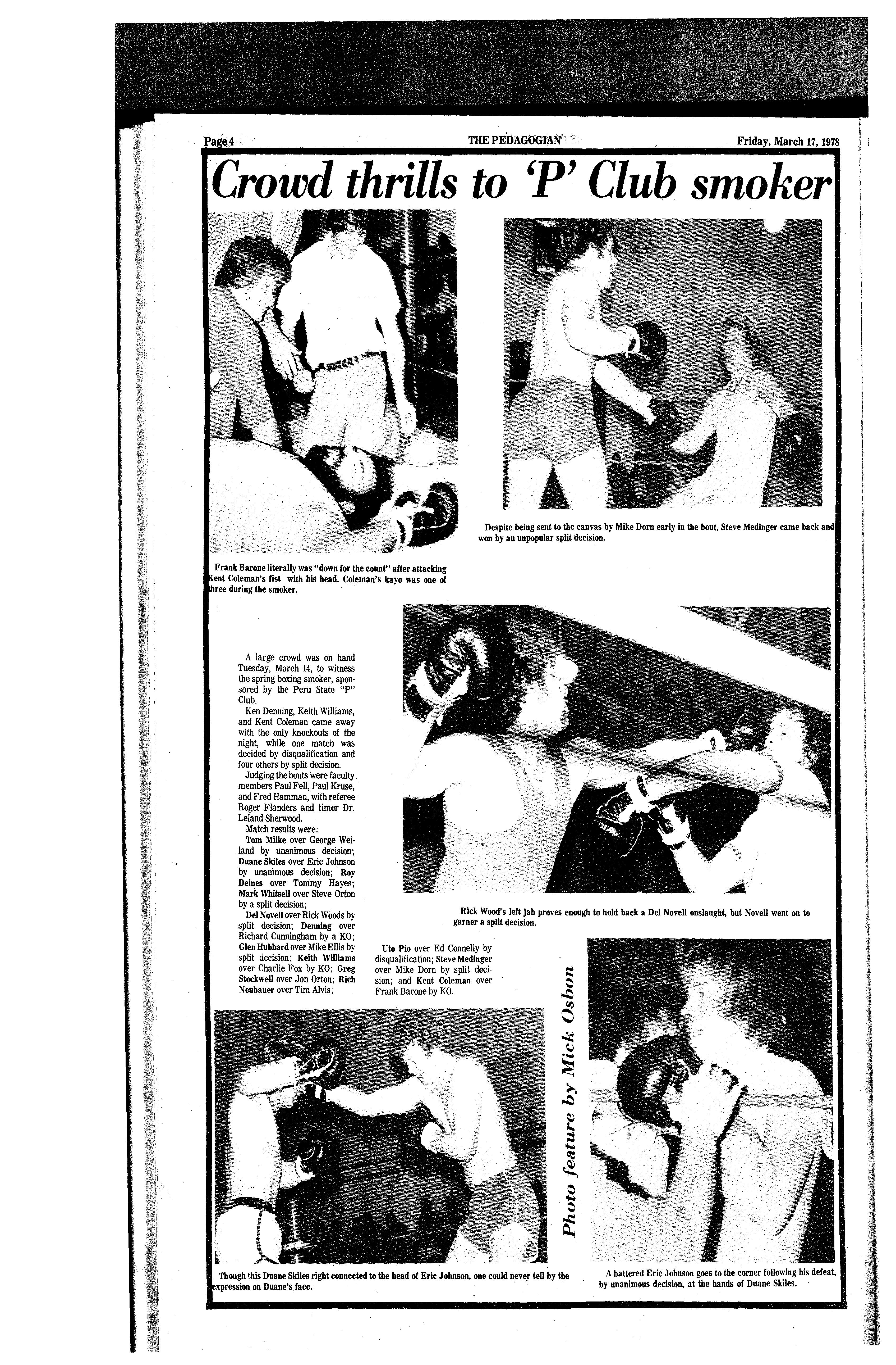 First, thanks to Coach Jerry Joy's football team for the great moments they brought us in the fall, and to Coach Pat Gilbert's young volleyball team for putting Peru on the map as a future power.