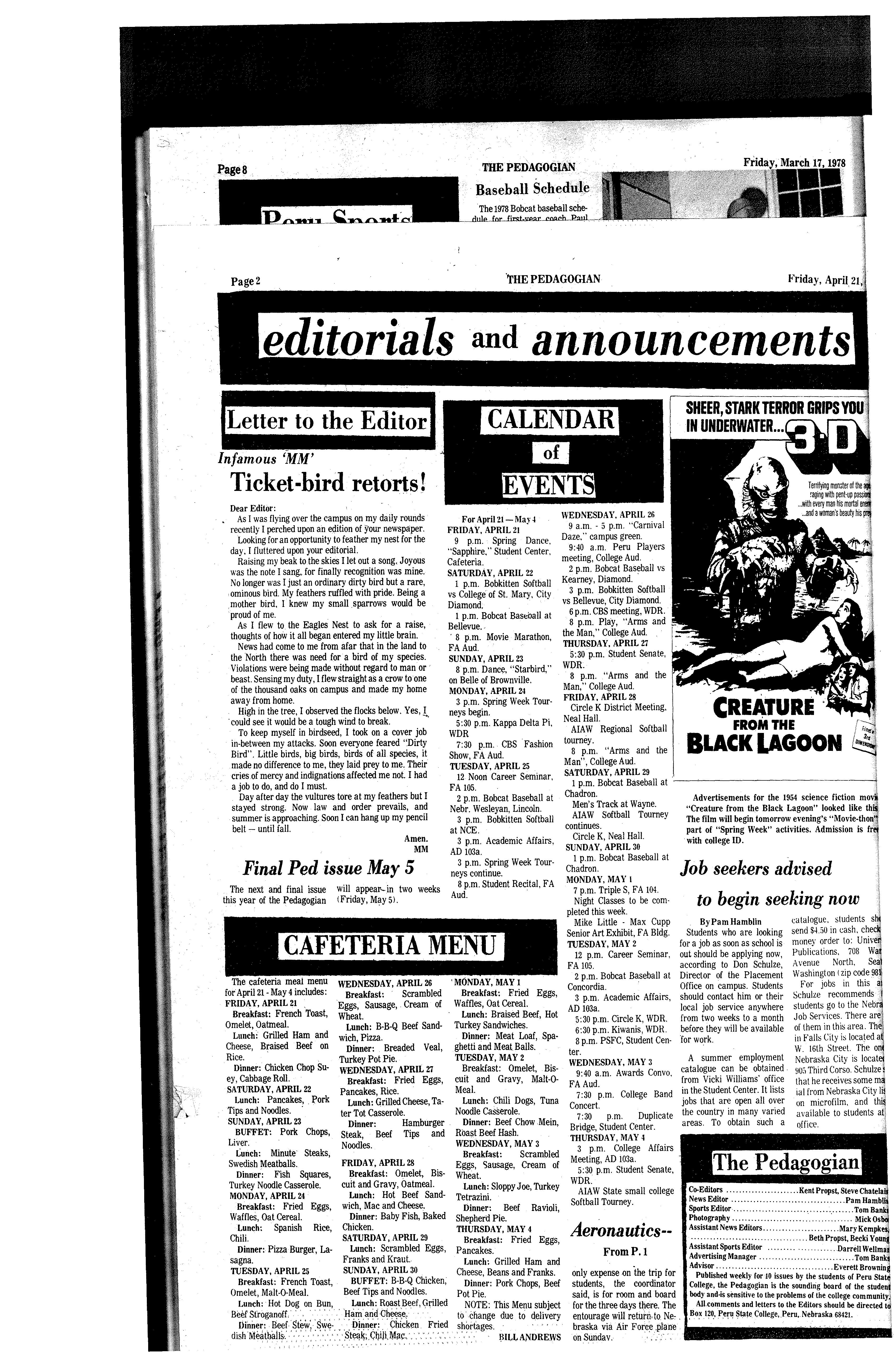 It has been interesting around the Peru State campus. Two stories of special importanceapproV'al of.a revised form of the Peru State gym proposal, and the sudden resignation of the Presi(fent of - deserve special comment. with the gymnasium situation,yotrsbOUld know first that it is probably themostimportantthing to happen to the college in