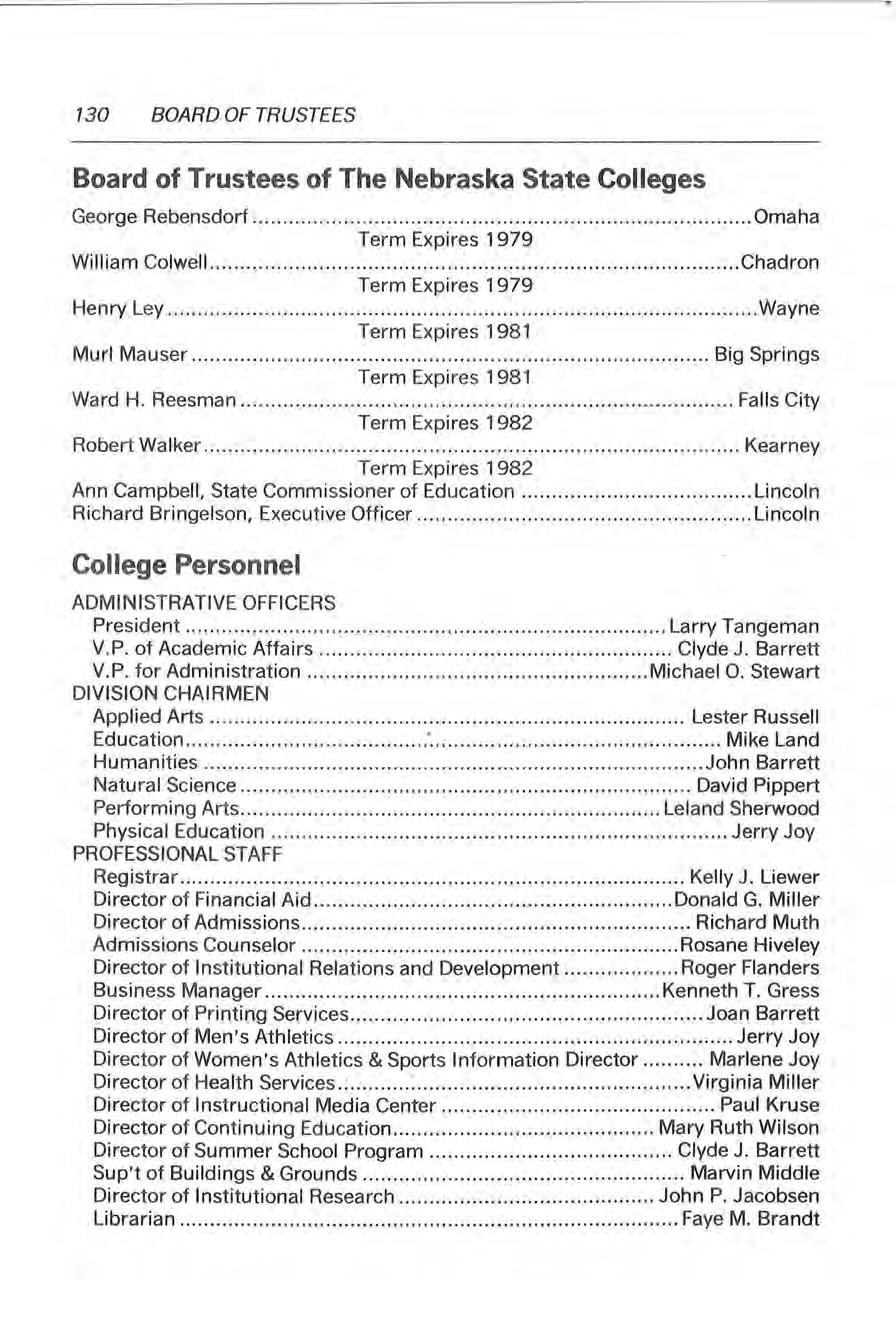 COOPERATING SCHOOLS 141 In dex A D Abbreviations, Campus ........... .......... .. .............. 9 Degrees / Requirements ......... .......... .. ............. 35 Academic Information 33 Dining Service .... .. .. .. ........ ... ... ......... ....... .... ... .26 Academic Load .42 Division Chairmen 130 Academic Structure 4 Dormitories ........ ............ ......... . .. ...... ... ... .... . .. .26 Accreditation 6 Drafting Technology 58 Accounting 50, 91 Accounting, Technology ... .. .... ..... .... ................ 50 E Achievement Foundation 10 Administrative Officers 130 Early Childhood Education 70 Economics 108 Admissions Procedures .... ... . .. ........ .. .... .......... 12 Education 70 Admission to Teacher Education ... .. .. .... ... ....... 61 Advanced Standing 40 Alumni Association 9 Applied Arts, Division of .48·60 Armed Force s Credit .......... ....... .... .. ..... ........... 40 Art 85 Attendance, Class 42 Audit. 44 Auto Registration 32 Education, Division of 61 •70 Electrical Technology 58 Elementary Education Program Requirements 65 Emeriti Faculty 136 Endorsement for Teaching 62 English 71, 104 Entertainment, Recreation, Social Life 28 Awards 22 F B Faculty 132 Faculty Committees 137 Biological Science 77, 115 Family, Home & Consumer Economics 60 Board and Room Fees 17 Federally Funded Programs 19 Board and Room Refunds 19 Fees, Board and Room 17 Board of Trustees of the Nebraska Fees, Private Instruction 16 State Colleges 130 Buildings and Facilities 7 • Fees, Refunds 18 Fees, Registration / Special 16 Business Administration 54 Financial Aid 18 Business Education ...... .......... ...... ..... ... .... ... ...50 Financial Aid, Applying for 19 Financial lnformation ............. ..... ...... ........... ... 18 C Calendar 140 Fine Arts 122 Food Serf ice 28 Campus Life ... ... .. ....... .. .. .-.. . .. .......... . ............... 25 Certification in Nebraska 62 G Change in Major 35 Change in Registration .............. ............. ........ 44 Chemistry 77, 116 Classification of Students .41 Coaching of Interscholastic ~ports 88 College Personnel. 130 College Testing Program 25 Commercial Art ...... .. .... . .. ... ........ ......... ............ .. . Committees, Official 139 General Information ... .. .. ......... .... .. . ....... . .. ..... ... 5 General Science 77, 116 General Studies Objectives :. 37 General Studies Program .... .... . ............ .. ... .. .... 40 Geography / Geology 117 Goals .7 Grading System 42 Graduation Honors 44 Graduation Requirements ..... ............ .... .......... 35 Computer Center , , Computer Programming ............. .. ....... .:. .. ...... 51 H Conferences and Clinics .. . .. .... ..... ......... . .'.. .... .. 10 Handbook ... .... ... .... ....... ...... .......... .... .... .. .. ..... 31 Construction Technology 57 Health Service 26 Cooperating Schools 138 History 74 Courses, Night/Graduate Off Campus .. .... ... .. .. 35 History of College 5 Courses, Repeat .... .. .... . .. ............. ................... 44 Honor Roll. 44 Credit by Examination 40 Housing Contracts 17 Credit, Transfer .40 Housing, Faculty 9