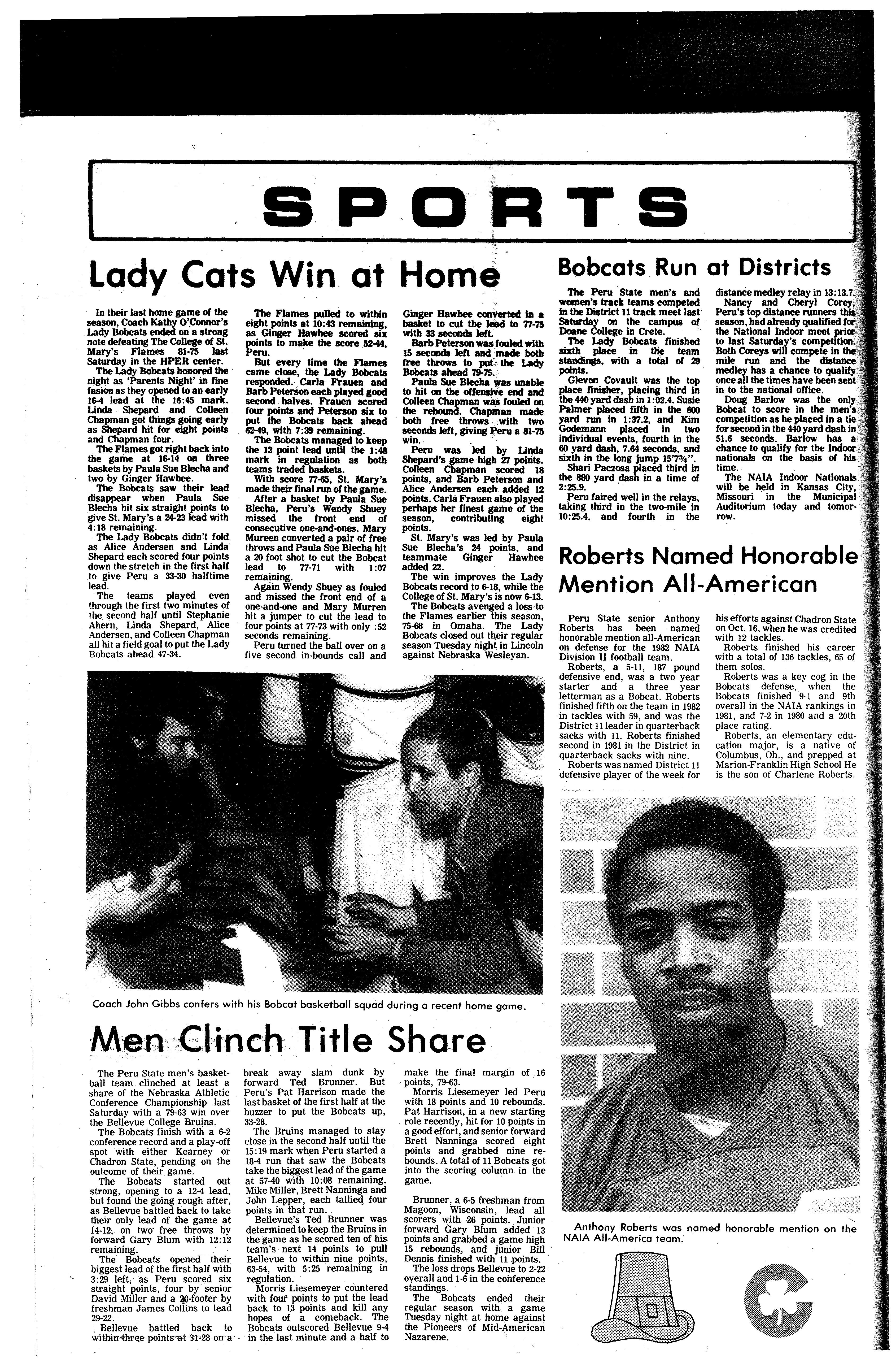 Doug Barlow, junior, Lincoln, was a double event winner as he won the 200 meters in 21. 79 and the 300 meter intermediate hurdles in 40.38 seconds. The Bobcats had seven other event winners in the meet. Distance runners,,. Don· Strecker, sophomore, ·Falls City, won the 1500-meter run in 4:22.05, and Tony Markey, freshman, Bellevue, won the 5000 meters in 9:50.64.
