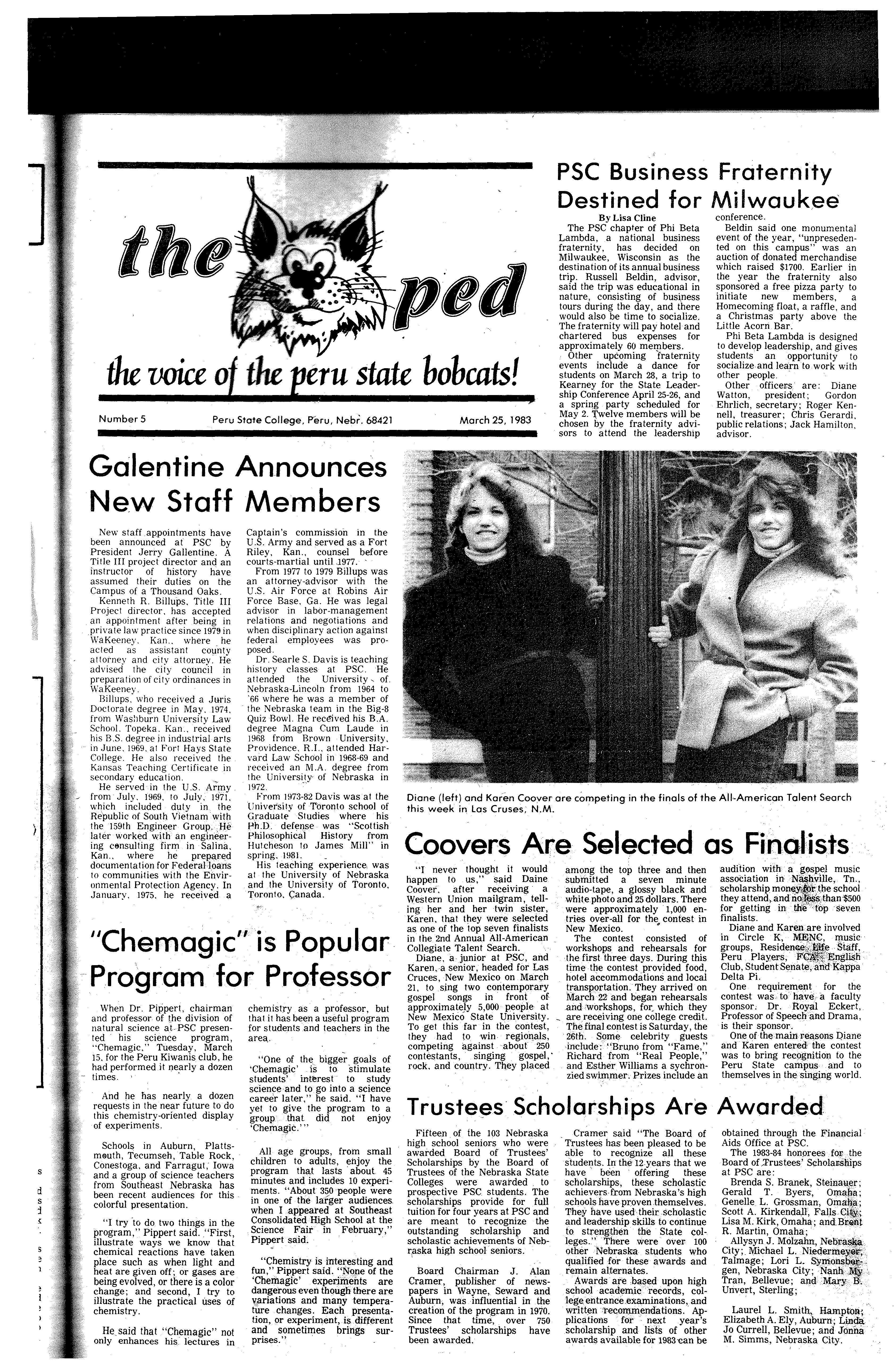 '.'The committee is very pleasedwiththeacademicand successfuladministrativeexper�nce that the new president brlhgs to Peru State College," .WardReesman,chairmanofthe .BqafdSearchCommittee, said. "Hisrecordshowsthathe,hasan e�ceptional ability to work �ffectively with staff and �µmnity members to bring l§q)tatsc�?emicprogramdevel�mf:m