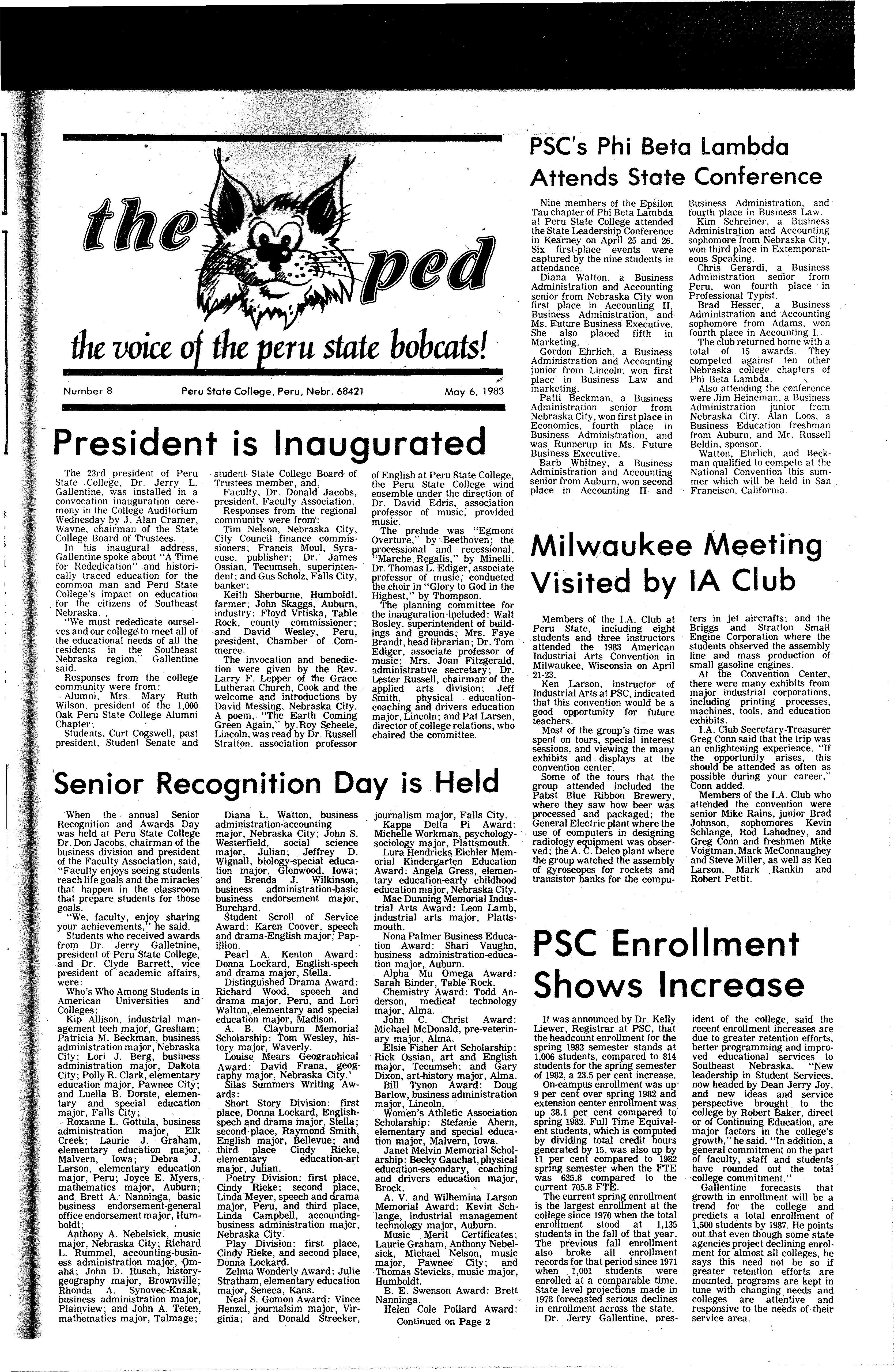 B<l.ard of Trustees announced May26ththatthenewpresident of Peru State College is Dr. Jerry L. Gallentine, a former jac:ulty member at Fremont's Mi<ilandLutberanCollege, and presidentofLabetteCommunity CollegeatParsons,Kan.,forthe pasfthreeyears.