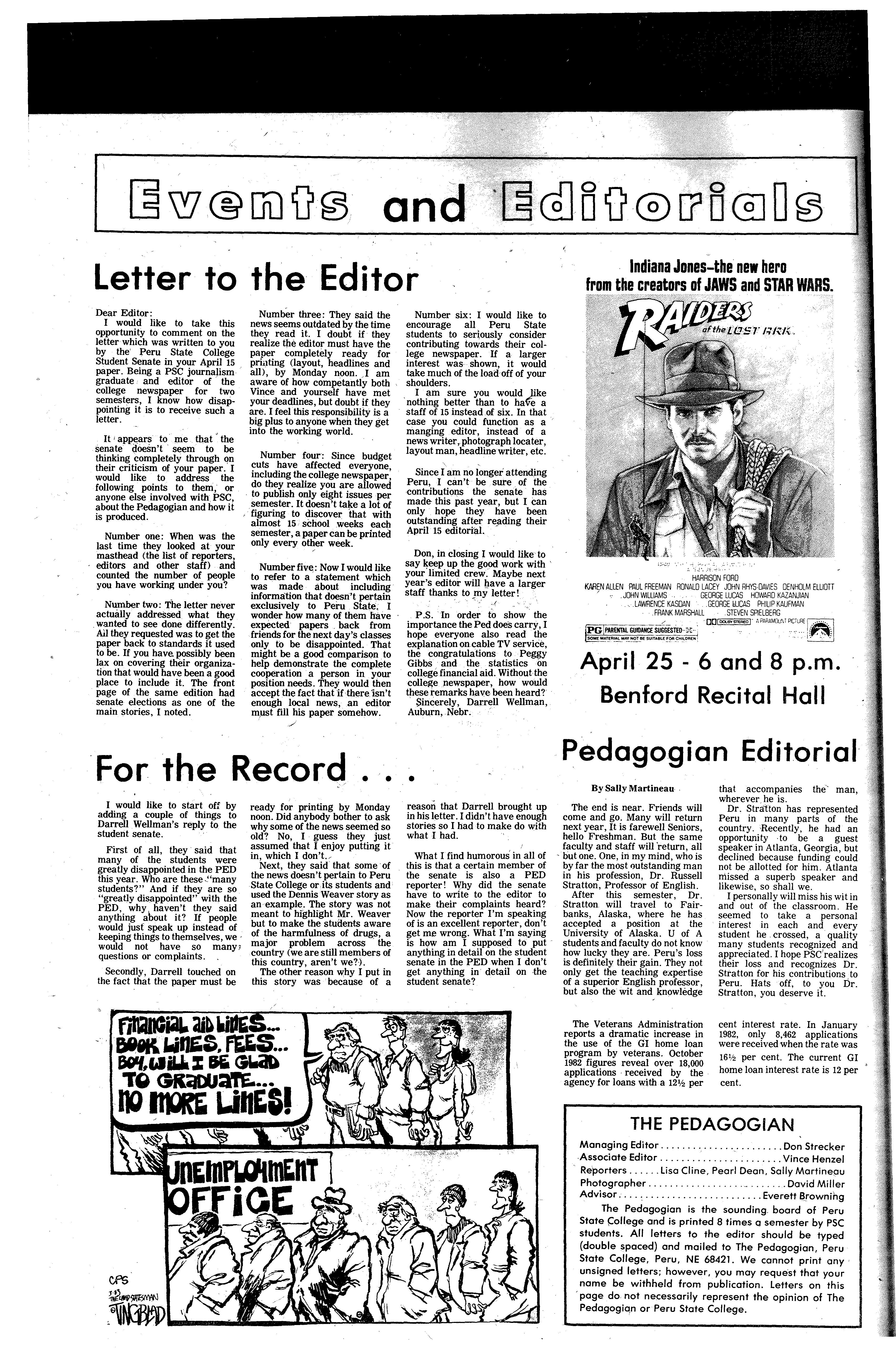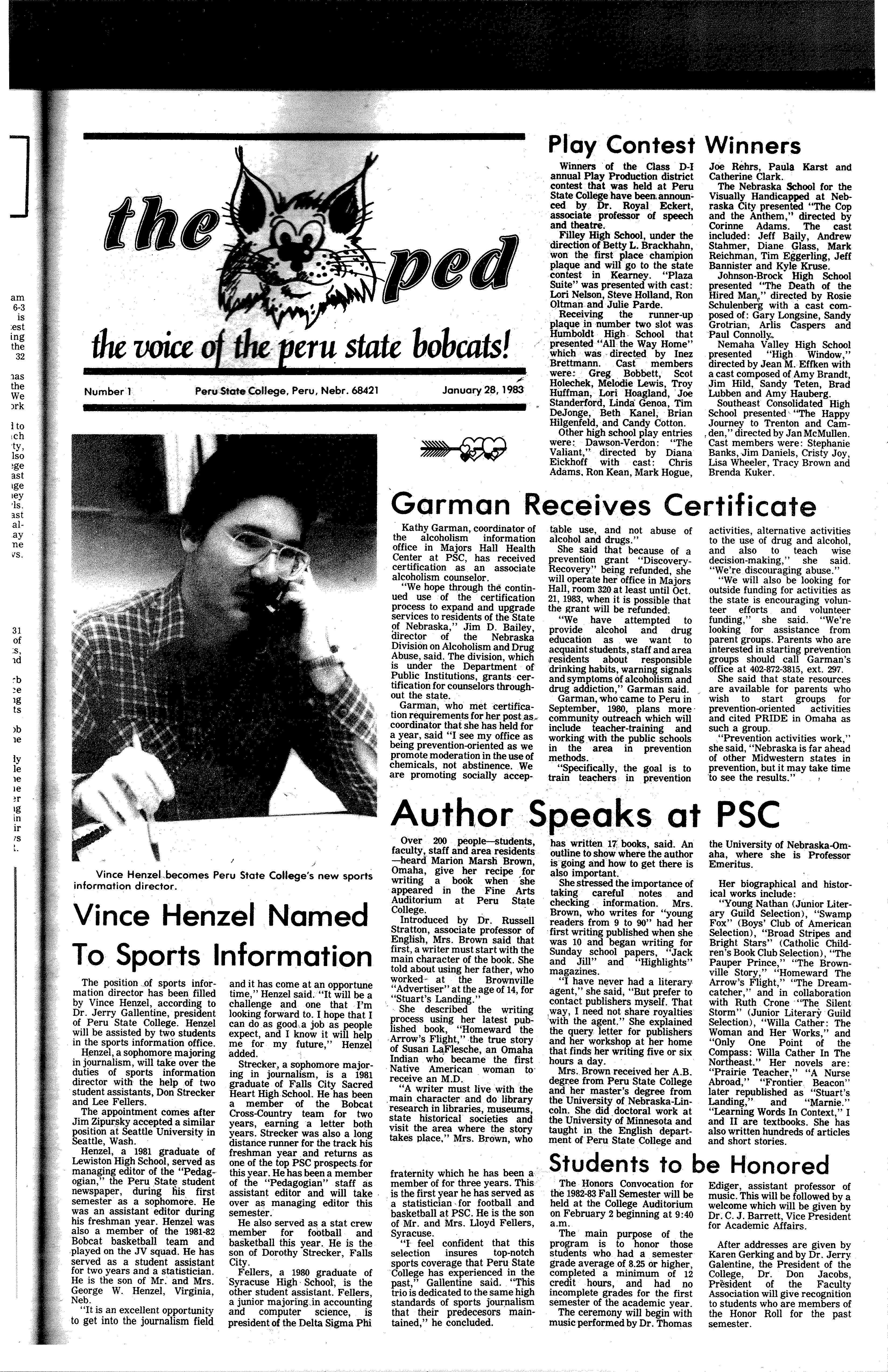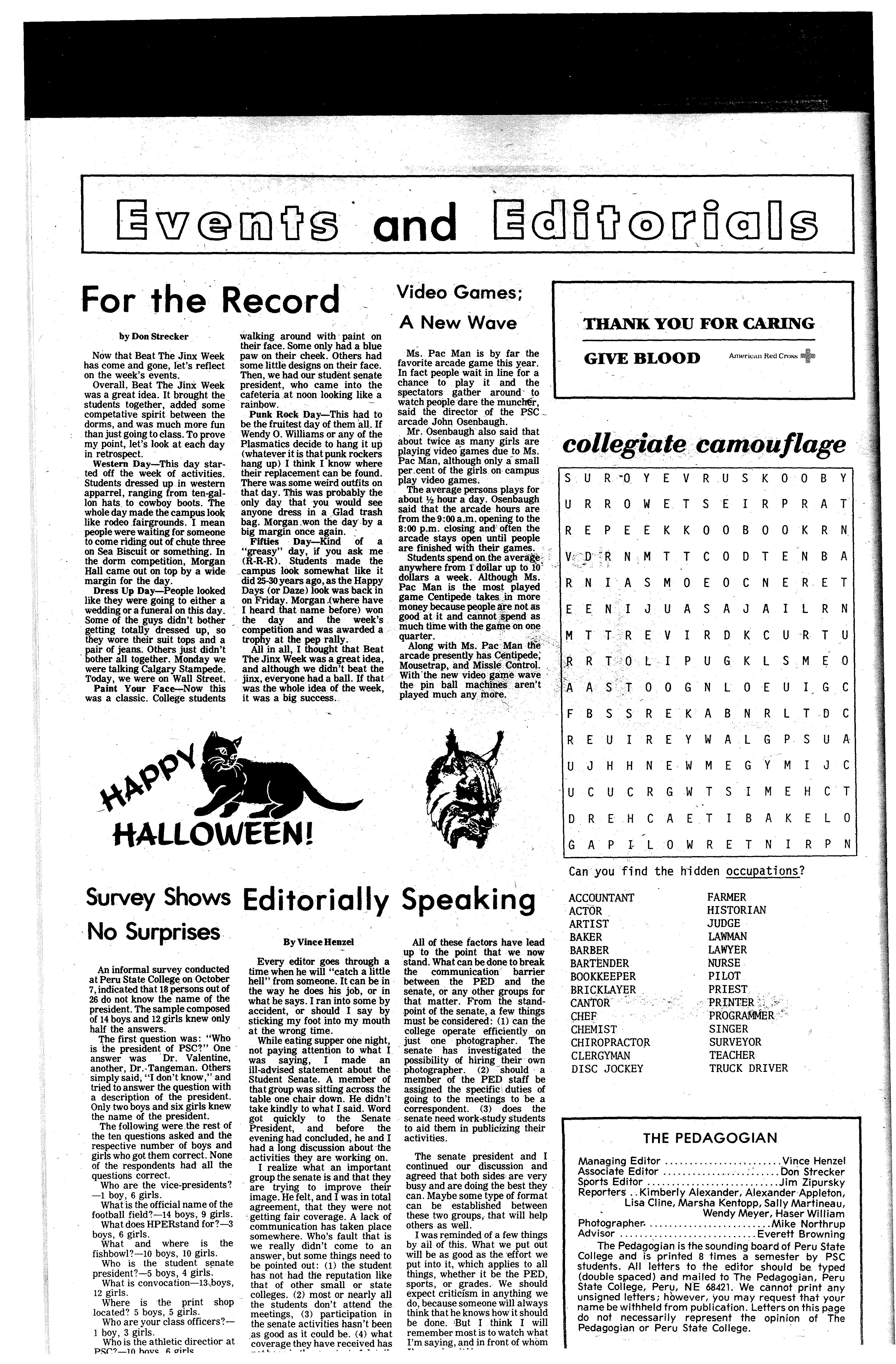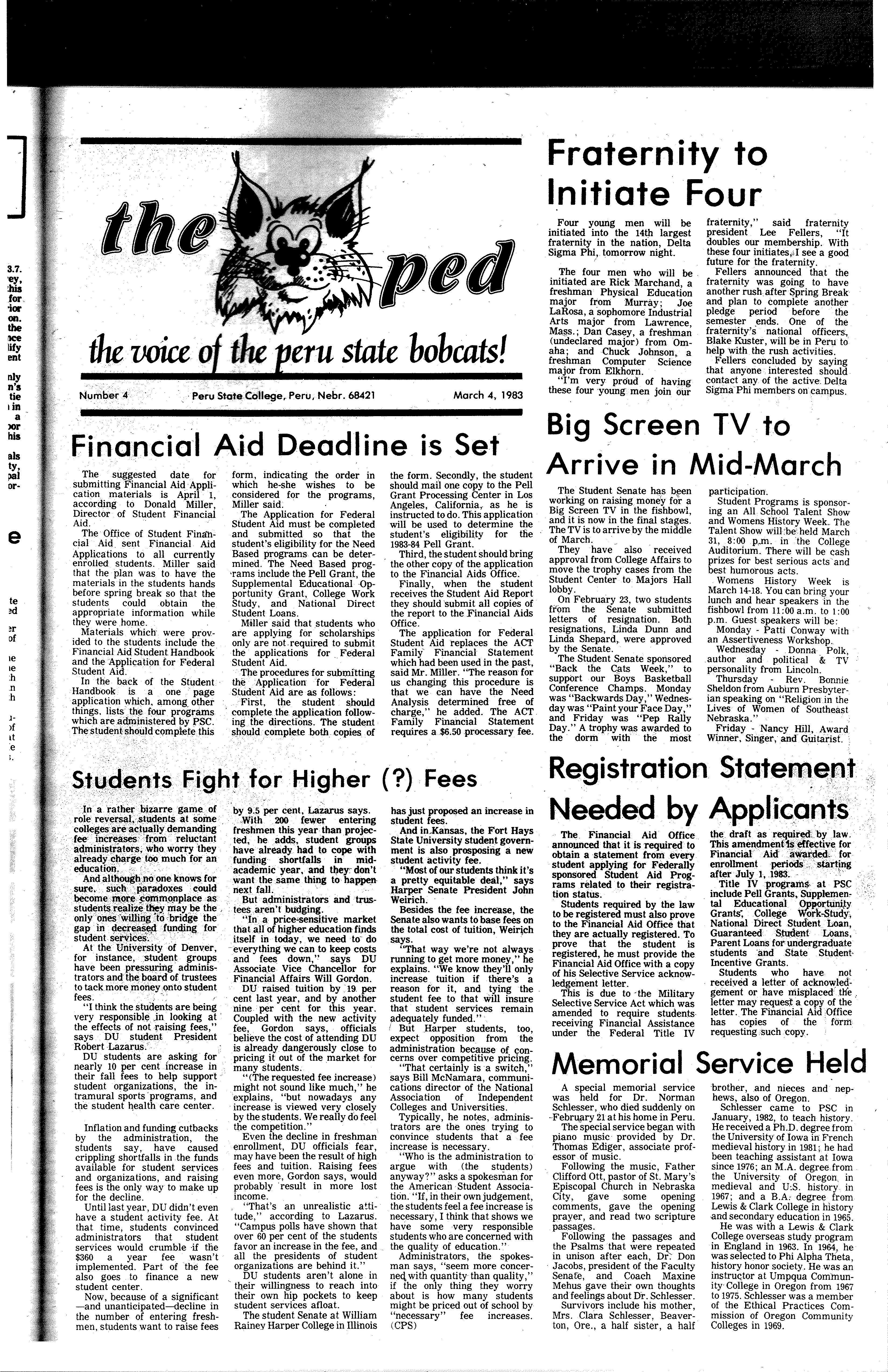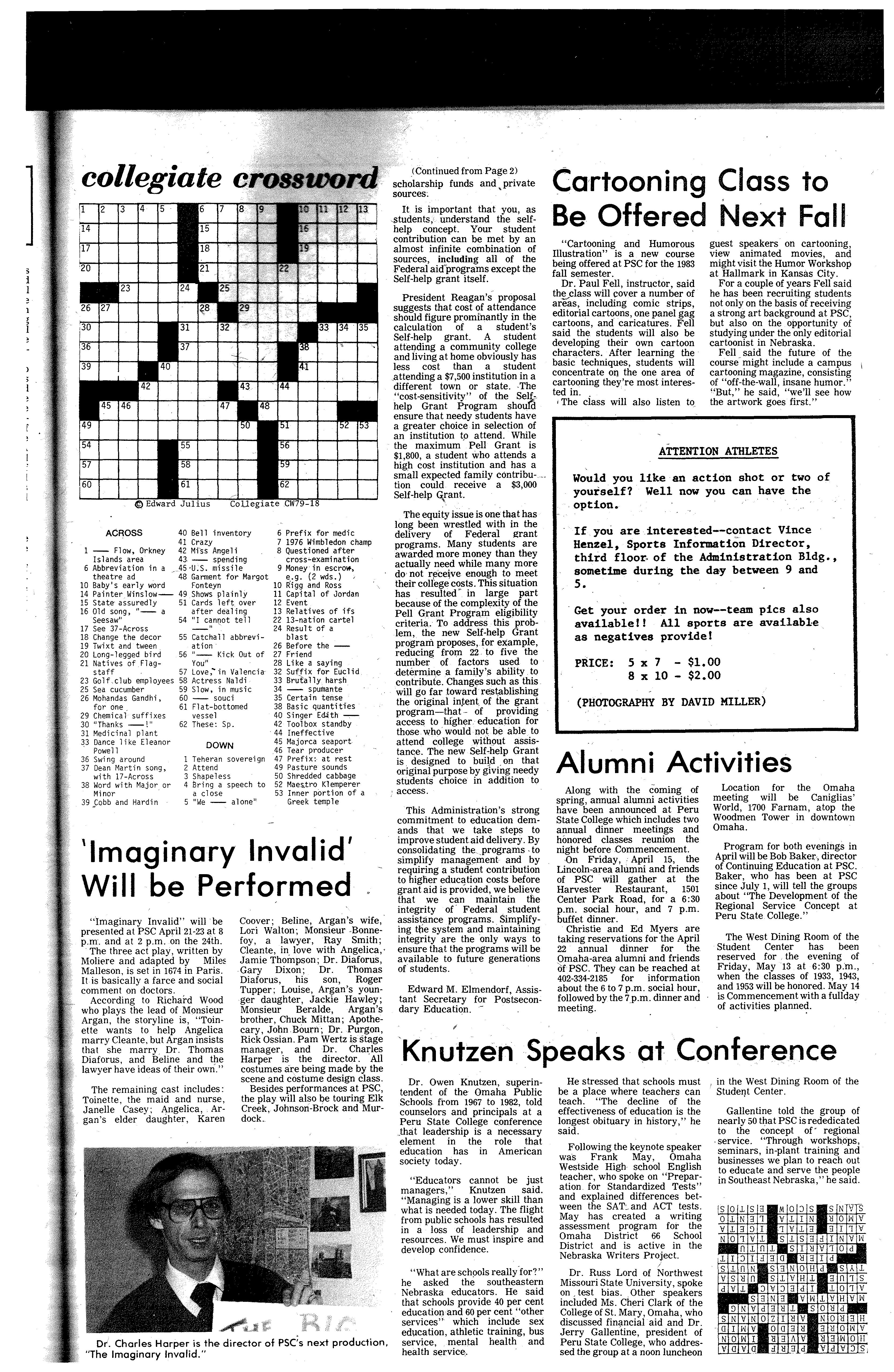 Hepointedoutthatwithanew Title III grant that will be received in October, employment opportunities will be soughtforstudentswhowishto work.and attend Peru State College."Afull-timepersonwill behiredtoinvestigatetheareas that would be beneficial to students job-wise to make it possible for many to attend ,!!Ollege,,,heconcluded. (CNS)