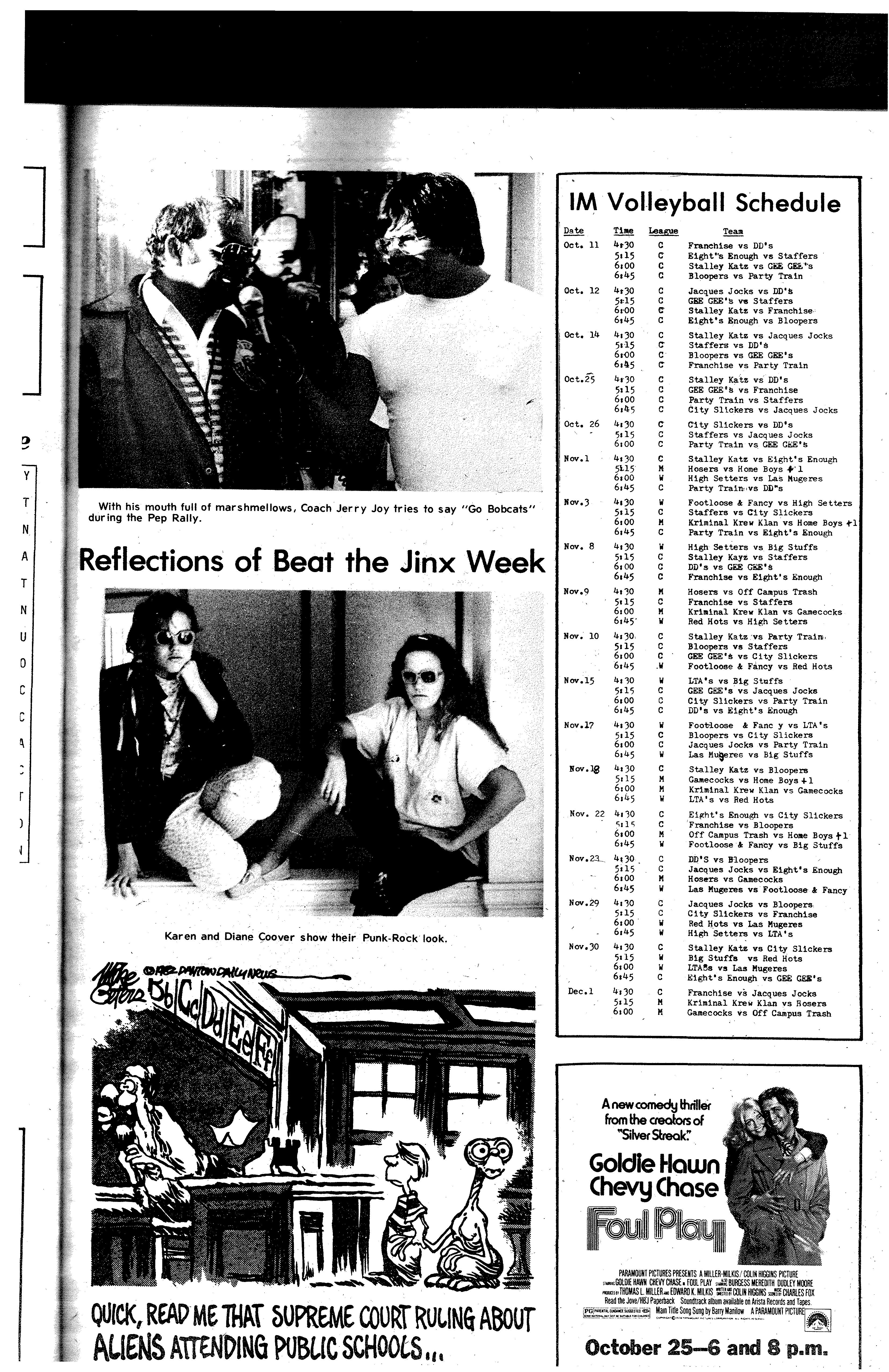 A special activities weekend has been tabbed for Nov. 12 and 13. A ca&ino night is' one of the feature attractions, and the attempt to get hot-air balloon rides has been tentatively ·set. The senate also iri charge of the Homecoming Dance to be held later that evening. ·