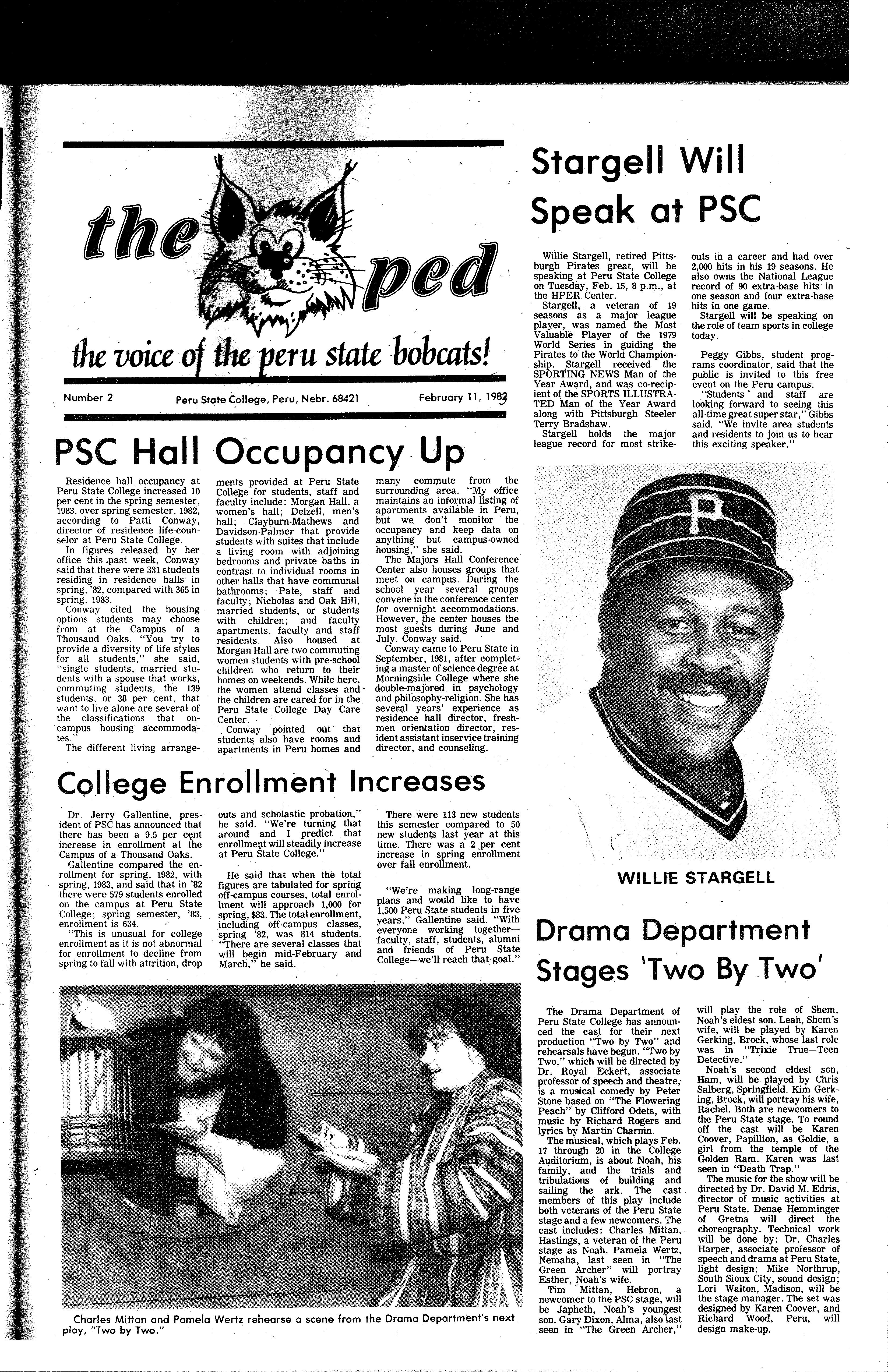 associate professor,of music, willbemusicaldirectorforthe thirdplayoftheseason, "Two ByTwo."Theplaywithmusic by Richard Rodgers is a dramatization ofNoah'sfamous 40 days and nights during·the flood, and of the problems encounteredandsolvedbythat amazingpatriarch.Themusical will be presented Feb. 17 through20, 1983.