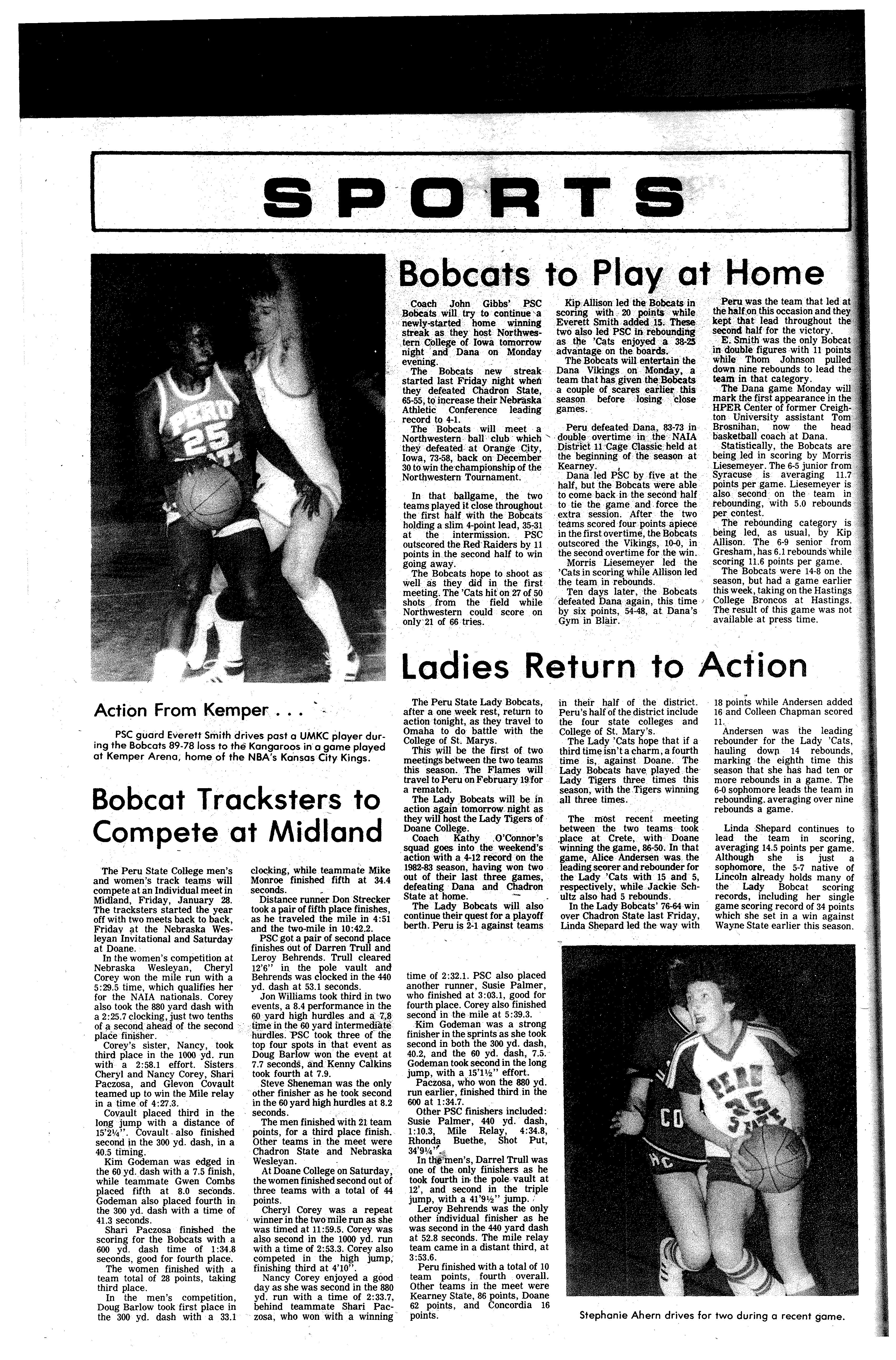 · The Bobcats took vtheir 8-10 overall record to Crete Tuesday to olciv Doane College. Next action for the 'Cats will be Sunday.against Belle"\fue at 1:00 p.m. in Bellevue in the season finale before the District 11 playoffs.