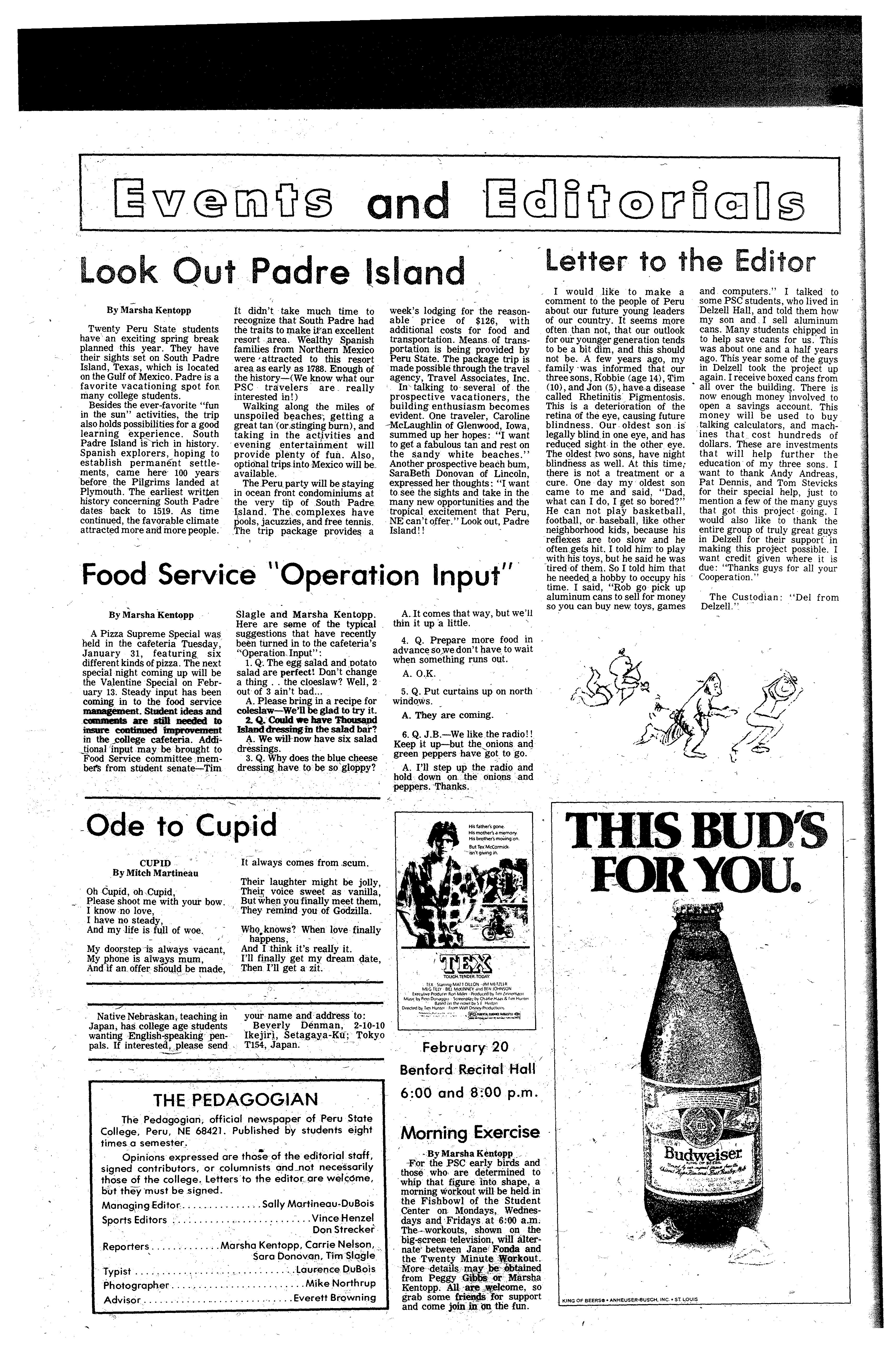 The Pedagogion, official newspaper of Peru State College, Peru, NE 68421. Published by studeriis eight times a semester.