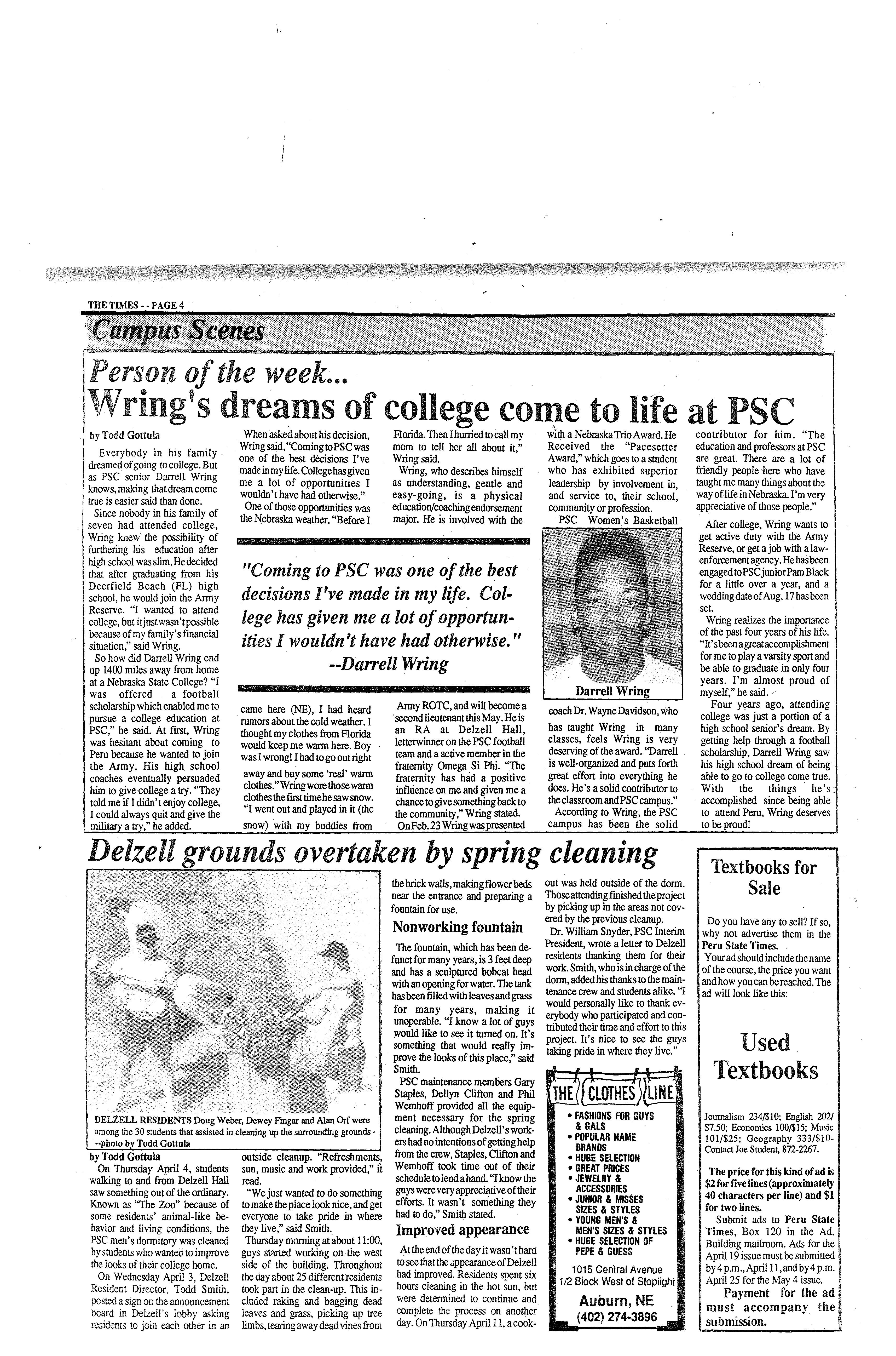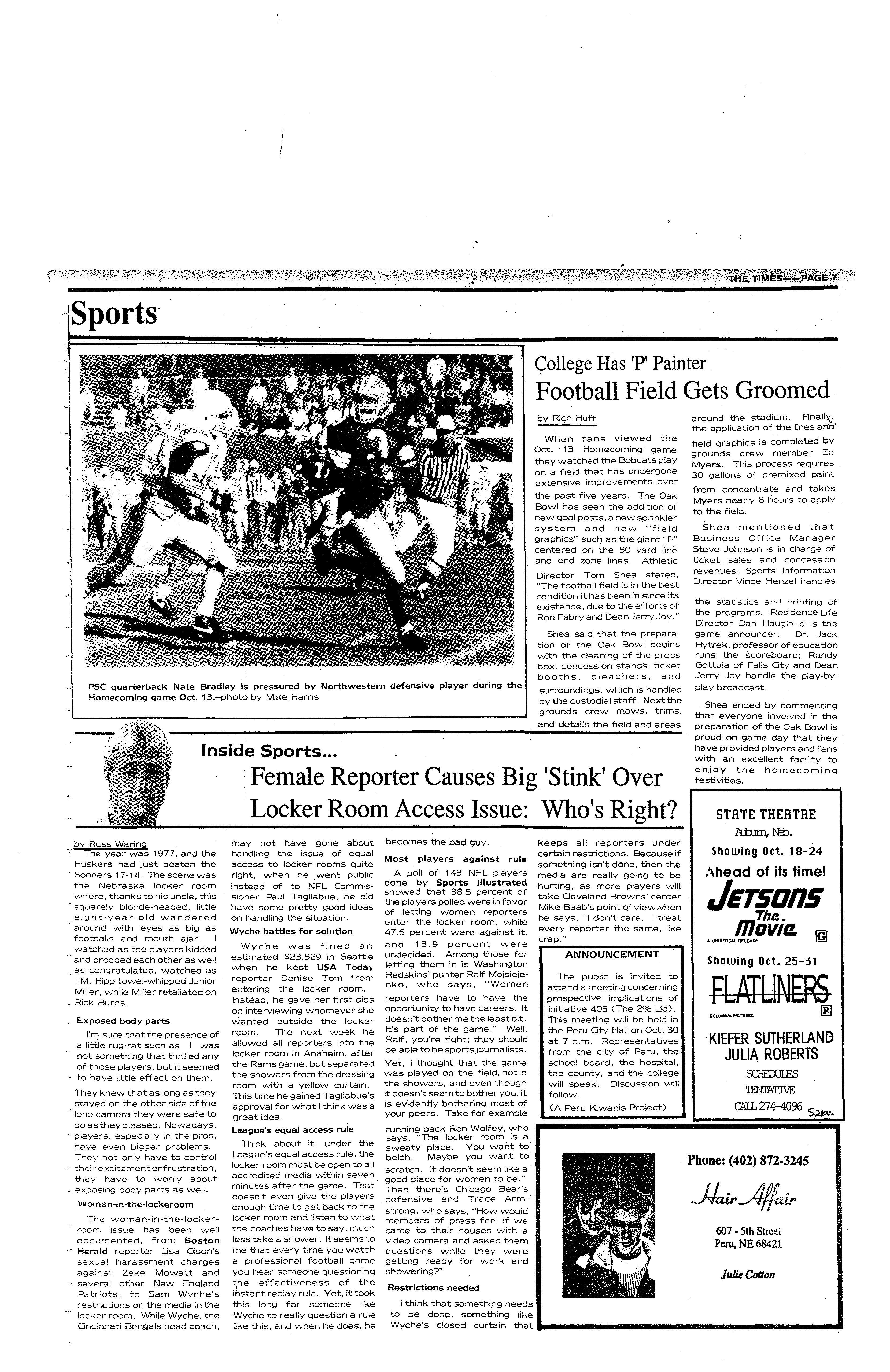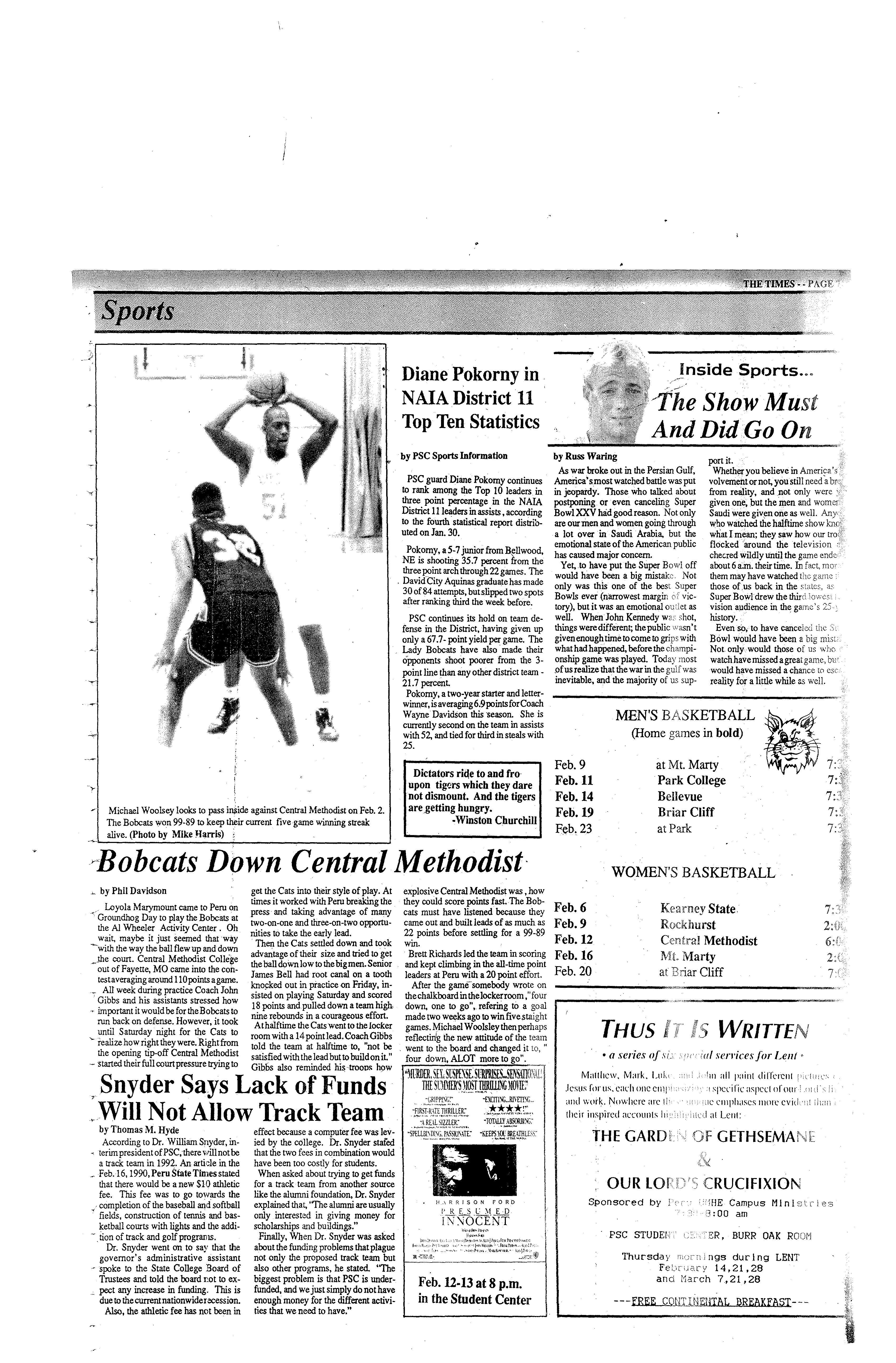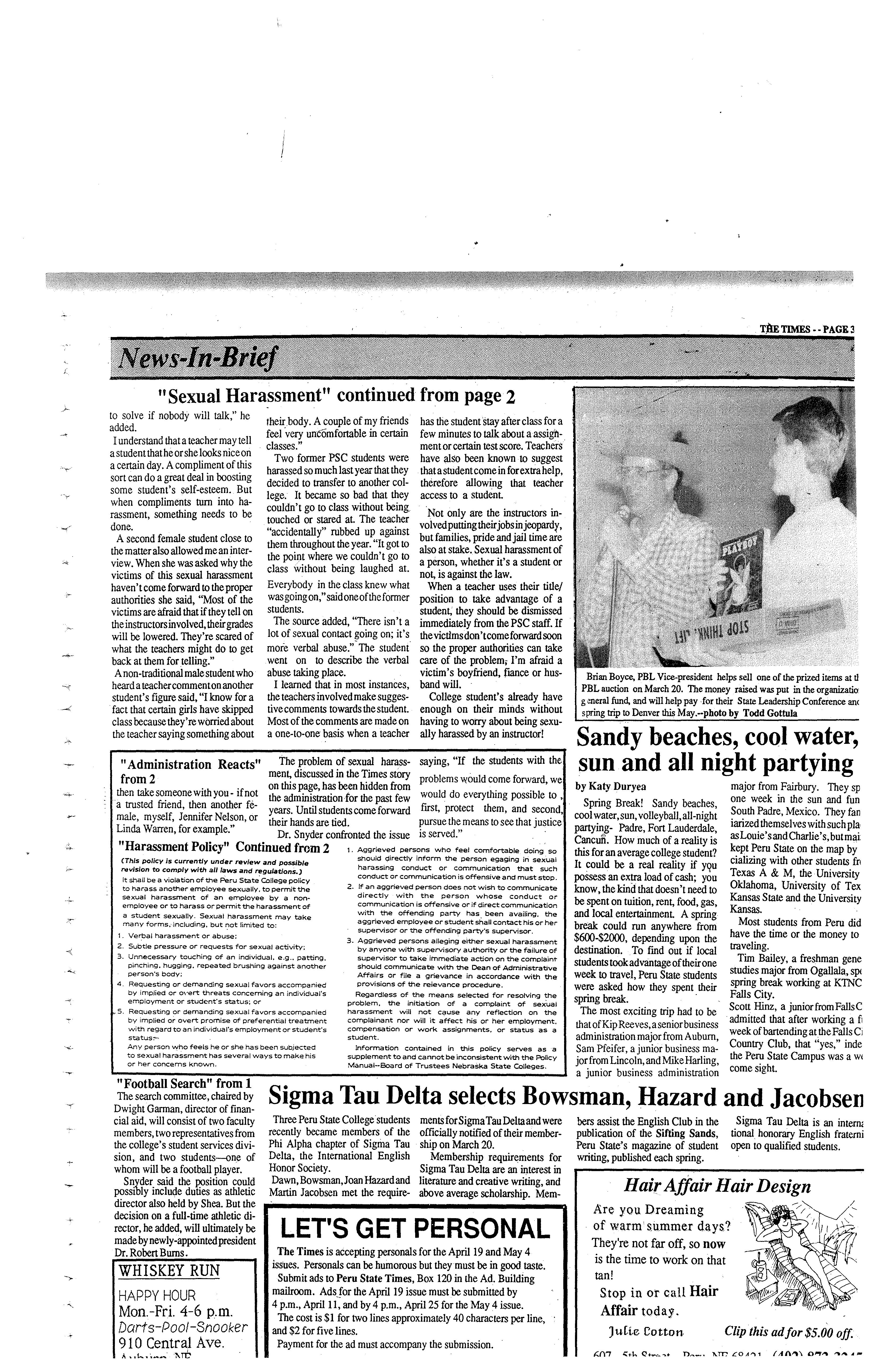 PERU STATE TIMES published bi-monthlJ! Managing Editor ........•...........•..•...•..••.•.............••............ Susan Brown Assista"t Managing Editors .•.•..••..•.....•.•......... ·...•............... Cathie English Betty Hl!'i:ht Laura Osborne Editorial Assistant .•...•..•.•.................•.........................•.. Merri Johnson .{Sports Editor ...•..•.•....•••........•..•..•...........................•...... Russ Waring Advertising Manager .••...••.....•... .•.•••................................ Laura Osborne Rlot:c>graphy Coordinator ••.....•.•...•.•••.....•......•....•......•........... Mike Harris 'Rlotographers ....•.•.•............••.....•.•............................... Ann Cosil'T'lano Dawn Bowsman Toni Cunningham Reporters •.•.••..•..••.•....•...••....•••..•...•...•....•.....••.•.. Beginnin'g Journalism Typesetters ......•....•.....•.•...•..•..••..••.•..••...•...•................• r<:aty C>uryea · · · Lisa Gottula Aclviser_ •.••••••.•••••.••..•.•..••.•..•••••••••••.•.•.••••••••.••.•.•..••..... oz. Dan Holtz \The Per"-State nmes welcomes a111etters to the editor. Ali 1ettersto""the lartictes should be signed and will be pt.blished at the discretion of the ecfjtors. The Peru State. Times reWveS the right to edit all letters to the editor. Editorials, unless signed. reflect the to: Editor, the Peru State TI':"s, Campus Mail, --. ' .