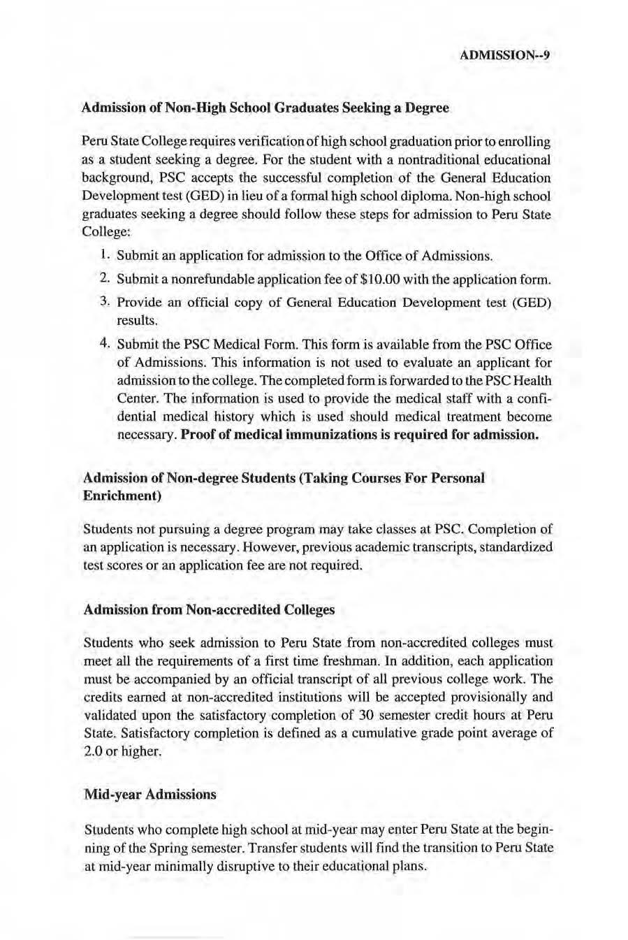 from Non-Accrcduted Colleges Adm ission of No n-Degree Students Admission of Non-High School Graduates Seeking a Degrcc •. Admission to Advanc<;d Standing