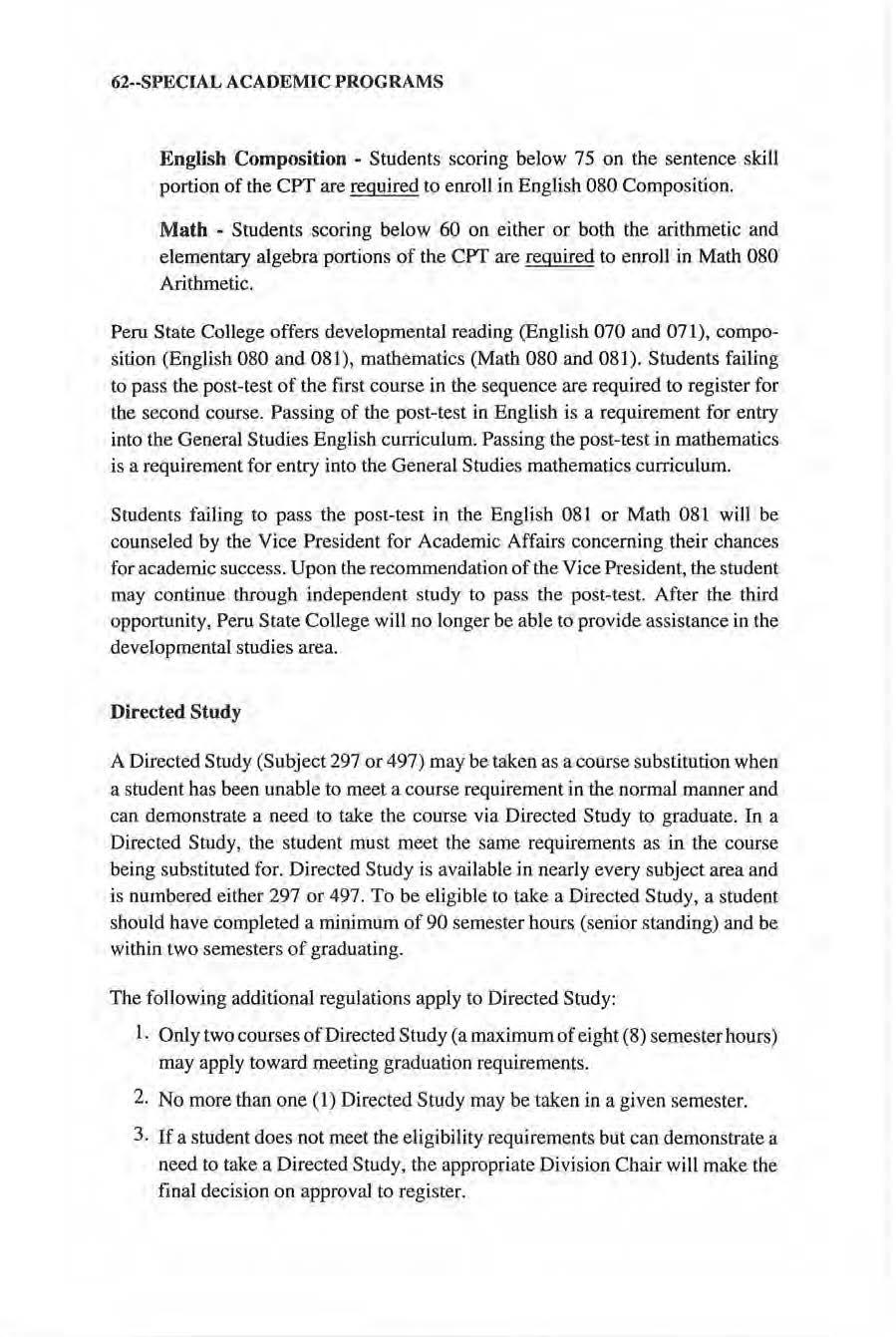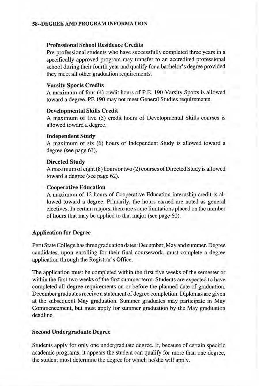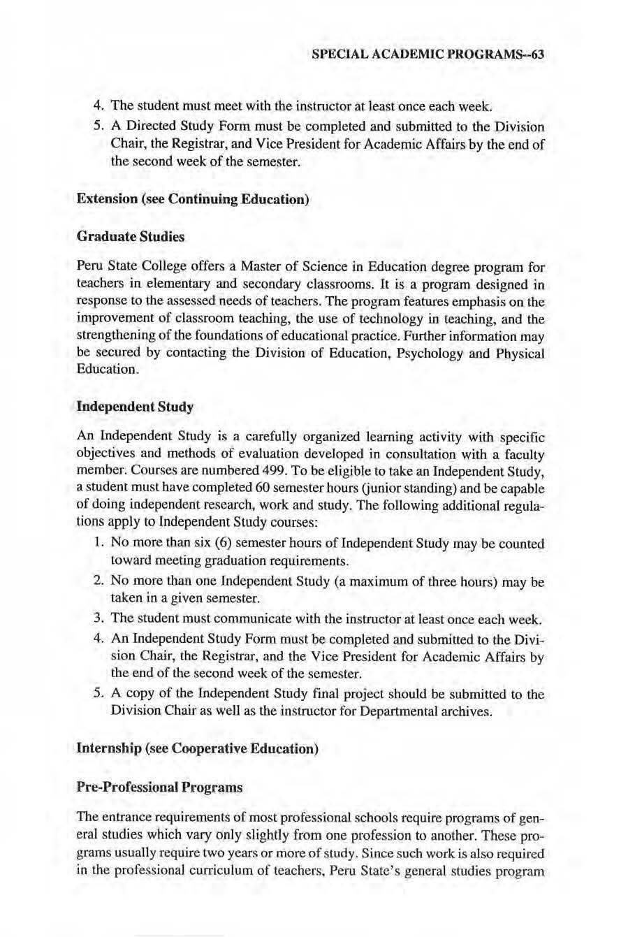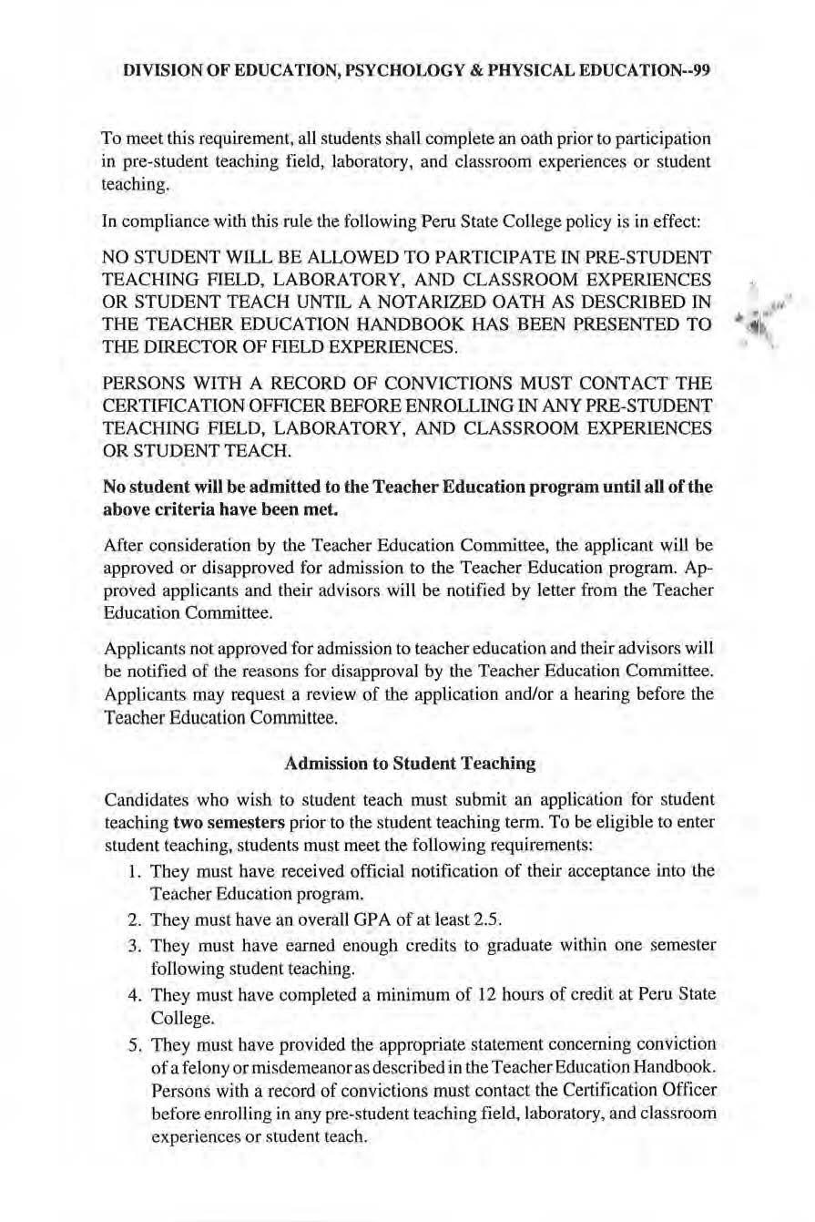 No person attending Peru State College shall, on tbe grounds of race, color, national origin, handicap, or gender, be excluded from participation in, be denied of, or be subjected to discrimination under any program or activity receiving federal financial assistance Inqui ries regarding these matters shou ld be directed to the Vice President for Administration and Finance. This catalog contains officia l information for the 1998-2000 academic years. The College res,erves the right to repeal, change, or amend rules, regulations, tuition and fees, and may withdraw, add to or modify courses and programs. The catalog is p1L1blished by Peru State College at Peru, Nebraska and entered under Bulk Pennit Number 4 at Peru, Nebraska 68421.