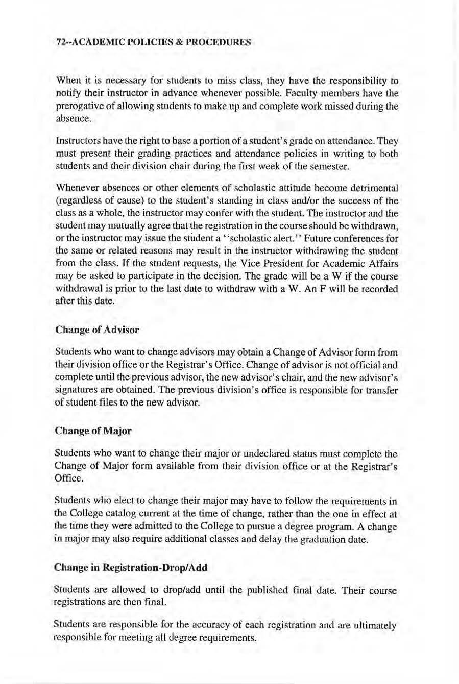 Art Cour.;Q Descri plion s •• ssessme nt . A lctics .......... ... . Aue ~ancc and Scholastic ')ltitudc Aud!t>-,.: ) • Aud1t111g a co~ :._.:,y· ·B· B,1che lor Degree Program s Bache lor of Arts Bach e lor of Science • . . . Bachelor of Technology Biological Science Course Descriptions Busines s Course Descriptions • Bu si ness, Division Of .•.•.. ·C· Campus Map. Capital l111prove111e11l Fee Career Center Change of Advisor Change o f Major . . . . . Change in Registrati on/Drop-Add Chemistry Cou rse Descriptions Classification of Students 65 65 Hi 65 68 69 21 45 69 •. 3 72 57 70 5, 35 35 14 .9 .9 9 10 49 60 52 65 58 17 65 .151 70 35 1 , 65 65 5 4 54 88 93 , 153 . 156 87 . 4 13 35 n 72 n 167 73 CLEP • , •. C lubs , .•. , •. , Code o f Conduct Co llege Course Descriptions . Co llege l OO and College 400 14, 65,.67 41 45 .169 Couri;c Descriptions College and Public Services Co llege Survival S kills College 1'r:u1sfer S tudents Com pleme ntary Degree Emphasis , 85 52 56 6 57