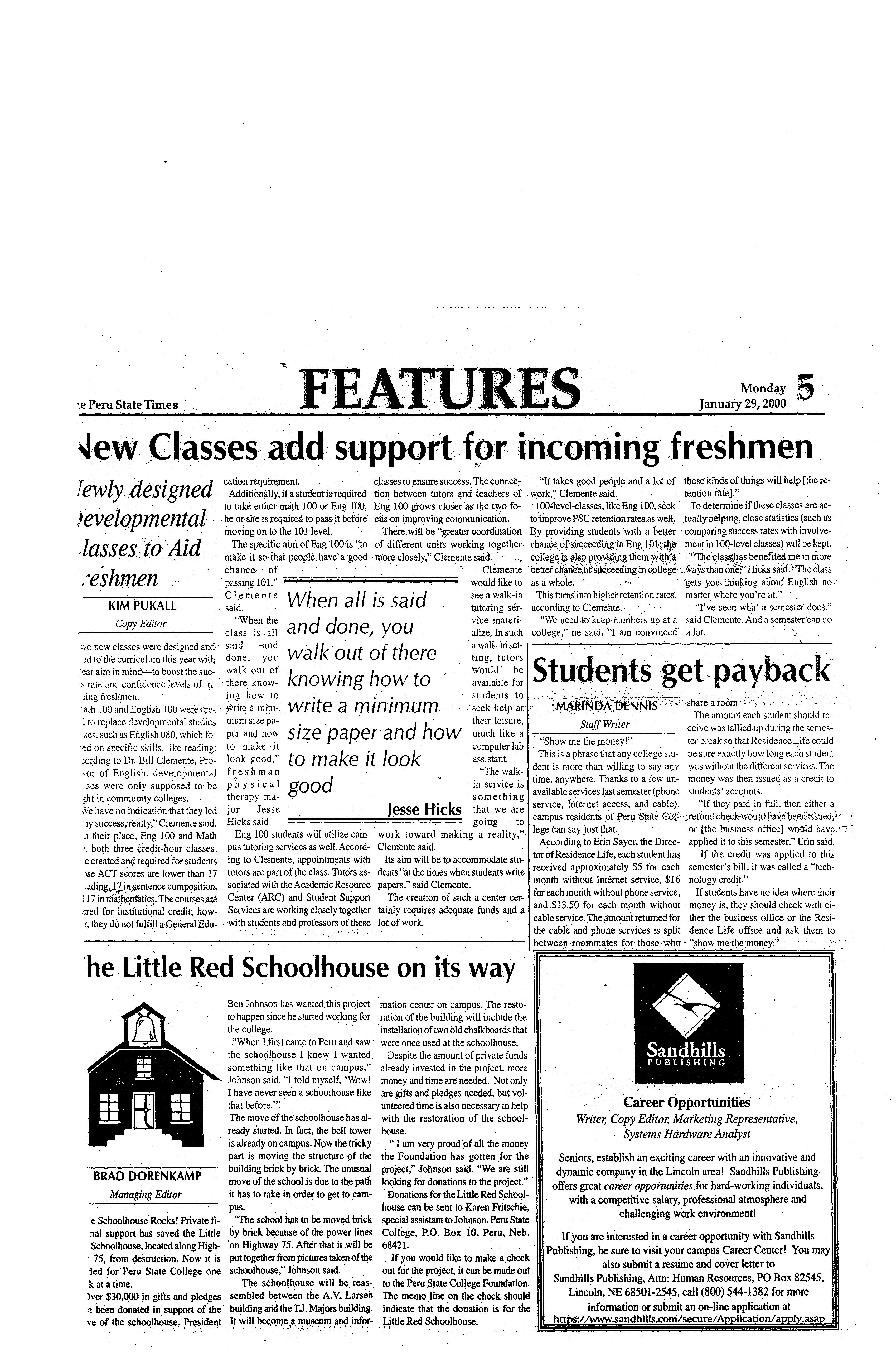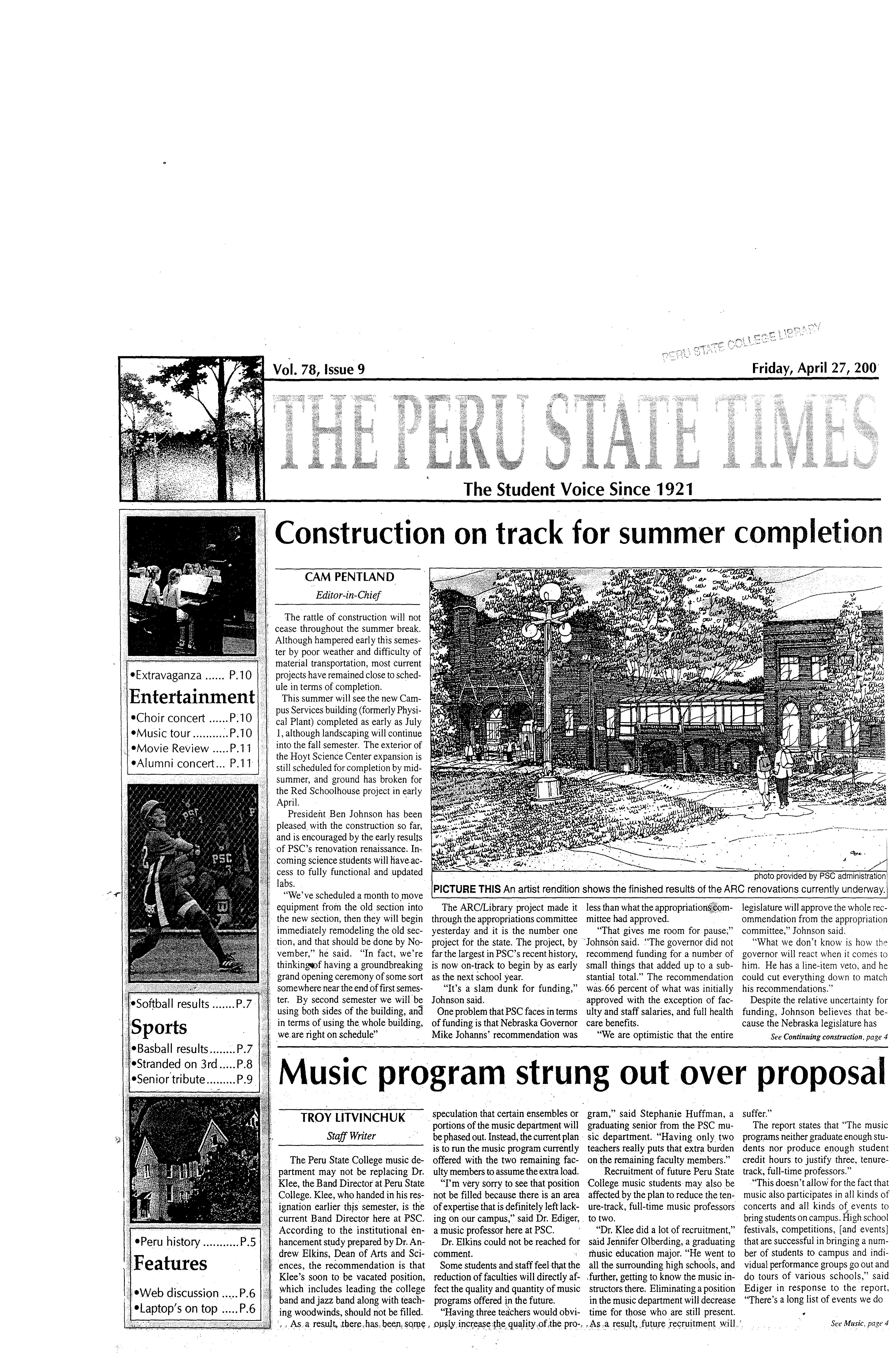 About a year ago, president Dr. Ben about PSC's future, is now commend- and updating the college's buildings J oiµis.on .infprnw4. the Peru State ing the school. for reaching the and are new chalTimes, " It's going to be a whole dif- marks set .in 1998. pSC has reached lenges that PSC wdl face m the next 5 ferent kind of college. The other state some benchmarks faster then they had· to 10 years.
