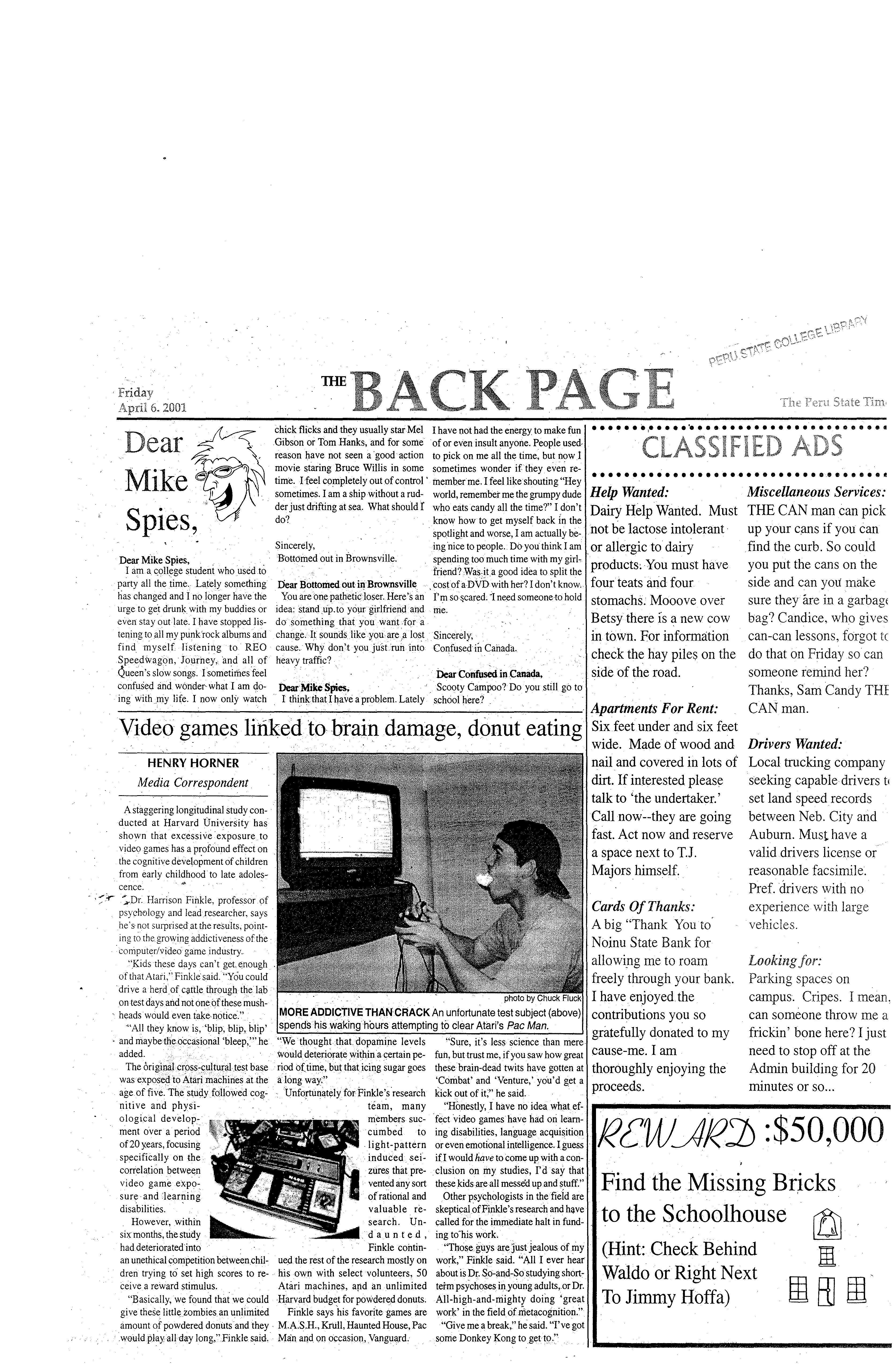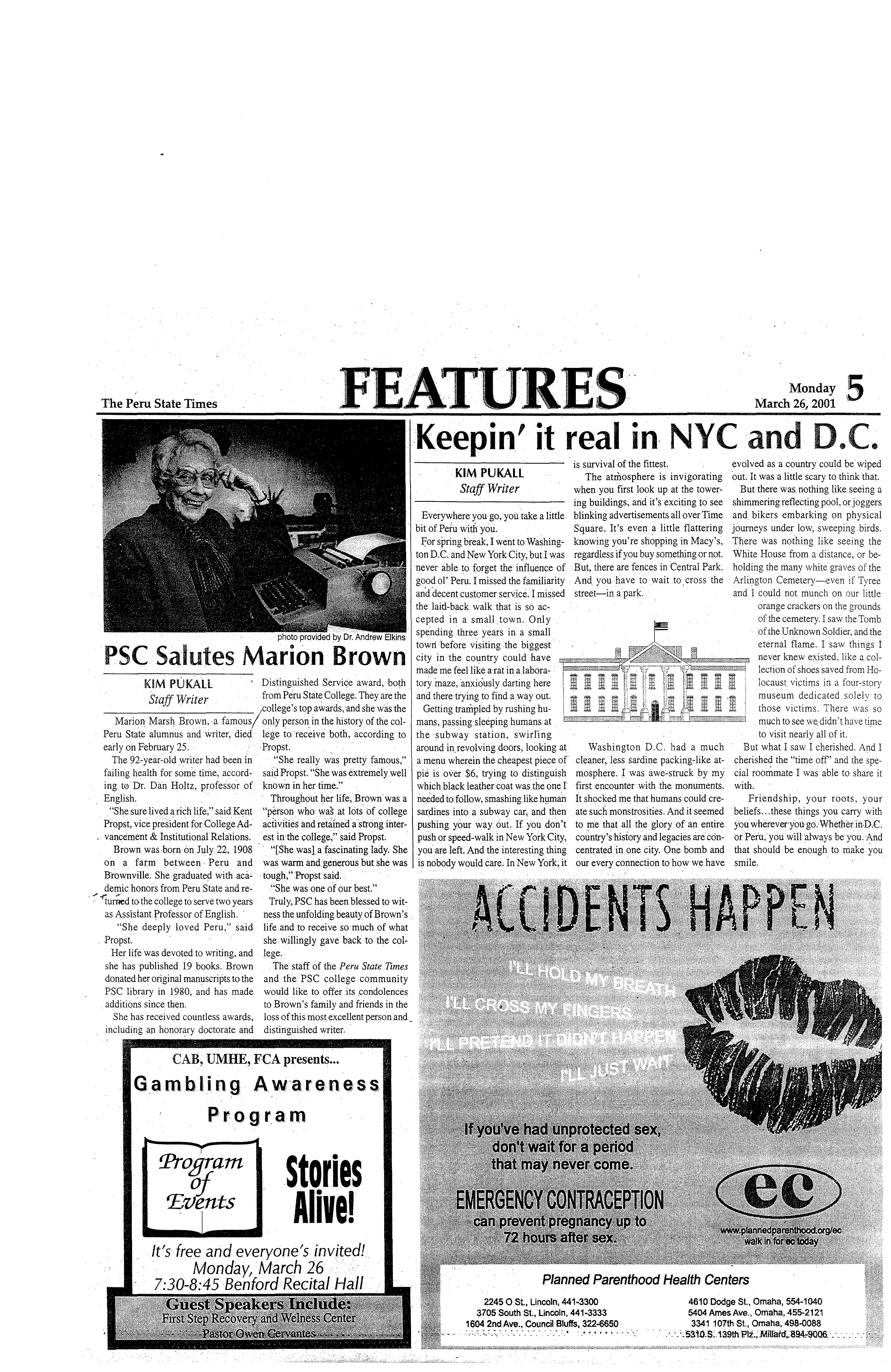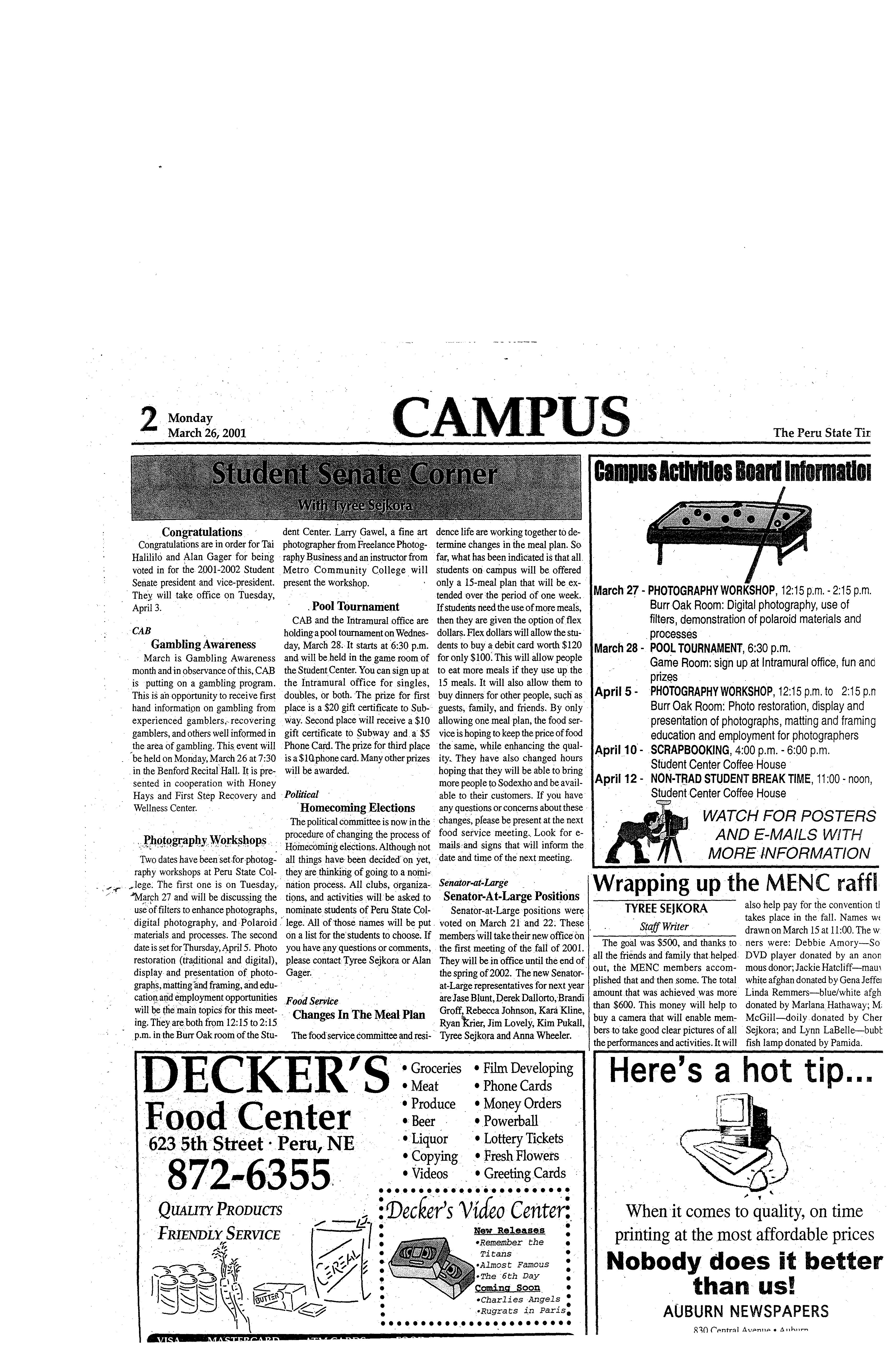 In the April 28, 2000 edition of the Peru State Times, in the article, "50 years ago the book was closed," the Peru State Times reported that Paul Clark Maxwell was to recieve a plaque from Peru State College. The · plaque was in honor of his ·father's• contributions to the. schooL