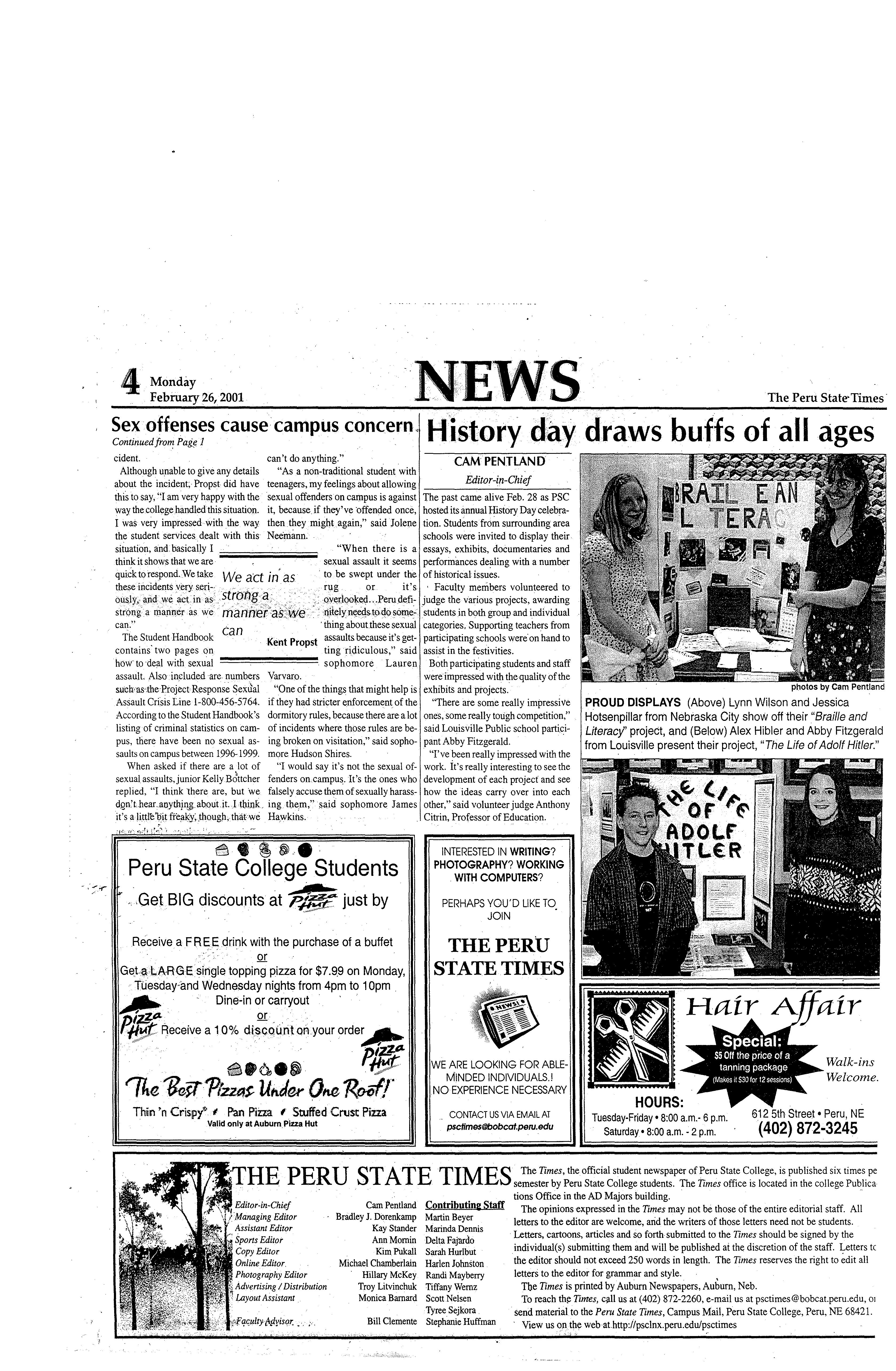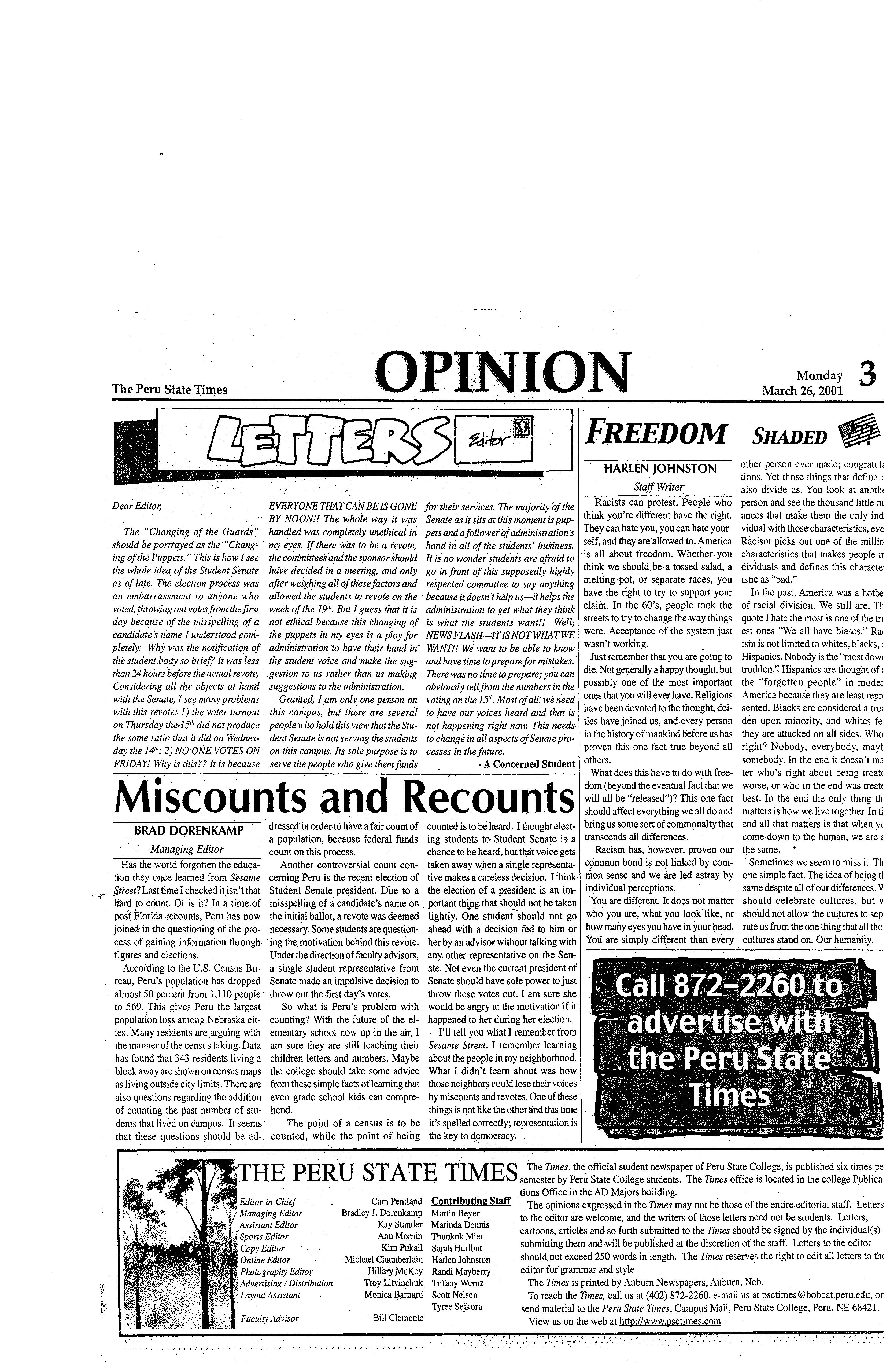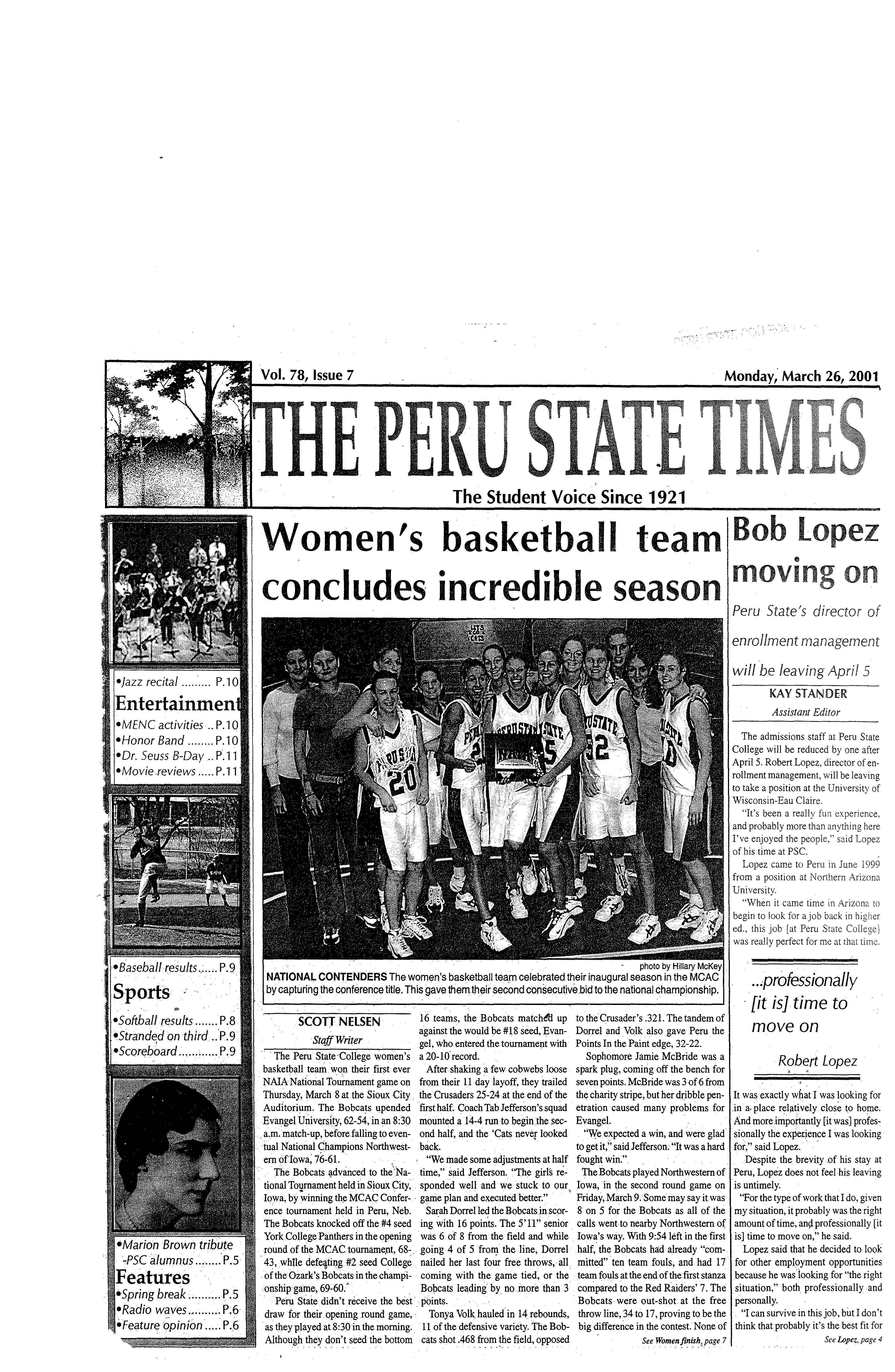 Bilf Clemente Martin Beyer To reach the Times, call us at (402) .872-2260, e"mail us atpsttimes@bobcat.peru.edu, or