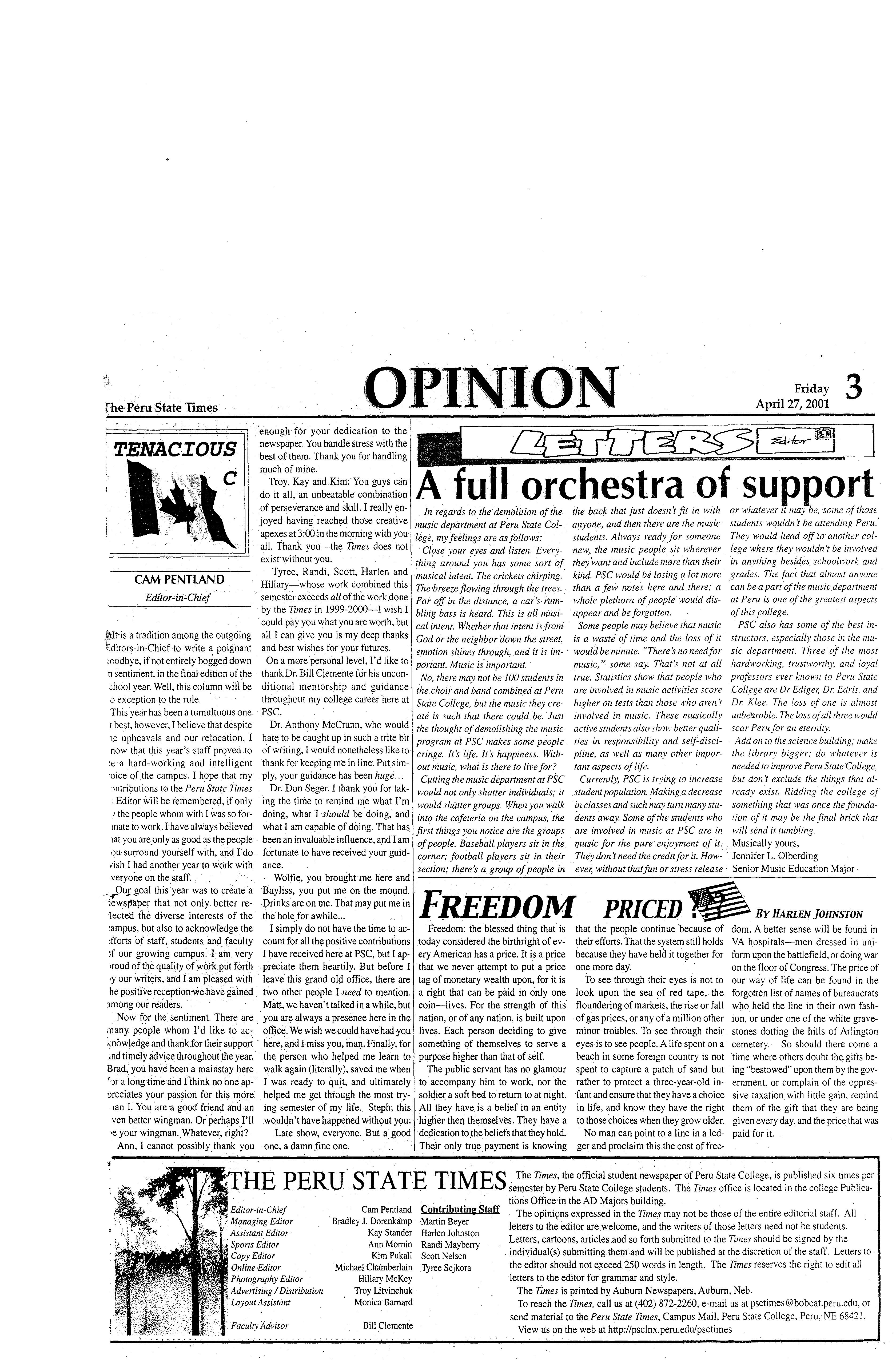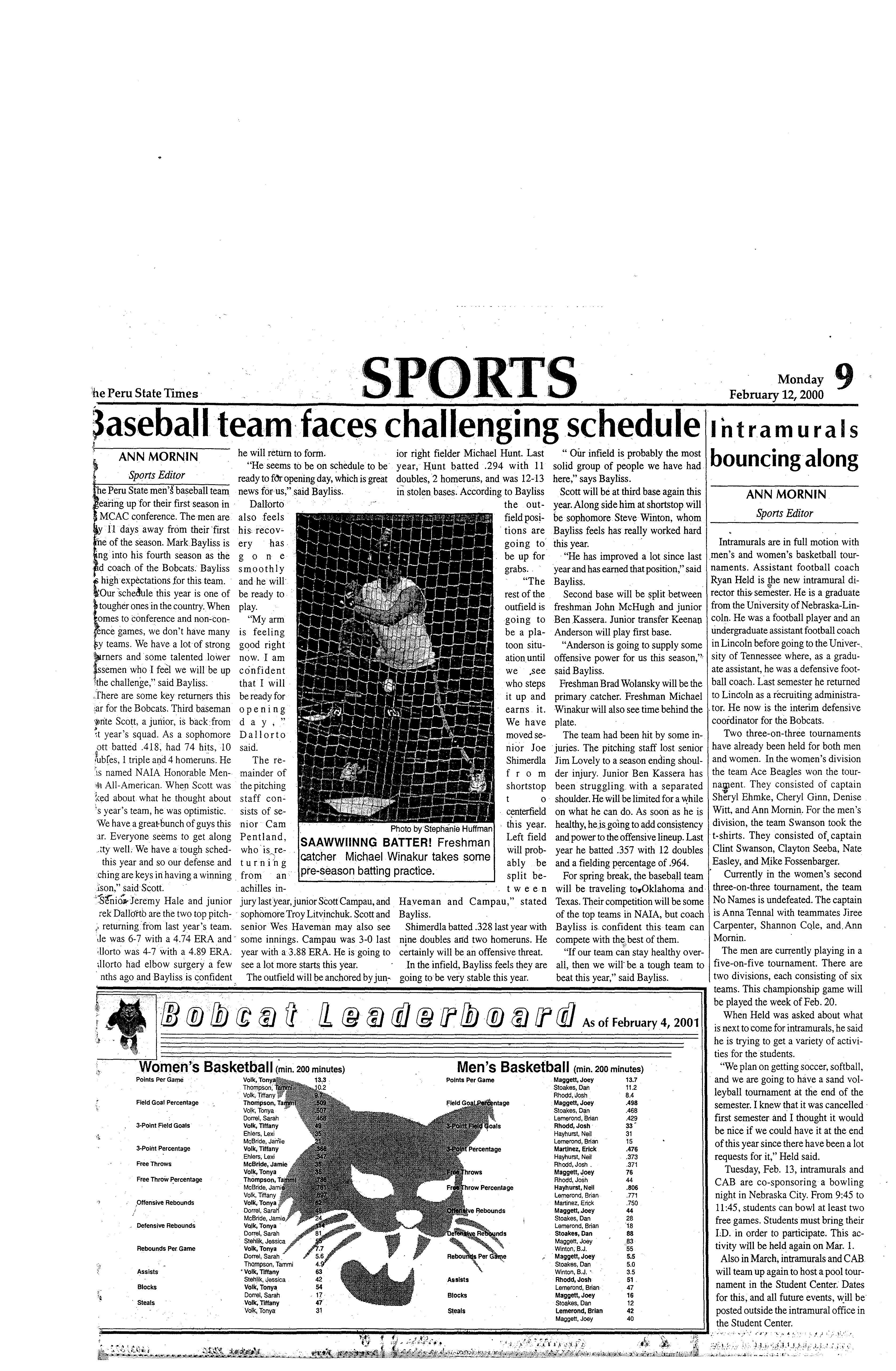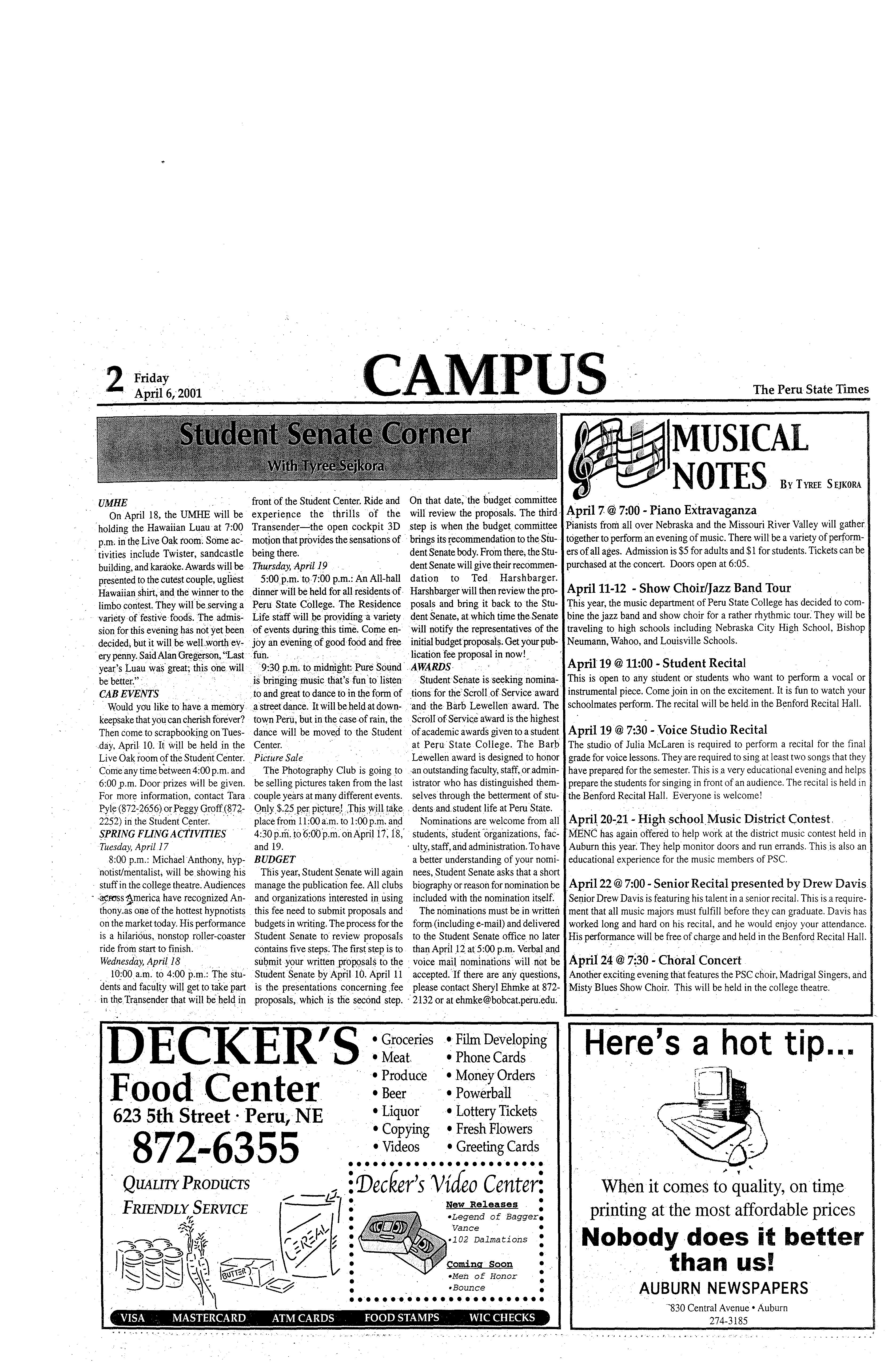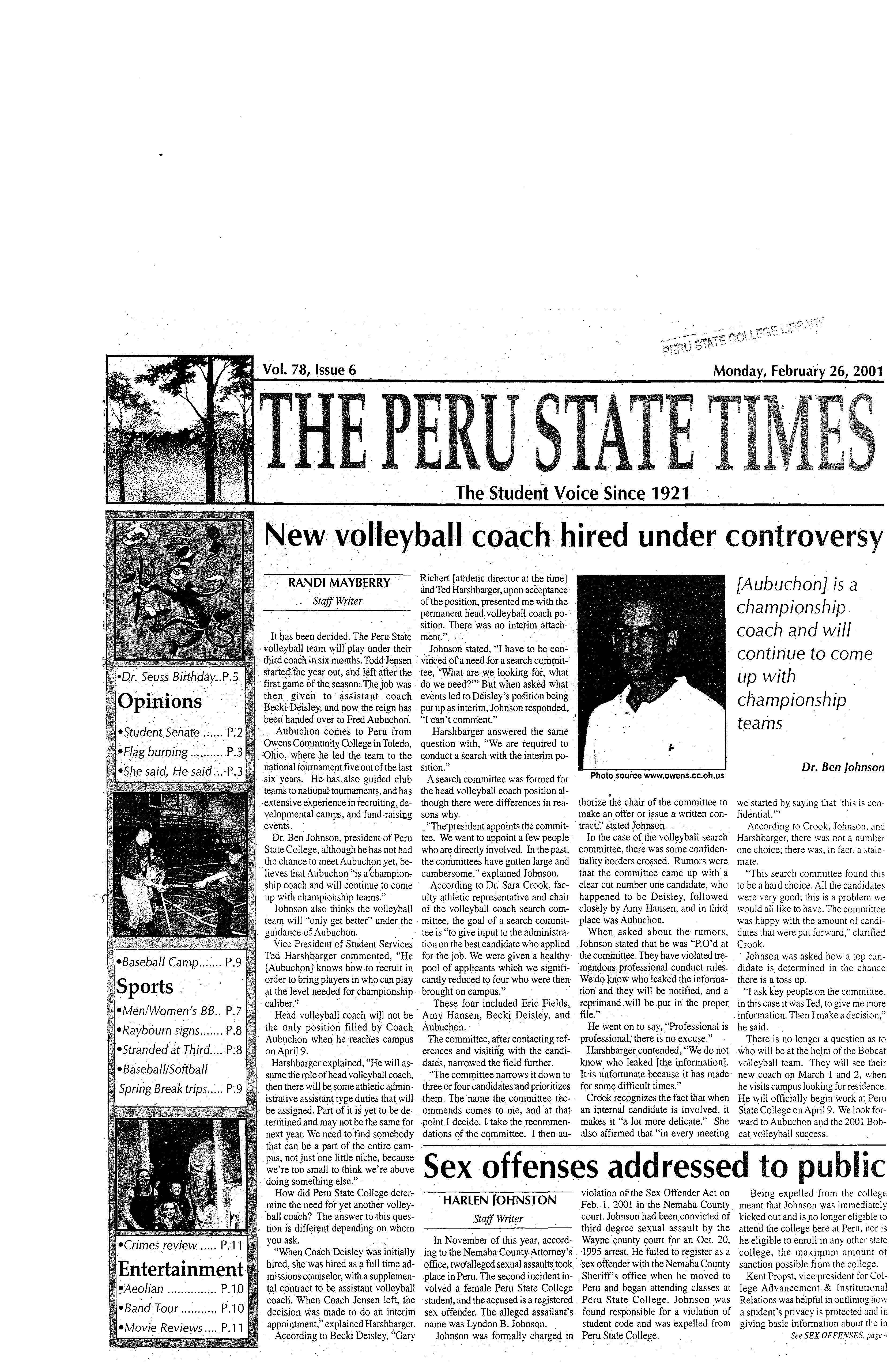 Bilf Clemente Martin Beyer To reach the Times, call us at (402) .872-2260, e"mail us atpsttimes@bobcat.peru.edu, or