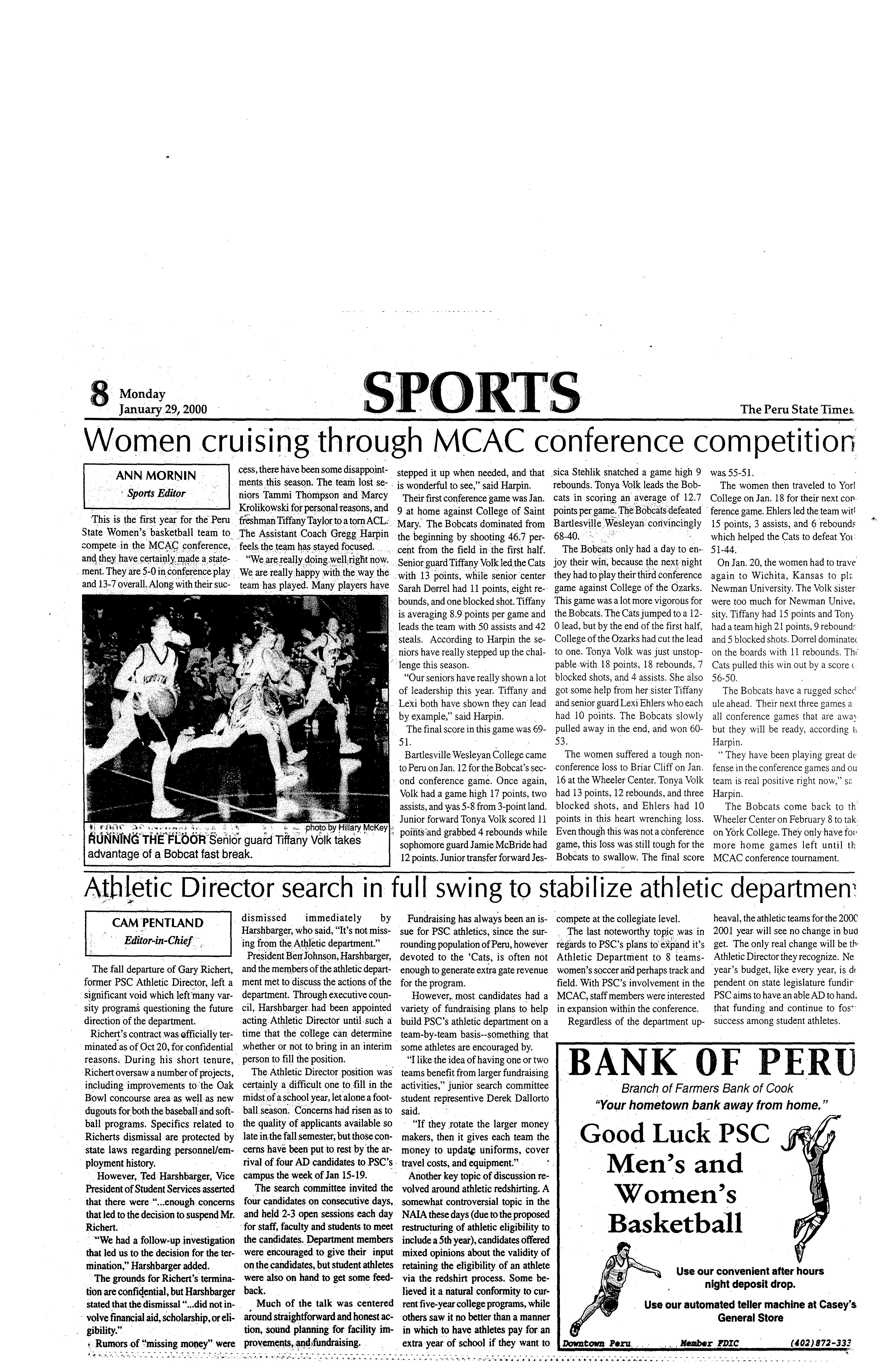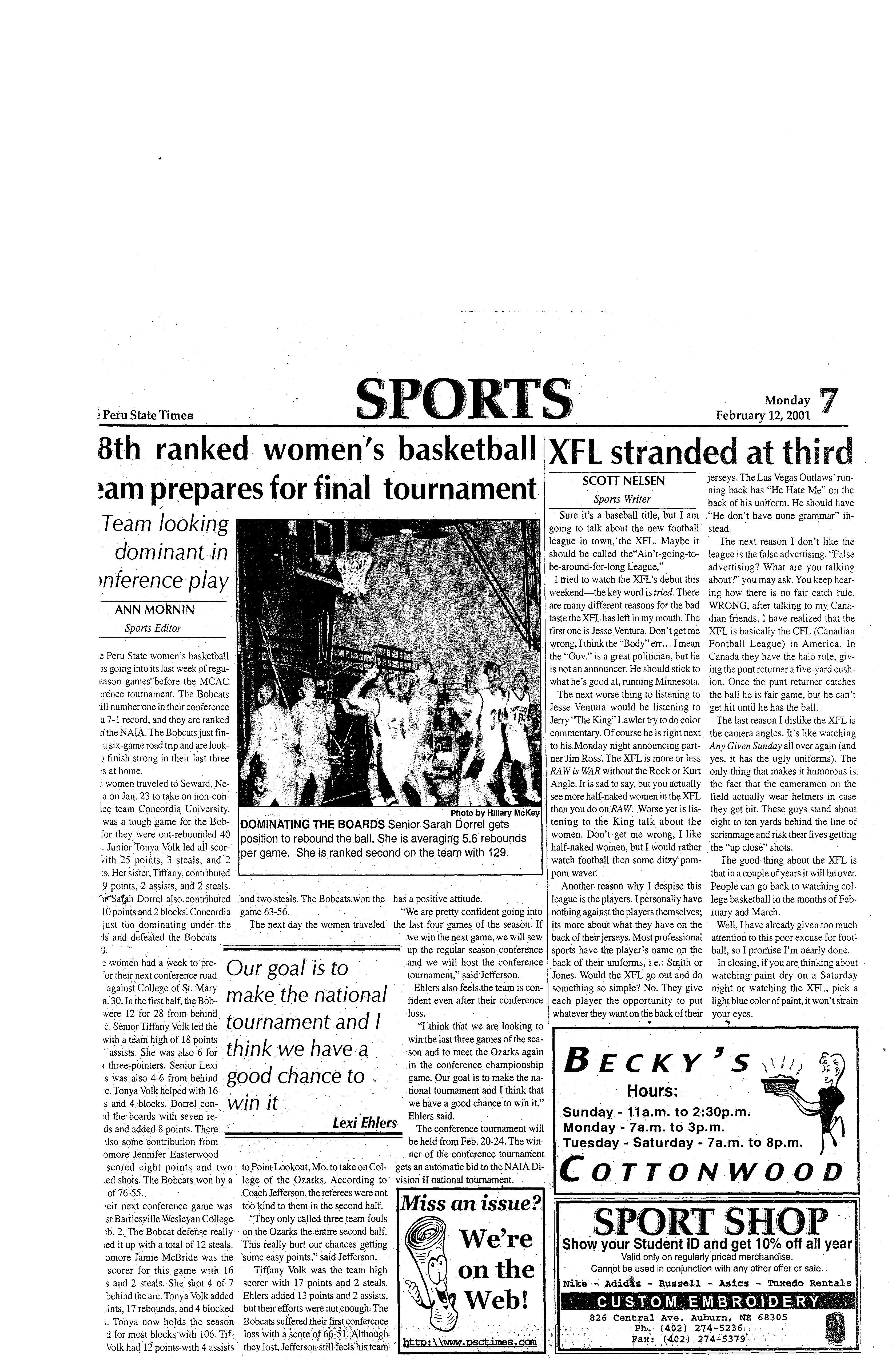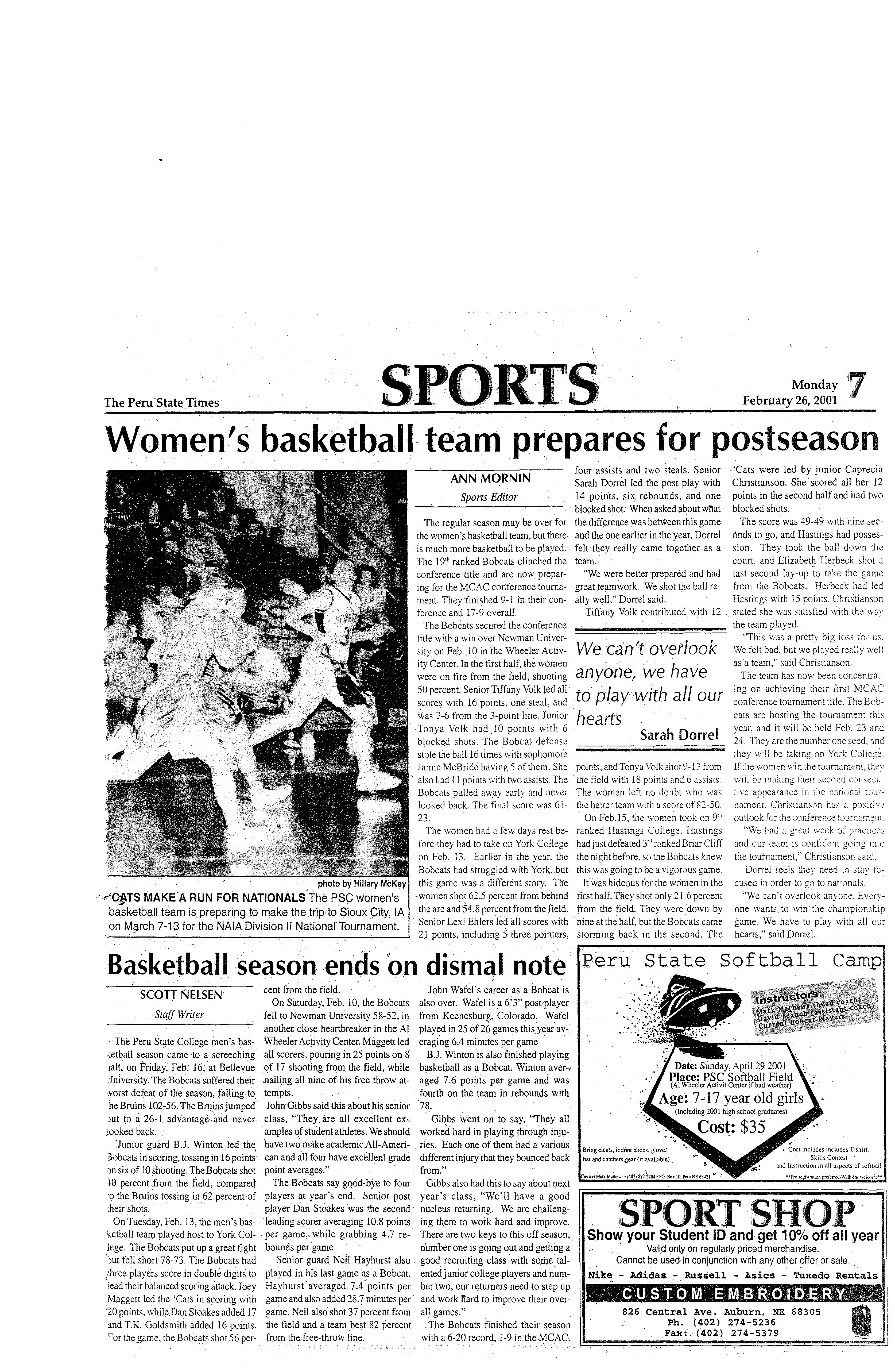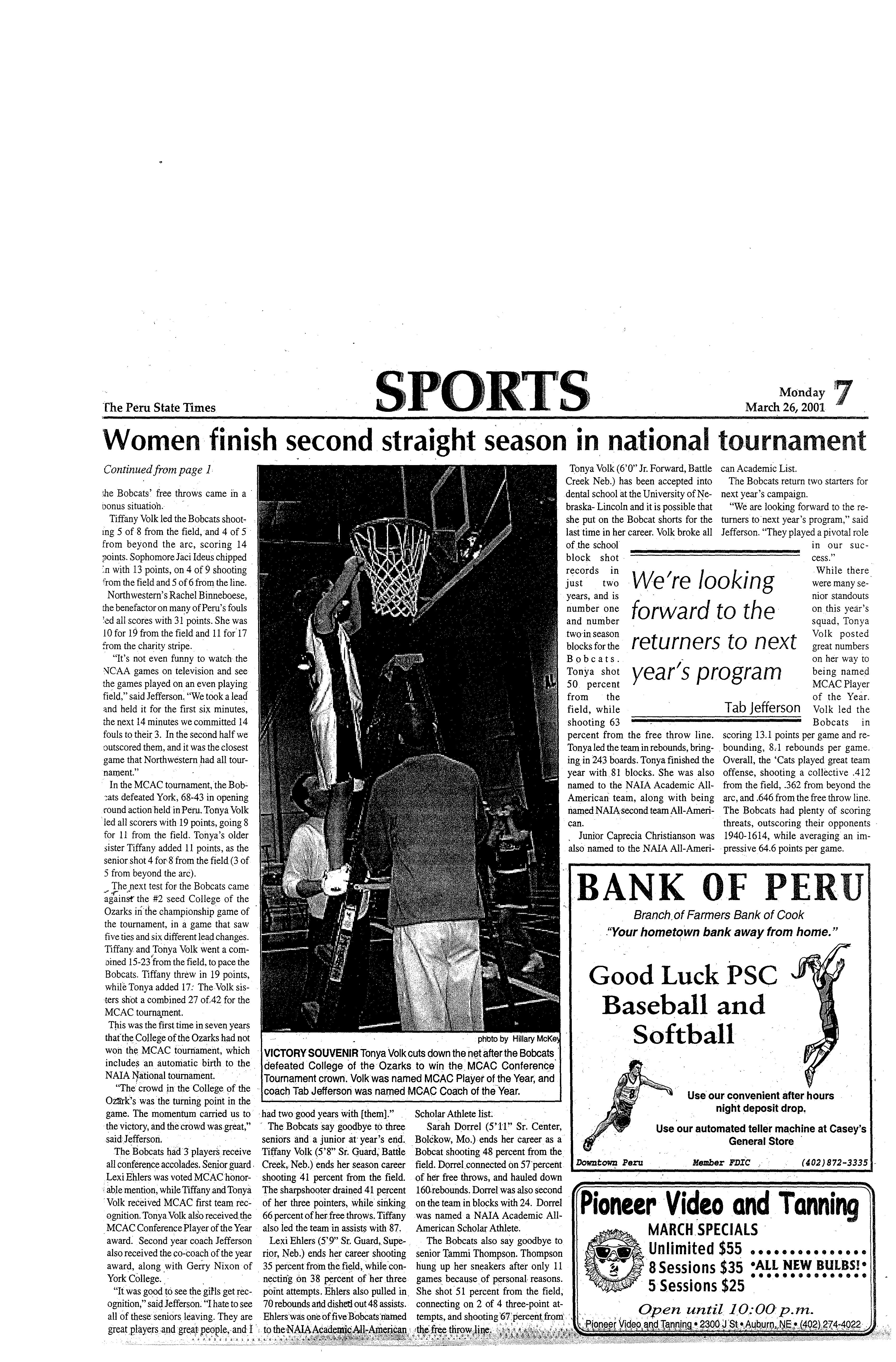 "They provided great leadership. said Jefferson. They were exceptional leaders on and The seniors on· this past season's 0ff the field and brought the attitude squad include Tiffany Volk (Battle hat we are going to be successful," Creek, Neb.), Lexi Ehlers (Superior, ;aid Strittmatter. Neb,), Tammi Thompson (Harlan, , The.2000 seniors consisted of Kyle Iowa), and Sarah Dorrel (BoJckow, Lee (Shelton, Neb.), John Bosco Mo.): Volk, Ehlers, and Demel were (Bakersfield, Calif.), Darin Garfield named Academic All-Americans, and .(Aurora, Neb), J.R. Reid (Fort Volk was named to the MCAC AllCalhoun, Neb), Nate Armagost (Lex- Conference team. Ehlers was also ington, Neb), Nick Johnson (Exira, named MCAC All-Conference HonorJoe Martin (Glenwood, Iowa), Dave B'ishop (Milford, Neb.), Matt Vashon (LaVista, Neb.), and Ryan Young (Omaha, Neb.).