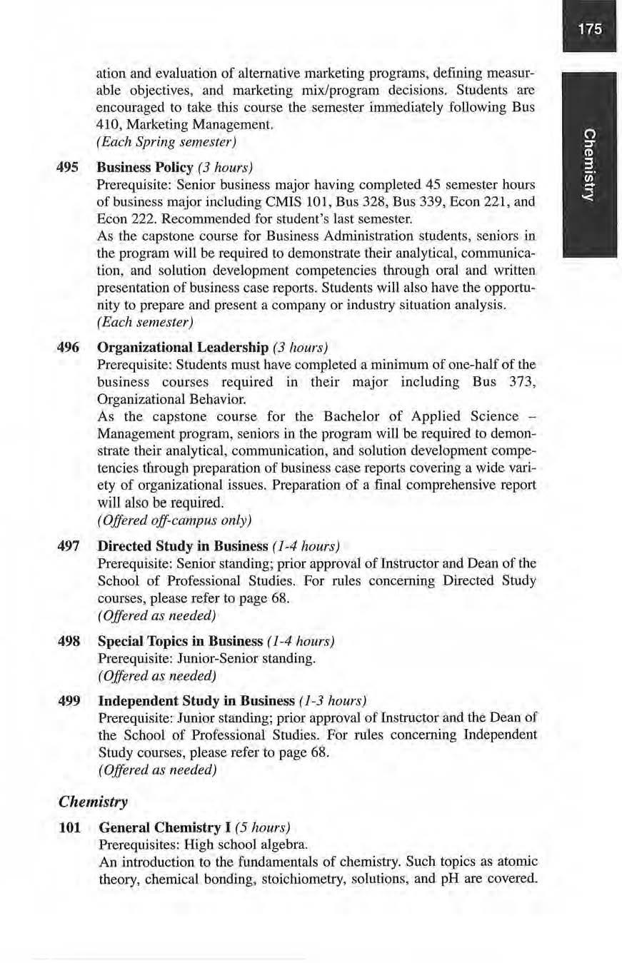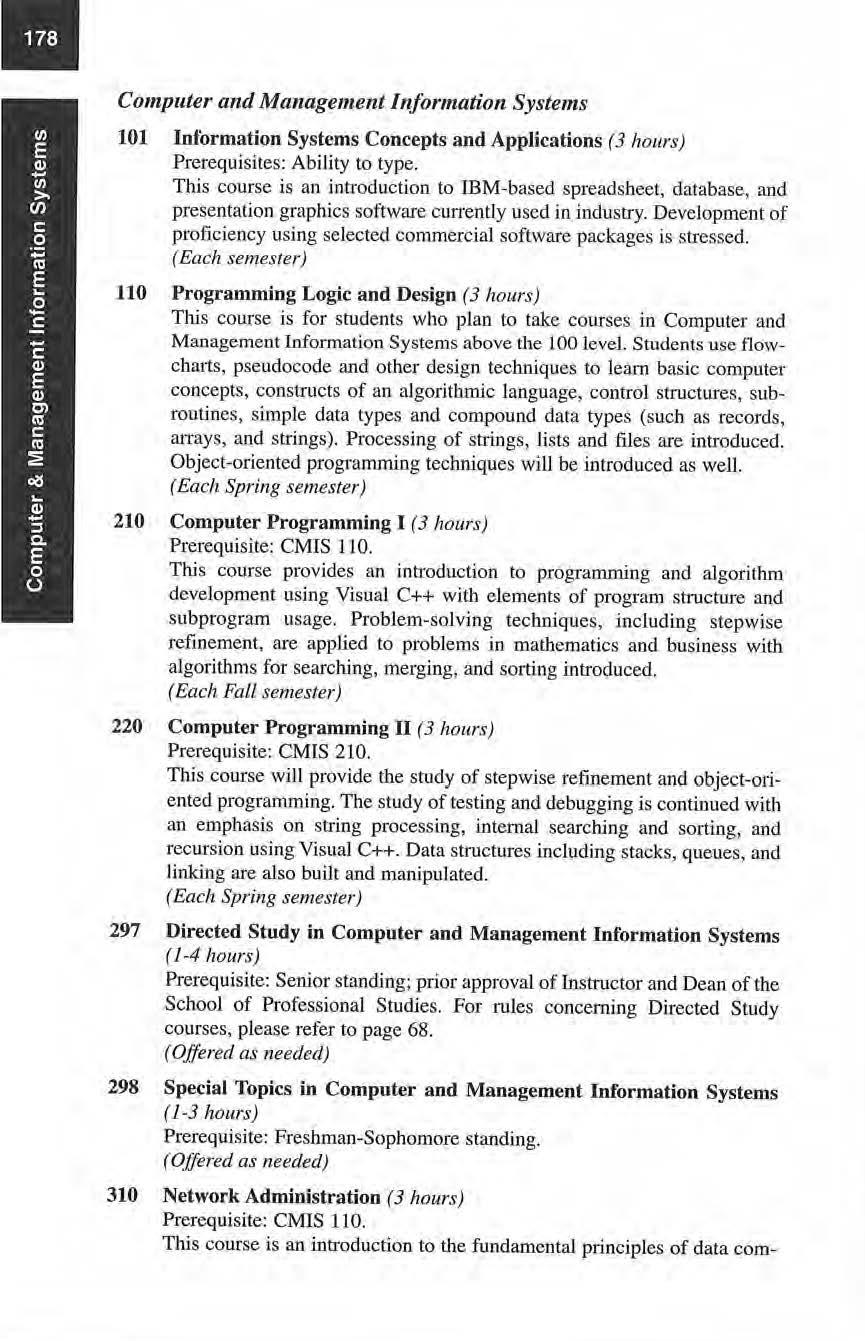I INDEX A Academic Appeal , 70 Academic 8ank.rup1cy • • 70 Academic Calendar , , • , '" , 3 Academic Credit . ..... . ..... . ..........70 Academic Dishones1y 75 Academic Polic1cs, Regulations aml Prooedure• ,70 Academic Probation 77 Academic Progress Standards fo r Pioanci:il Aid , .24 Academic Resource Center , .•.• , •.41 Academic Rights of Srudellls , 51 A\!adcrnic Suspensi on , , .., , 77 Accredhatiou .... ..... . ... ... 1 • • • .7 Admission ., 9, 10, 41 Adm inistrative Officers .236 Administrative Withdrawal/Drop ..•. • 78 Admissions • Ce_ocral £nformadon , ,9 Admission of Non- High School Graduaies 12 Admission lo Advanced SIBnd iog JO Admission Require ments and Processes (Freshmen) • II AIDS ,56 Alumni Association . . . . . . . . . . . ..60 Anthropology Course Descriptions , I 58 AP C redit , •... 70 Applying for P inancial Aid • 20 Apply ing toF Undergrndume Credit. 61 Armed Services . ....•................ . ....70 Art Course Descriptions ..... . ...... .. ..... 158 Art Major 92 Art Mino r • • • 93 Assessmenl .._ , , , _; 78 Athletics 42 A 1rendance and Scholastic All'it11dc 79 Aud iting a Course ..... • .... . . . .. ....... , ..70 B Bnchelor Degree Progrnms Bachelor of Applied Science Bachelor of Arts , , 61 62 ....61 'Bachelor of Science 62 Biology Minor , .11 S Biological Science Course Descriptions l 61 Bus iness Administration Ccrtifica,tes . • . • . . I52 Busi ness Adminislration Major • 153 Business Course Descriptions •. •... 167 C Campus Mup • 8 CcnifkateProgrnms 6'2, 88 ,98. 145, 152,157 Cenifica lion , , , 14, 15, 80 Chungc of Advis()r , • , • 79 Ch~ngc of Major 80 Change in Regi!lralion/Drop-Add •. 80 Chemistry Course Descrip1i o11s • 175 Chemistry M inor , 115 Classification of Students • • 80 CLEP , , , , .7 1 Code of Couducl 52 College Courte Descrip lions I77 College JOI and College400 Course Descriptious ,6 7 College and Public Services 60 Complcmeolary Degree Emphasis , , 64 Co111pu1cr and Munage111cnt Information Systems Course Descriptions ..... . . . .. .. . . .. . .. . . 178 Computer and Management lnfom1at.io11 Systems Major , 150 Computer .a.net Monngemenl [nfonnaliou Systems Minor , , 150 Consumer Economic Course Description s 180 Coope1-:11ive Educalion •. 66 Coopern tive Education Internship , 64 Counseling and Student Support Services • 42 Course Chall enge , , 71 Course Descriptions ..•.. •. • • • • , I58 Couroe Fees • , ., 18 Credit Determination 70 Criminal Jus1ice Course Descriptions • 180 Criminal Justice Cert.ificaie , .. . .. •• . ........157 Criminal Justice Major • 154 0 DANTES • ,7 1 Dead Week . . .. , . . . . . • . . . . . . . • . . • . . . • . . . .80 Dean ·s List .. . . .. ......... . . . .... .. . •. ... ,80 Degree Appl icarlon , , , 64 Degree Progr~ms 87 Degree and Progrnm fn form&tion ..•.61 Degree Requirements for Bachelor of Arts and Bachelor of Science .......... . . . . . . • .62 Degree Requiremcms for Bachelor of Applied Science , 63 Degree Regu lations , 64 Degrees , 61 Directed Electives (Olfun Program) , 66 Dfrected Study ................... ... .. .. ..68 Disciplinary Procedures , , , , ..55 Disctimi na!.lon , • , •... • ..• 56 Distance Education , •. , 66 Donnilories .............. , .• , •. , .•.• . •.. .45 Drama Minor . . . .. ...... , . ... , .. • . • , , . , .. .87 Drop/Add P,occdure ... ...... .... . . , . . . • . .,80 E Early Einlry • • 7 L &nit Science Course Descriptions .183 Economics Course Descriptions , 185 Education Course Descrip1jons . ... •.. , . . . . , .186 Education and Graduate Schoo l Ccrtifi c;tte.s • 145 Education Major 134 English Course Dcscriplions • , 193 English l 00 67 English Mujor • , 95 English Minor 97 Entering Frc.~hmen , . 11 Ex.penses and Financial Aid To il.ion • 18 Extended Campus ..•. , 66 F flacuhy , .• •. •. ..•235