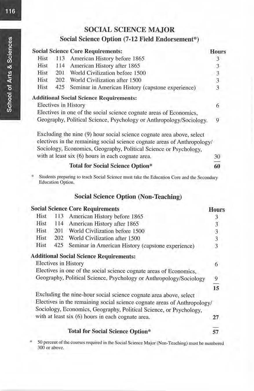 I Pre-Physical TI1erapy ,, J24 Pre-Physician Assis tant , , , 124 Pre -Podiatric Medic ine , • I 24 Prc- RadiatiM Science Tec hnology , ..... , .. , .1 2S Pre-Resp iratory Thenipy , .• , •. •.. , 125 Pre-Veterinary Med icine • •. ., •. 125 Proba tion , , , , 82 Professional and Social Organizations .48 Professional School Residence Credits • .. • . •. , .63 Psychological l'mb lcms Policy . . . , ..... . ... . ,57 Psychology Coucsc .Descriptions •... , 223 Psychology Major , , 156 Public Health Services , , .47 Purposes of the College ., , , , 6 R Readmission , • , •.• .• , , 14 Recertification • • , I4 Refu nd Policy . . . . .... , . . , . .... .. , .. , .. 18. 19 Repeal Courses , _ ., 73 Re4uireme11 ts for Financial Aid., , , 2l Residence Halls and Living Accommodations , .43 Residenc-e Hall Regu lations •.. 55 Residcucy Req uire ments • • , 18 Residen t Cred its , , • .63 Room and Board Cont racts , • ..•..... 20 Roo m and Board Refunds •.20 ROTC Course Descriptions 207 s S at isfactory Ac:ld cmic Progress .....2'1 Scholarships , , , 26. 39 Schoo l of Alis nnd Sc iences •. .• , • , 90 School of&J ucalion and Grad unleStudiC$. 128 Sch ool of Professional Stu1lic.~ a • •• • • ••.•••• 146 Seamless Trnnsfcr , , , , , , 11 Second Undergraduate Dcgretl •. • • 65 Selecting a Major , 82 Sen ior Com petencies ....•... , 78 Sexu,1I Assault ond Sexu• I (-lo,·u.ssmem , 57, 5X Social Science M~j or •. ,. .•.. • 116 SQCia l Science Minor . , .. , .. . . . .... . , ..•. ,. 118 Socia l W ork Course Descriptions .227 Sociology Comse Descriptions , • .•.. 22 9 Spanish Course Dcscrip lions , • •• , 229 Special Acad emic Programs , .66 Special Educat ion Course Dcsorip1ions .. , ..... 230 Speech and Drama Course Descrip tions 232 Speech Minor , , 87 Sports Skill s Course Descriptio ns :218 Standards for F immcial Aid , , , , ,24 S1andard ized Examin ation .•. • , • , 73 S1ate,.Fundcd Programs • .• • , .•.•24 SL11c Gra nt Programs , , , • , 24 Student Gr~de Appeal , .•. , 73 Student Services Mission Stotcmon! A I Student Handbook . . . .. , ... . . • . .46 Studcnl 1-lcallh Services . , Stmlenl Govcm mc,ll " .46 50 Studem Grievance Proce du res , , 55 Studenl Organ izations , , , , , .47 S1uden1 Pa11icipation in lns1itu1io11al Government 5~ Student P lanner , , , .46 Student Programs anu S1udc11t Lifo , • , 47 S111denL Publi c;Hions , ,50 Stu<lu111s Rights, f'rocdonts, and Responsibilities ,5 1 Students Seeking an llndorseme111 or Cert ification , , ..•. , , 15 Sludcm Serv.ices , , • , .4l S1uden1 S upport Services , .42 S111dc1i t Teaching , ..... , ...... .. .. .. , ... .. 133 Students with Disabilities , , 58 Summer Session , , , •. 69 Suspension , •. , , , 77. 82 T Table of Conte nrs 2 Te"cher Ed11cn1ion , , I 28. 130, 134 Tcohnical Degree 8n1ph~sis , .64 Total Degree Mours . ... ........ . .... . . .. . ..62 Transcripts • , • •. 82 Transfer of Credit 10. 75 Transfer Swdc111s • .•... , 12 Trnnsient Studenls , • , , , 14 Tuilion , 18 1\1i1iou/Fees . ....... . ... . .. . ... .. , . . .. . . . . 18 Tuition Refunds .J8 1\vcuty-Oue Hour Ru ic , , , 77 u Undergradu ate Degree a nd Program Information , , , 61. 65 Upper Division Credit .. , . •. .... . , .63 V Variable Credit Courses • ••. • •. .• • 75 Varsi ty Spo11s Cred its , • , • 64 Vehicle Registration snd Parking 59 w Walvc r • Academic Appeal , • • 83 Withdrawal from Class . . ... , .. , .... ..... 19. 83 Withdrnwa l from College .•.. l 9, 83 Wit hdrawa l from Reg ul a r Seme,;te.r I9 Withdrawal from Maymcstcr/Summer Session 19 Wlthdrmval from Workshops und Other No n•S tandard Academic Te rms .• .• 19