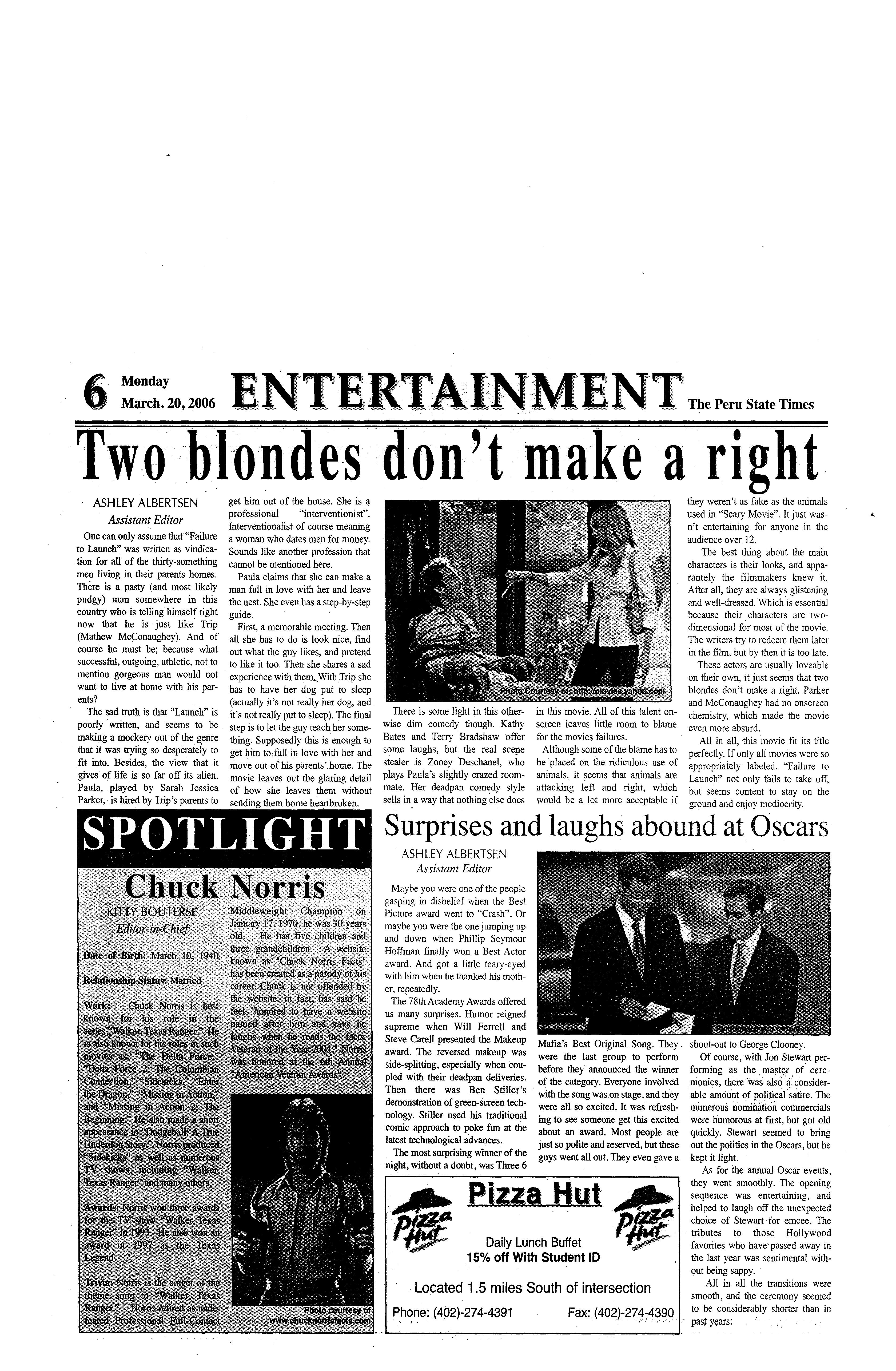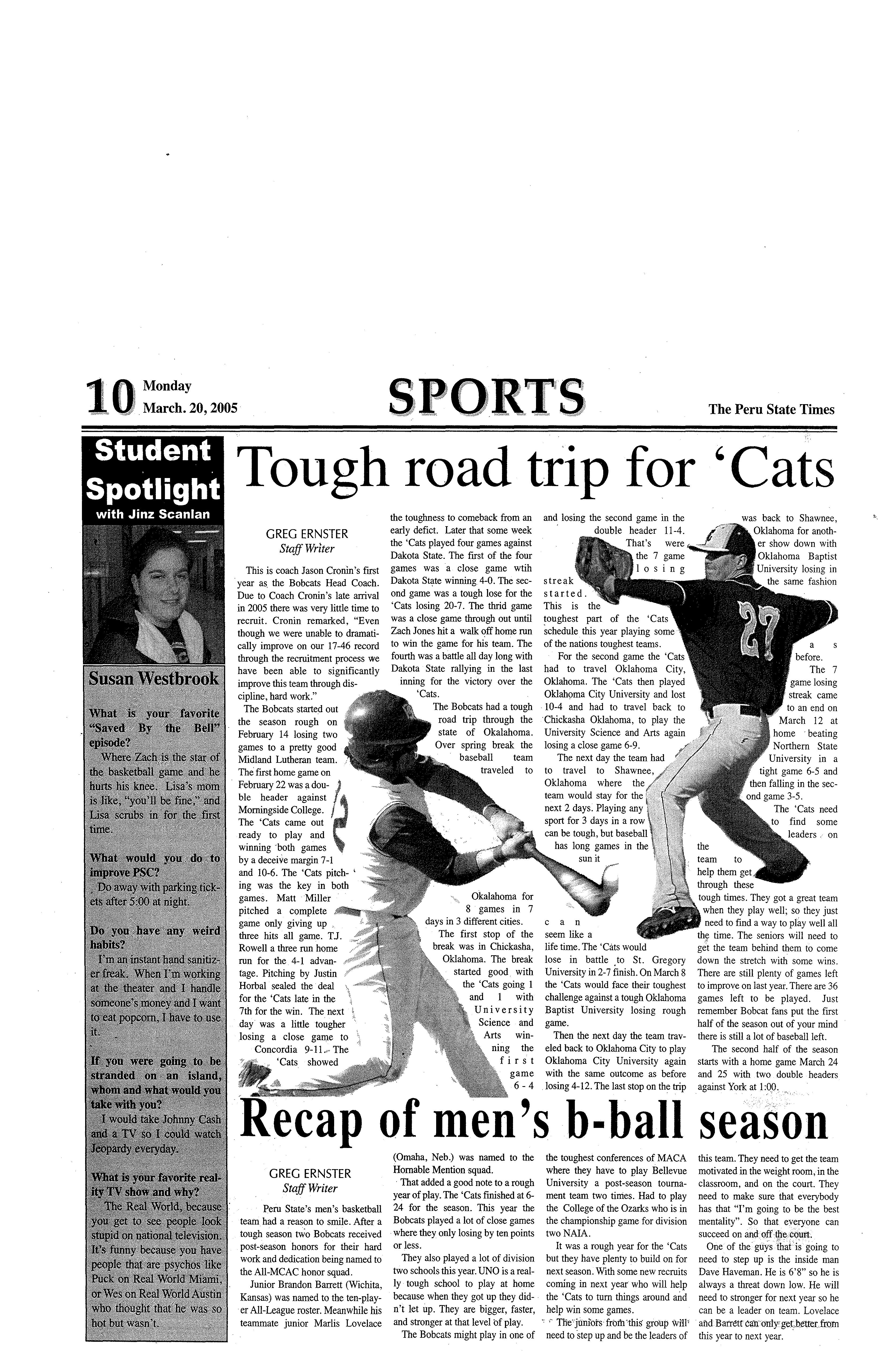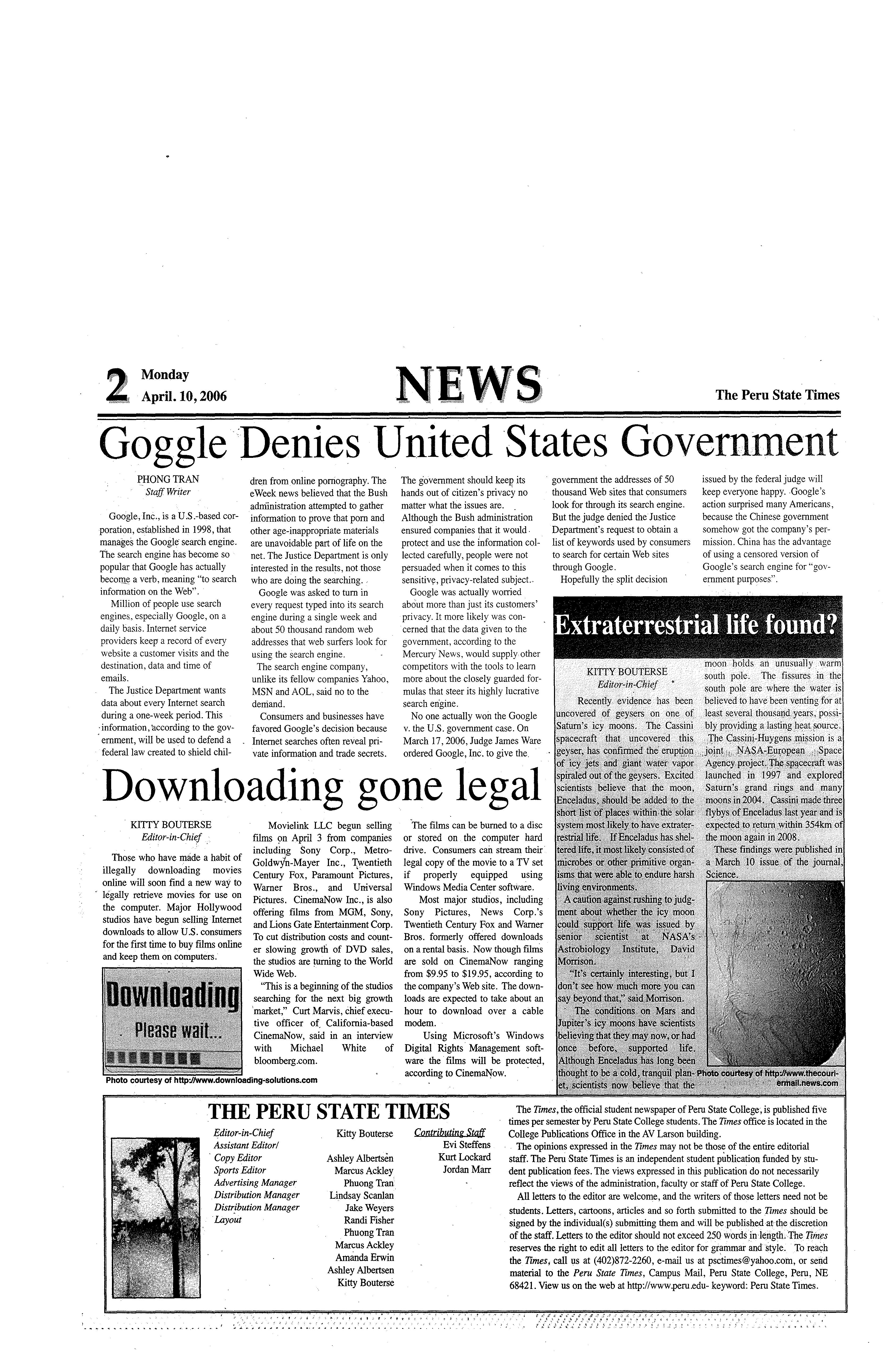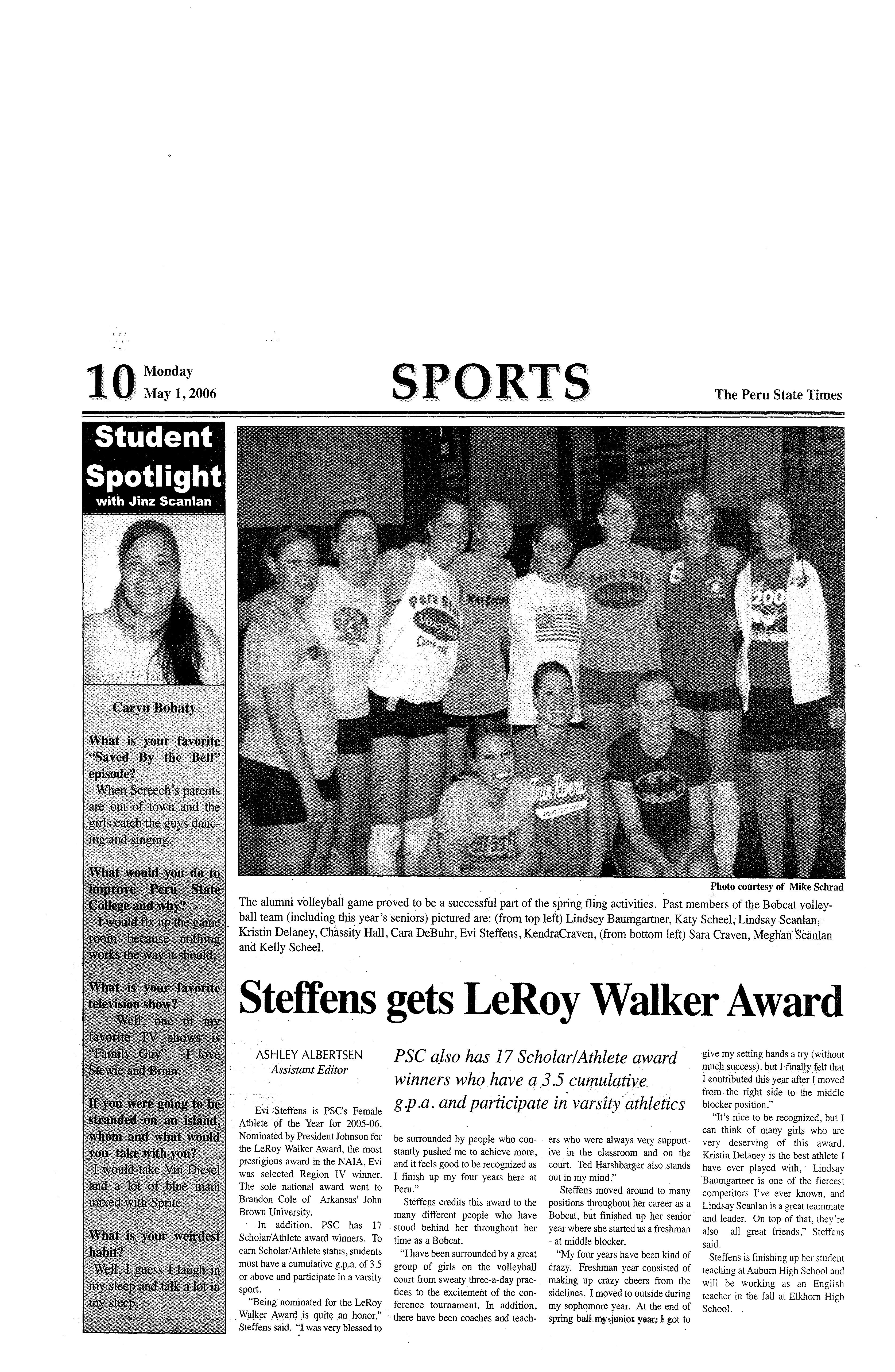 The Peru State Times s. ,., ,,,.,.,,, ORTS Monday May 1, 2006 1