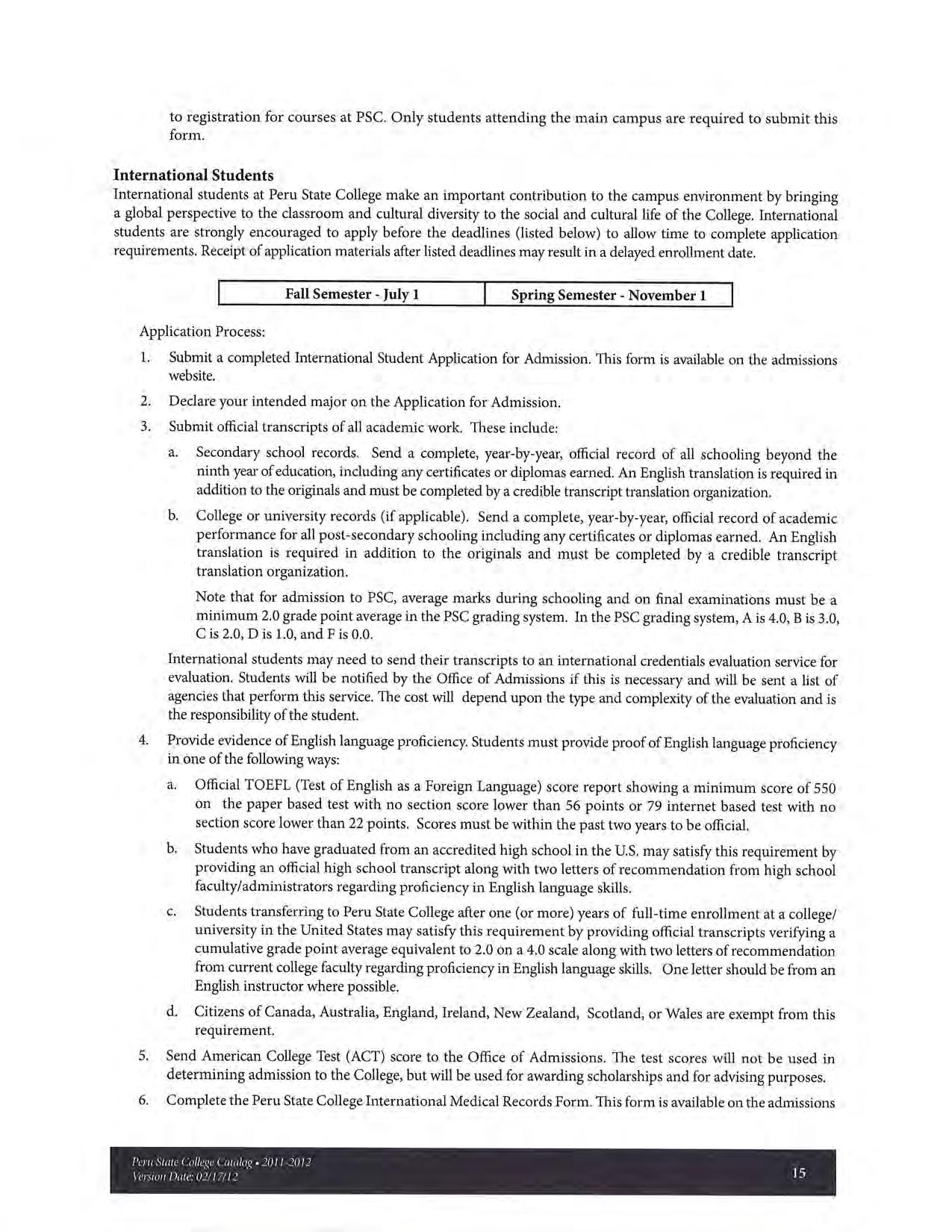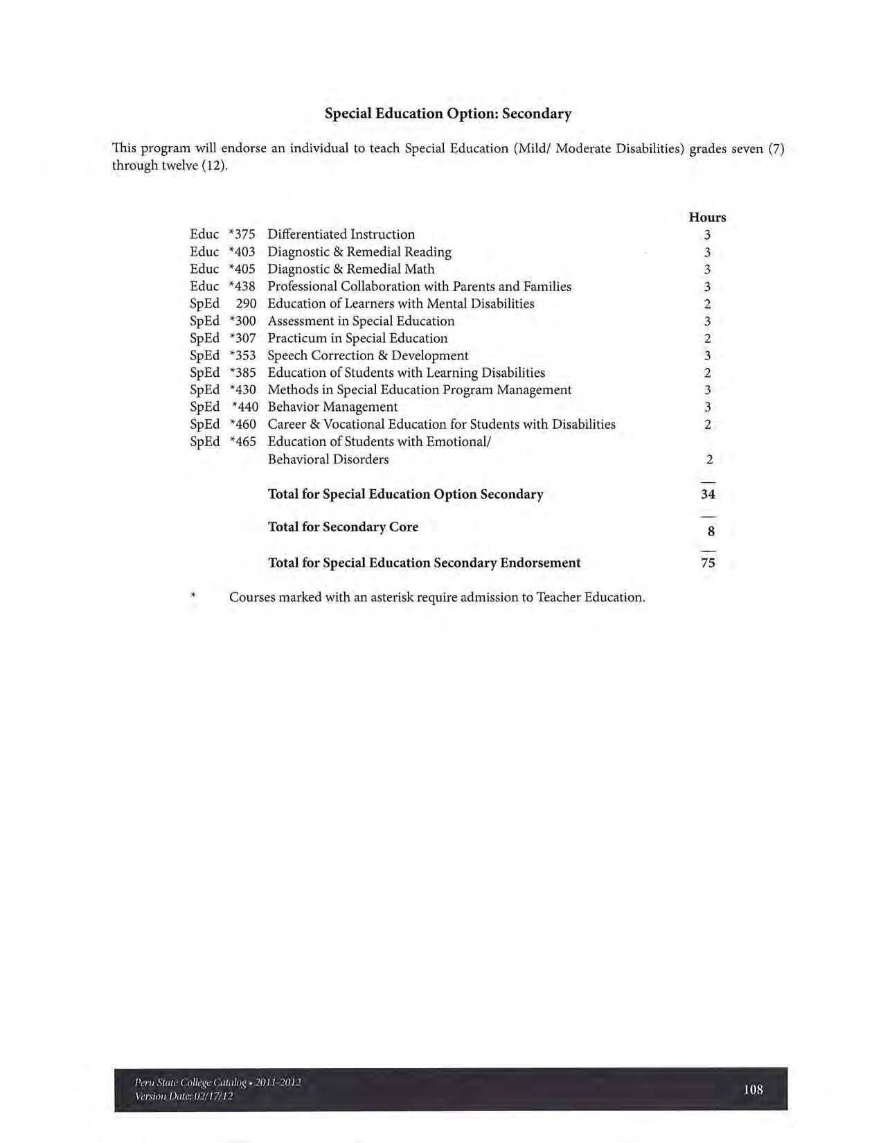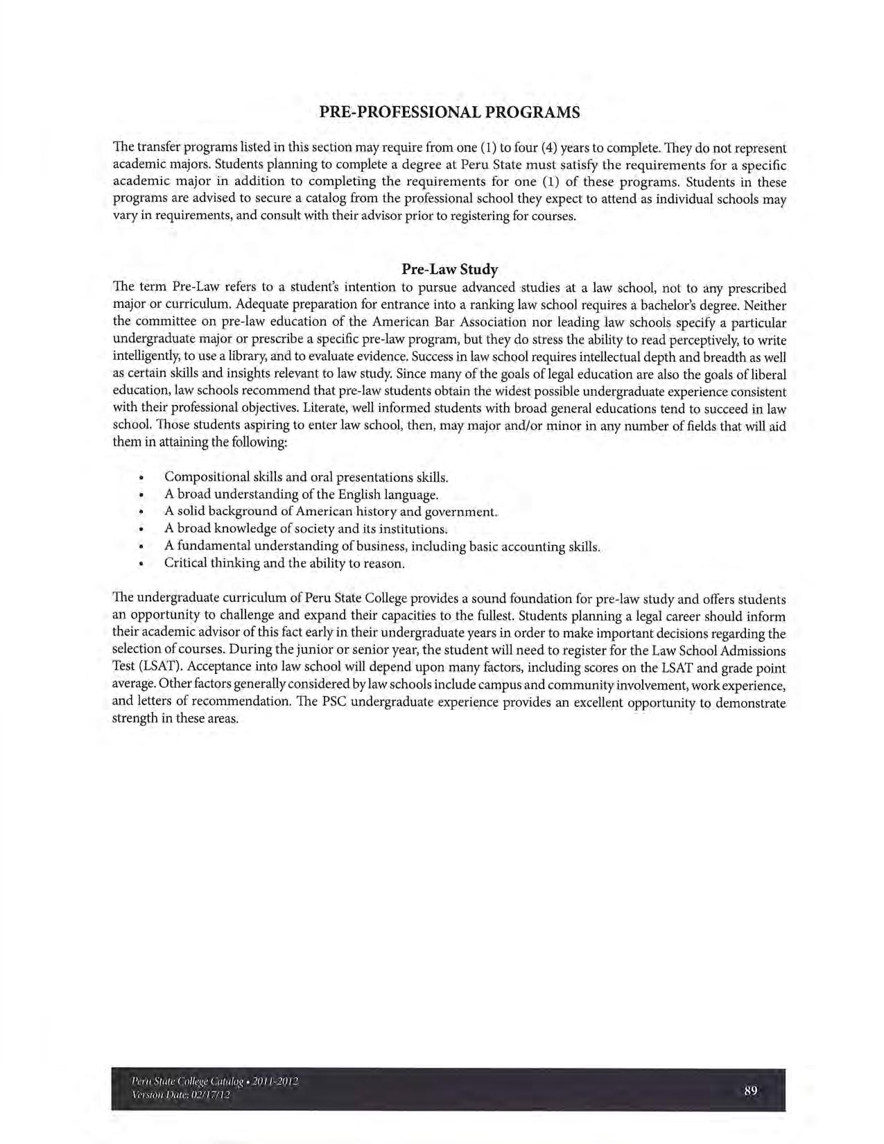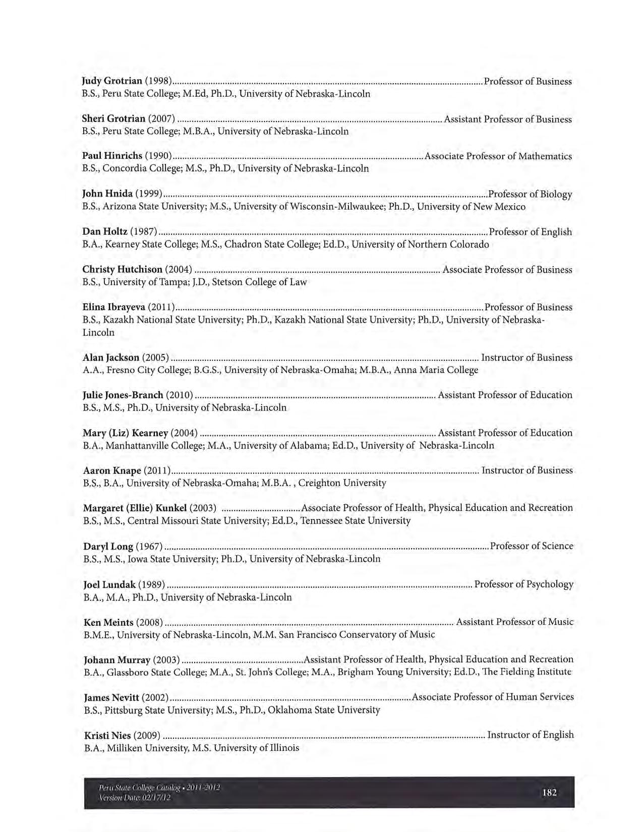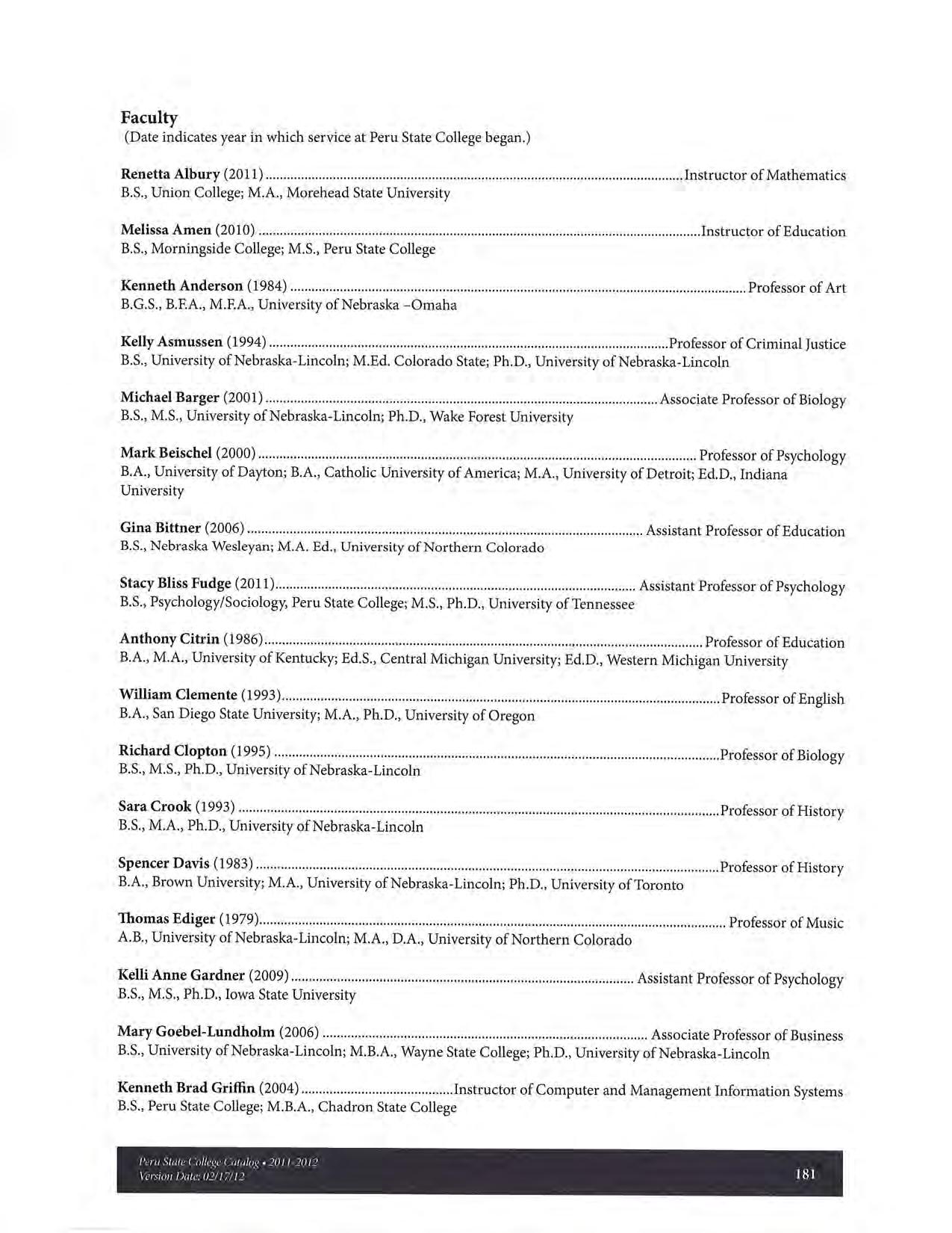 2011-2012 Catalog of Peru State College (Nebraska)