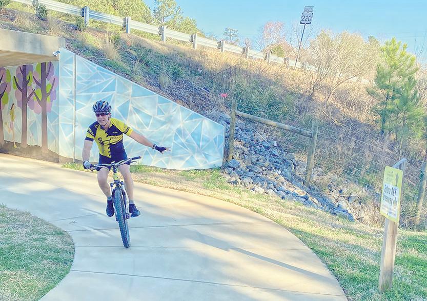 A cyclist exits the U.S. 220 tunnel onto the sidewalk in Summerfield at the starting point of the future Atlantic and Yadkin Greenway running through town. Summerfield Town Council advanced the project last month when it agreed to hire design consultant Kimley-Horn to complete late-stage planning and engineering of the greenway on the southern end of town. As walkers, runners and cyclists exit the tunnel, they will turn immediately left, or south, and follow the greenway toward Lake Higgins before looping through the watershed woodlands back to Summerfield Road, according to a description of the project on the town’s website. From there, the greenway will roughly follow the abandoned railroad bed along Summerfield Road before ending at the Medaris Street trailhead, just north of the amphitheater at Summerfield Community Park. Construction is slated to start in 2024.