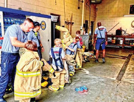 Campers learned about the PPE firefighters have to wear and got to try on the gear.