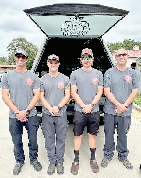 Summerfield Fire District’s Crew 1, consisting of (photo on left, L to R) Greg Ebel, Colton Ide, Zack Hardy and Shane Taylor, departed around 5 a.m. on Sept. 29 on a five-day deployment to assist Nebo Volunteer Fire Department in McDowell County with relief efforts for victims of flooding from Hurricane Helene. A second crew from Summerfield, consisting of (photo on right, L to R) Reece Walker, James Torbett, Chris Gibson and Chase Loye, left for a five-day deployment on the morning of Oct. 4.