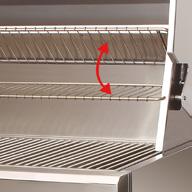 The three-position adjustable warming rack stores up and out of the way when rotissing. Ideal for above-grilling-surface holding and cooking.
