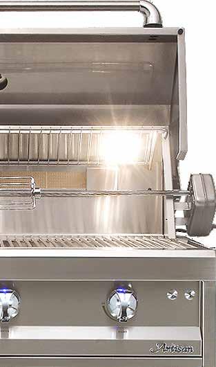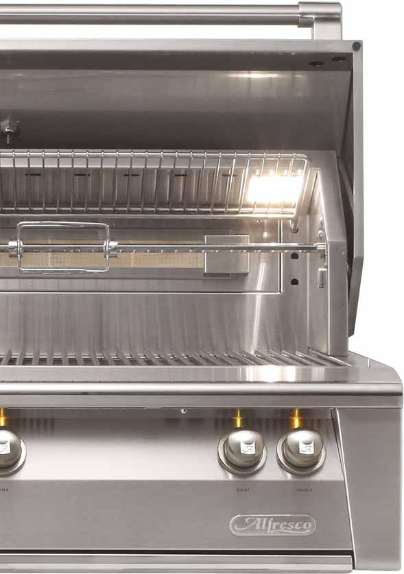 All Alfresco grills come with a flush-mounted 1500° rear ceramic infrared rotisserie burner.