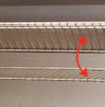 Two-position adjustable warming rack stores up and out of the way when rotissing