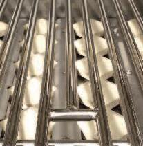 Heavy-duty stainless steel cooking grates with a special non-stick electro-polished finish are positioned over briquette and “U” burner sections