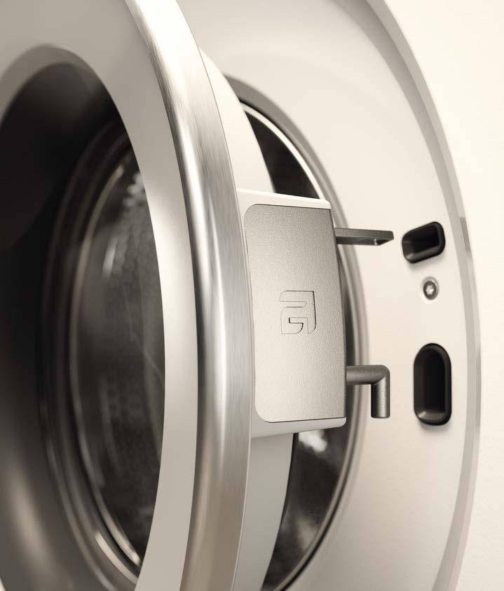 The motorized door lock firmly secures the door to the drum, reducing noise and vibrations.