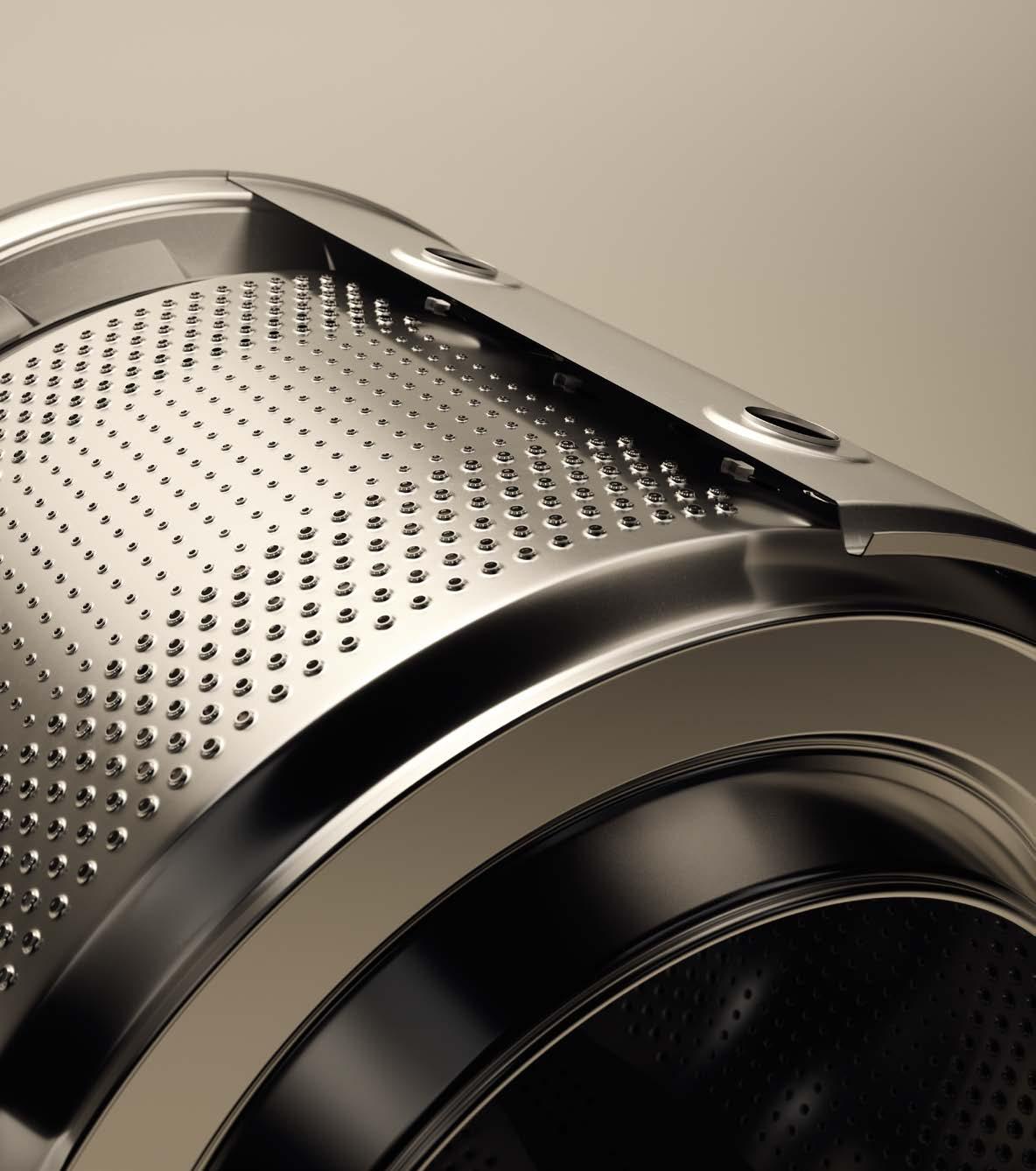 Our unique Active Drum™ design gently guide your garments to the center of the drum, reducing wear on your garments.
