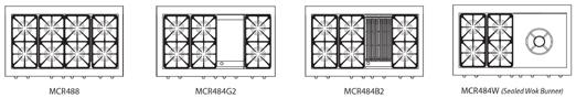 • Four Accu-Heat™ Sealed Brass Burners Rated at 19,000 BTUs Each, Creating Powerfully Consistent Heat (Additional 25,000 BTUs Sealed Center Burner on the MCR305 Model)