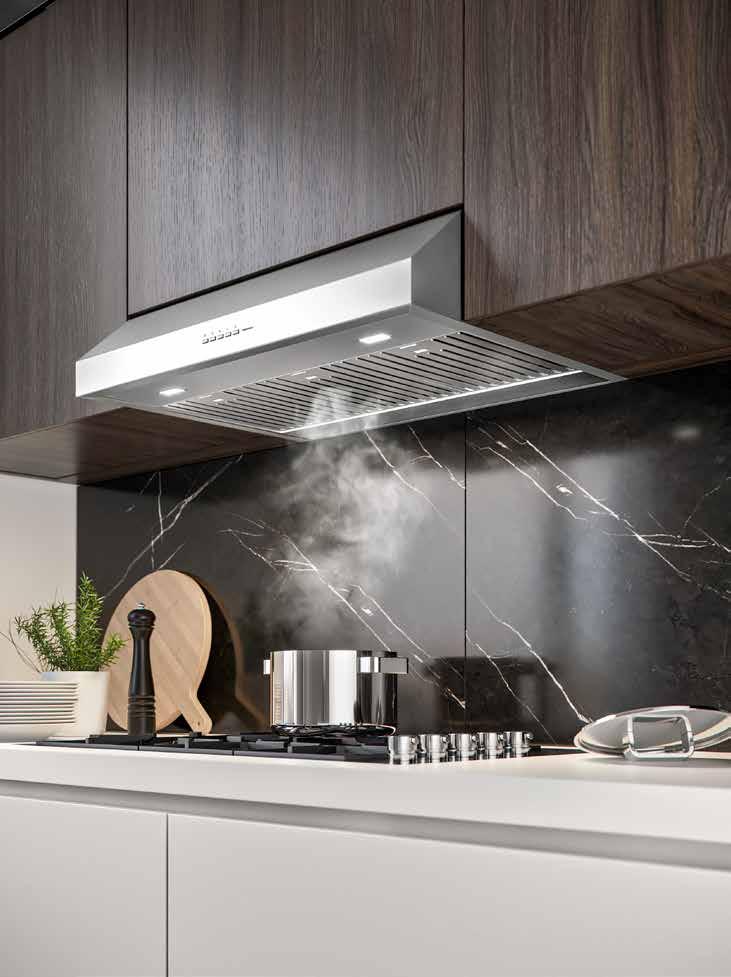 Falmec’s products satisfy all five senses: Smell –effectively moving air; sight and touch – refined design and quality materials; hearing – generates little noise with extremely quiet performance
