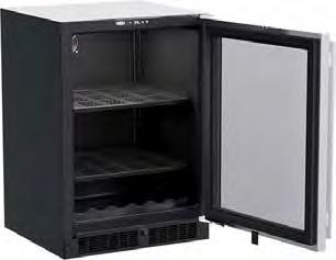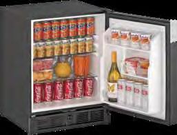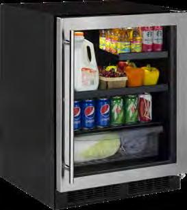 • 24” Model With Door Storage (MORE224): 5.1 Cu. Ft. Capacity, Stores Up to 146 Cans (12 oz); Features HalfWidth Shelf for Tall Items, Cantilevered Stainless Steel Slide-Out Shelf, and MaxStore Bin for Loose Items