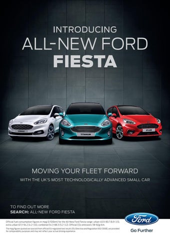 TO FIND OUT MORE SEARCH: ALL-NEW FORD FIESTA Official fuel consumption figures in mpg (l/100km) for the All-New Ford Fiesta range: urban 40.9 - 80.7 (6.9 - 3.5), extra urban 67.3 - 94.2 (4.2- 3.0), combined 54.3 - 88.3 (5.2 - 3.2). Official CO 2 emissions 118 - 82g/km. The mpg figures quoted are sourced from official EU-regulated test results (EU Directive and Regulation 692/2008), are provided for comparability purposes and may not reflect your actual driving experience.