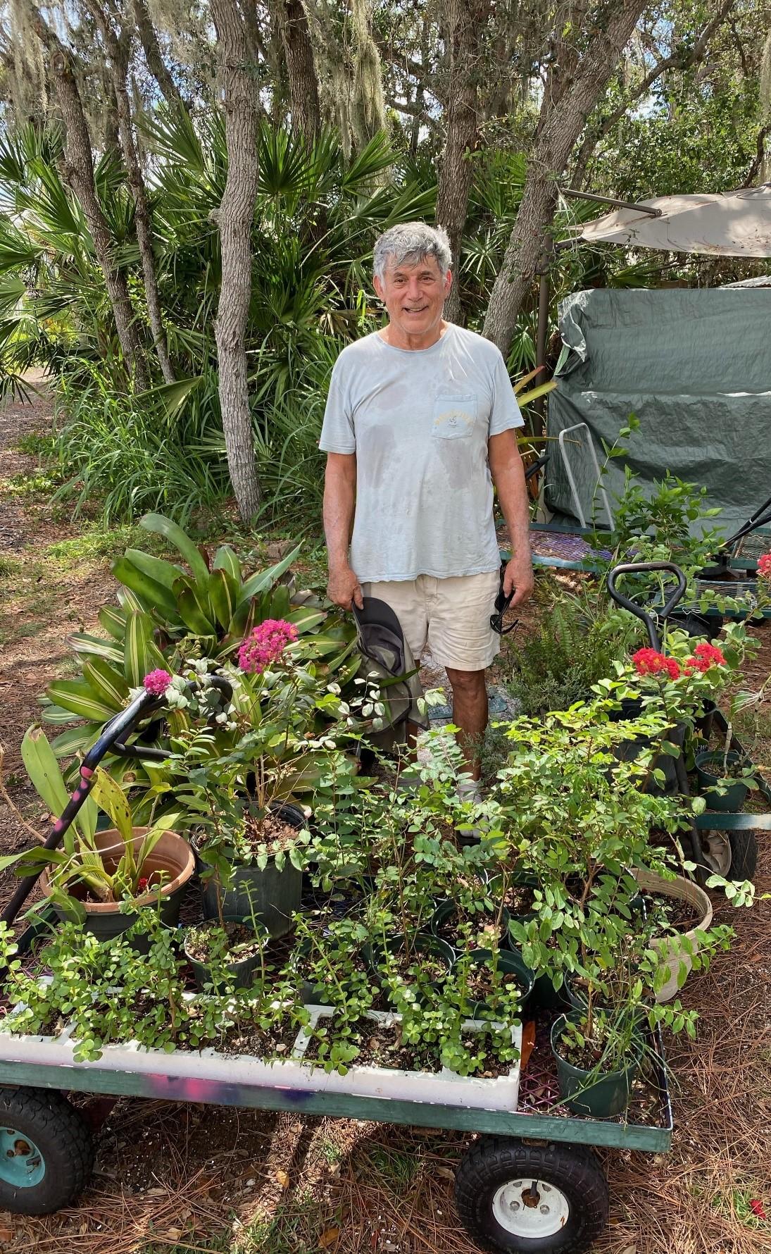 Sparky Dill donated 3 carts of plants to the Gardens including crepe myrtles, junipers, orchids, bromeliads, lantana, jade plants and tomato.