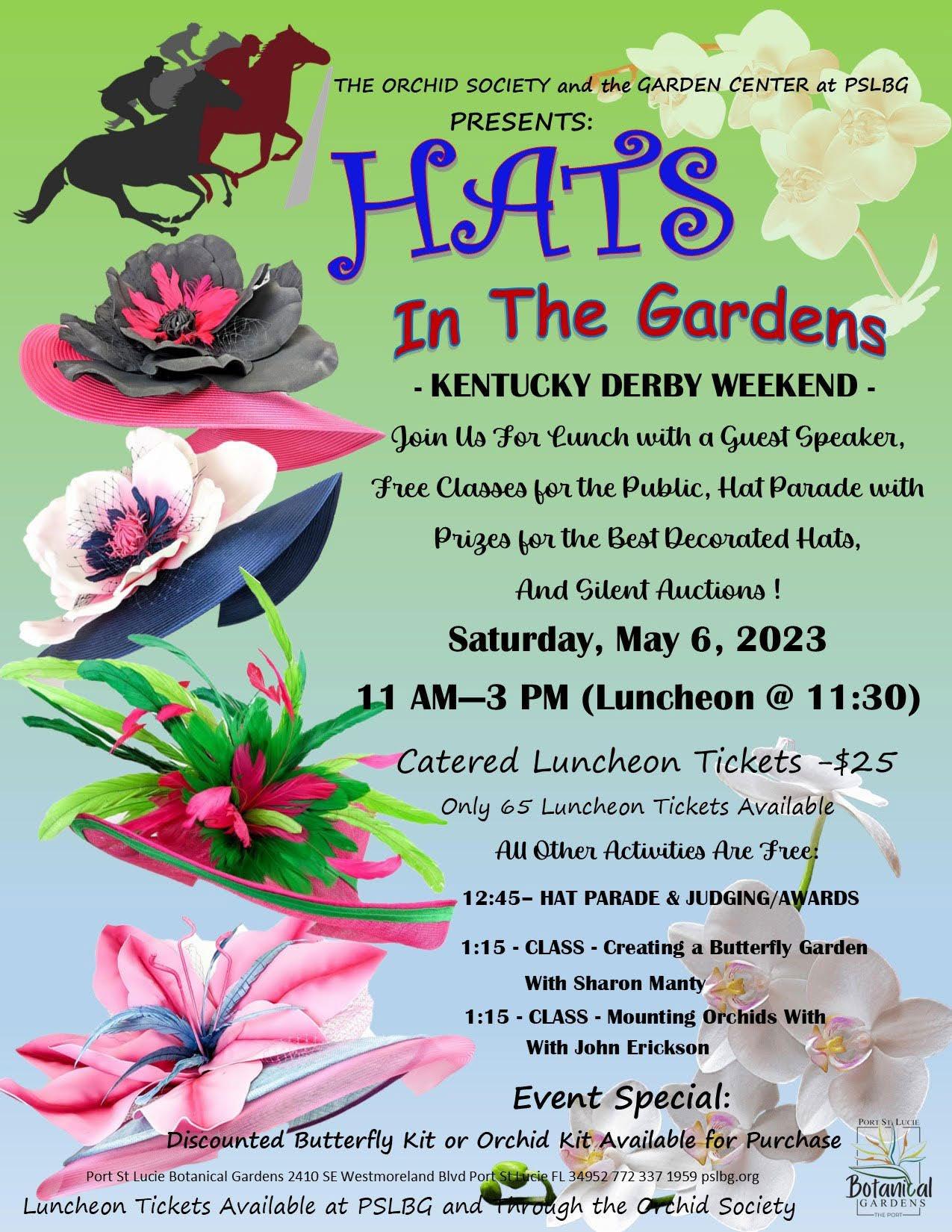 Grand Opening of Secret Garden & Serenity Garden Sunday, May 7 | 10:30 AM - 12 PM Hats in the Gardens Saturday, May 6 | 11 AM - 3 PM PSLBG Education Committee Meetings | Wednesdays 10 AM - 12 PM